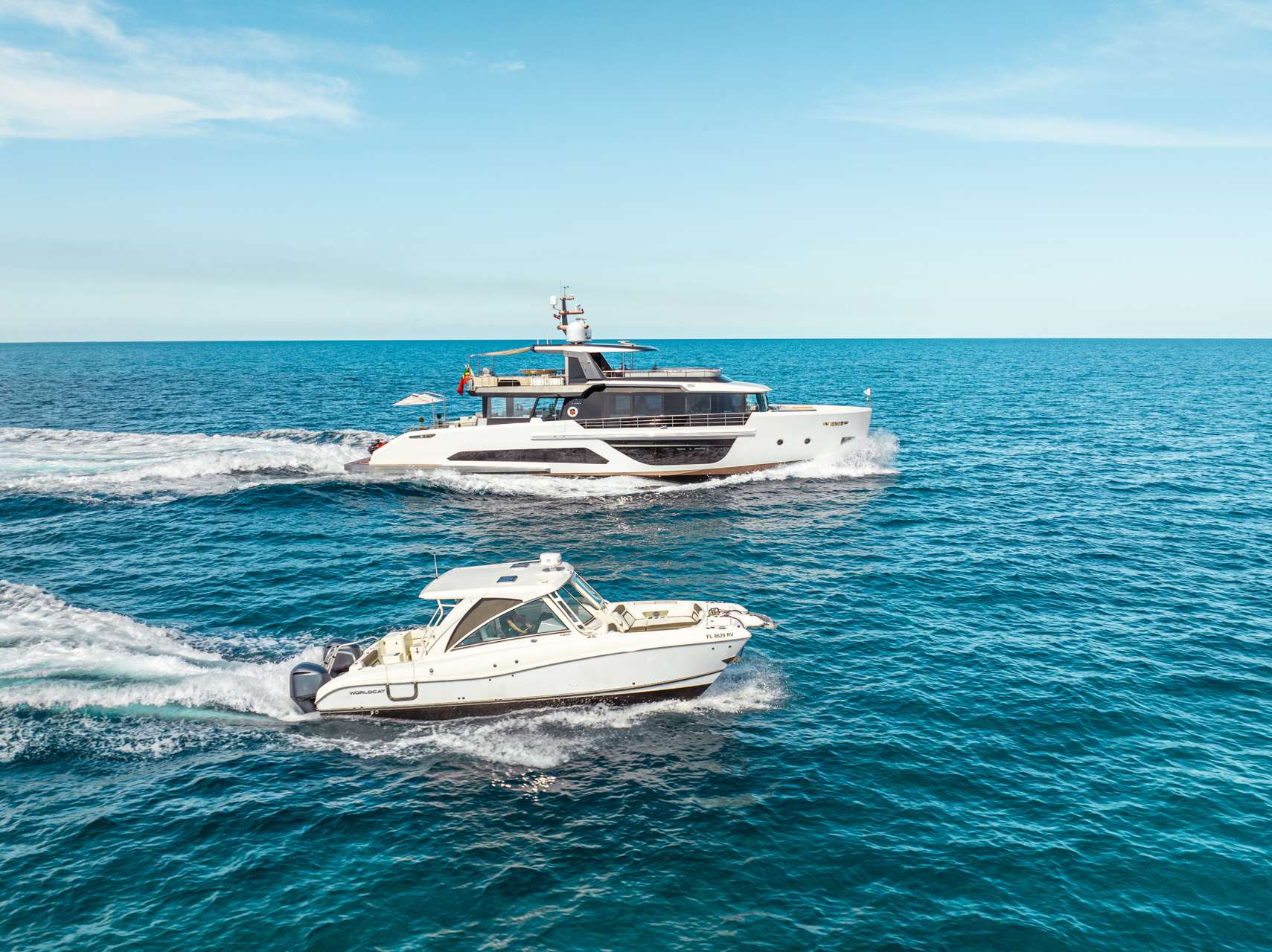 32ft Fully Enclosed Worldcat towed tender, fully rigged for fishing, 1x RXT-X 300 Waverunner-2 seater, Technogym Bench (multifunctional training kit)