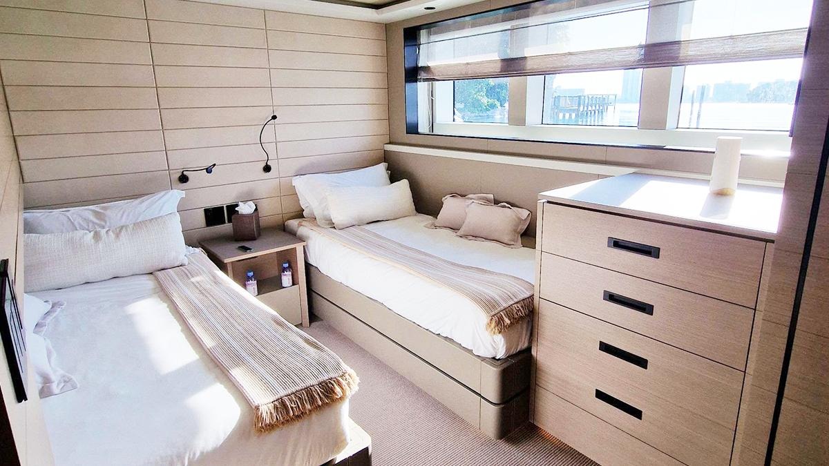 ![]() Indulge in ultimate luxury aboard this 106 ft semi-displacement masterpiece, perfect for 9 guests exploring the Bahamas and Caribbean. Sleek alfresco design, full AC, gourmet galley, and hot tub await. Thrill with jet skis, Seabobs, e-foils, and paddleboards. Effortless cruises, endless horizons. Your dream escape starts here. | 106' AlphaFlorida and The Keys Bahamas (Nassau) CaribbeanCapacity Cruising: 13 Sleeping: 9 Staterooms: 4, Suite Bathrooms: 4 Beds: 1 King Bed, 2 Queen Beds, Twin Side-By-Side, Pullman Day: Captain, 2 Stew, First Mate, 1 Chef Term: Captain, 2 Stew, First Mate, Chef Specifications Length: 106 Feet Beam: 26 Feet Draft: 6 Feet Year: 2019 Special Features Wifi Bluetooth Sound System Hot Tub Water Toys Jetski Underwater Scooter Tender: 38ft, 400hp Paddleboards: 1 Snorkel Gear for 6 Inflatable Floating Island Hydrofoil: 1 Pickup Address: Island Garden Miami |