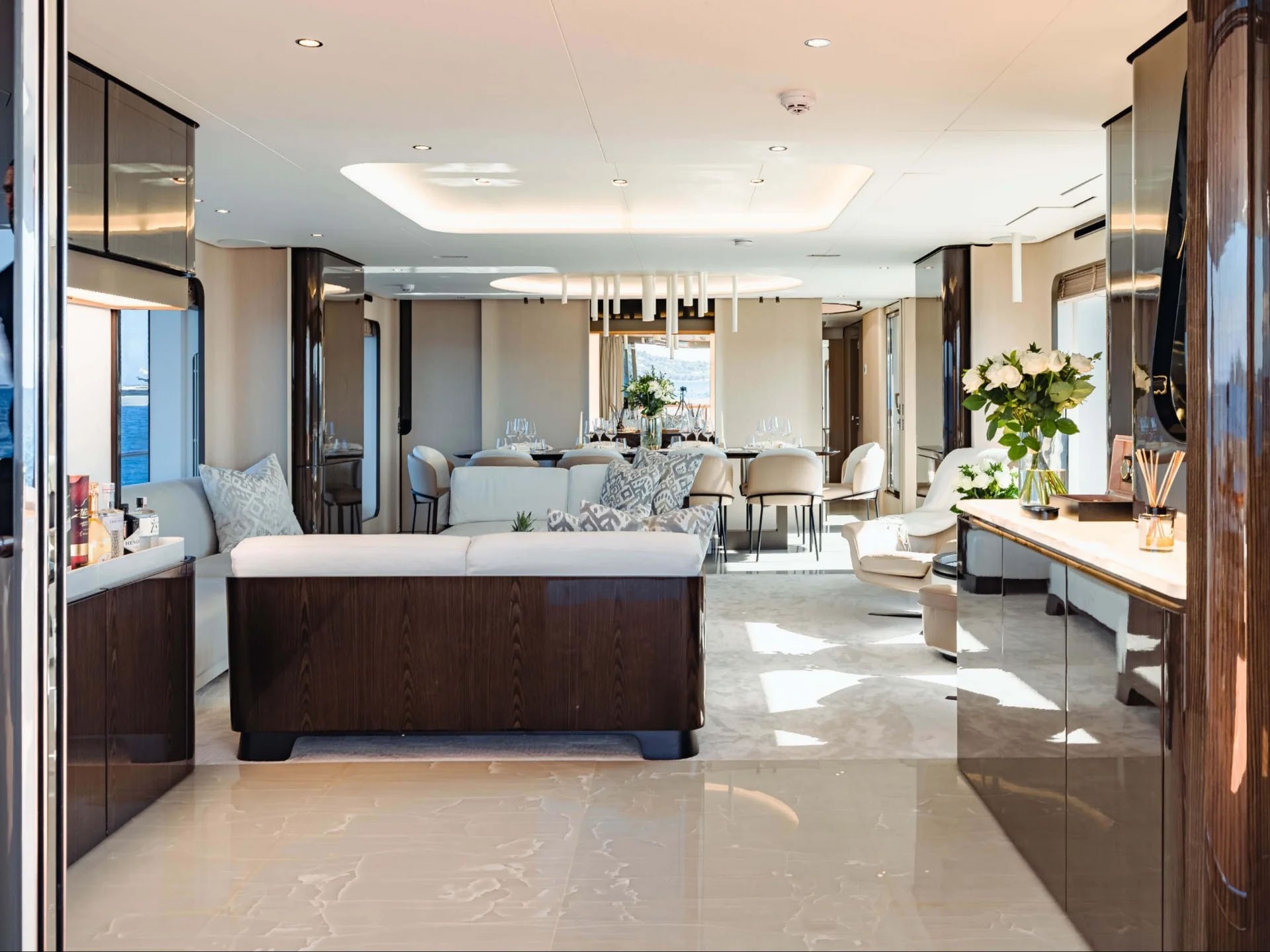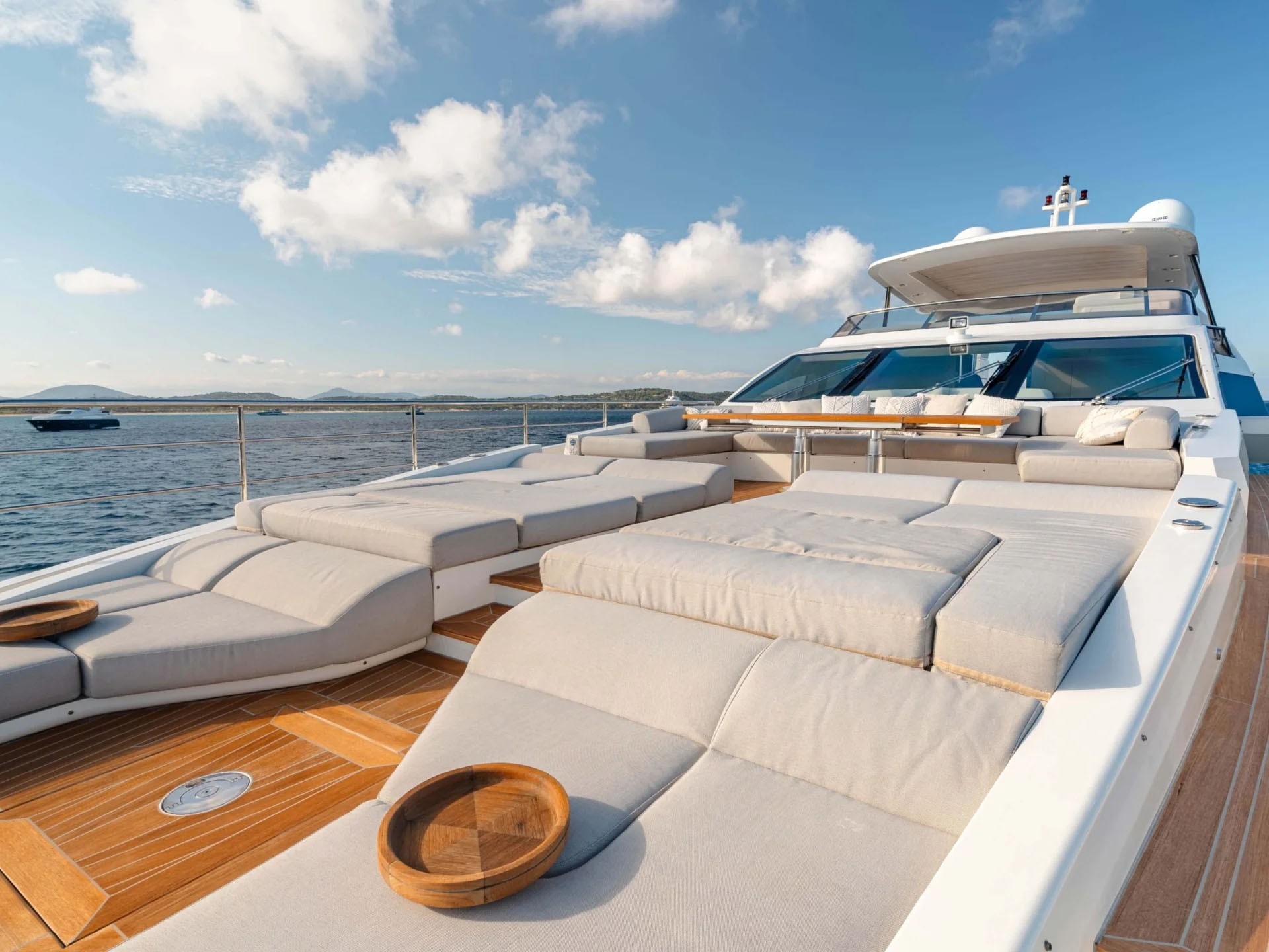 ![]() This 105-foot Azimut motor yacht delivers the perfect blend of Italian design, performance, and luxury for exploring the breathtaking coastline of Mallorca. Her sleek profile and expansive windows create a striking presence on the water while filling the interior with natural light. Generous outdoor spaces include large sunpads at the bow, a spacious flybridge ideal for entertaining, and shaded alfresco dining areas perfect for long Mediterranean lunches overlooking turquoise coves. Inside, the salon offers a contemporary and inviting atmosphere with refined finishes and comfortable seating for relaxing after a day at sea. Well-appointed guest cabins provide privacy and comfort for overnight stays. Whether cruising between Palma’s vibrant marina scene and secluded calas or anchoring for a swim in crystal-clear waters, this yacht offers an exceptional Mallorca charter experience. | 105' AzimutEurope and MediterraneanCapacity Staterooms: 5, Suite Bathrooms: 5 Beds: 1 King Bed, 3 Queen Beds, 1 Twin Side-By-Side Term: Captain, 4 Stew, 1 Chef Specifications Length: 105 Feet Year: 2021 Special Features Wifi Bluetooth Sound System Hot Tub Cinema Bar With Stools Satellite TV BBQ Grill Water Toys Blow Up Waterslide (8hr day charter/term) JetskiSeabobTender: ft, hp Water Skis Wakeboard Tubes + Towable Inflatables Paddleboards: Snorkel Gear for *E-Foil, *Chase Tender, * |