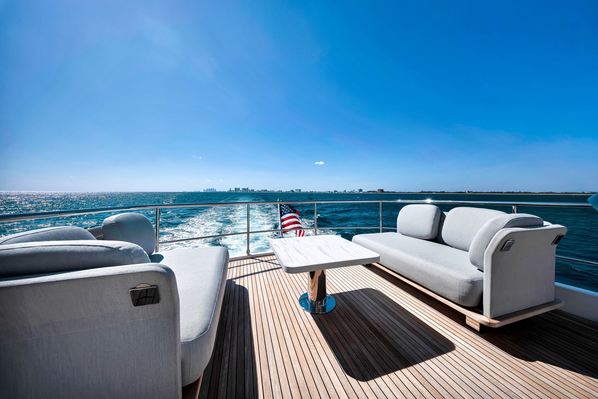 ![]() Step aboard this 66 foot Azimut, a modern cruising yacht designed for comfort, style, and effortless days on the water throughout South Florida and the Bahamas. Its sleek profile is matched by a spacious layout that blends indoor elegance with expansive outdoor living. The aft deck offers a perfect setting for dining and relaxing, while the flybridge provides additional seating, sunbathing space, and panoramic views. Inside, the bright salon features contemporary finishes and large windows that bring in natural light, creating an inviting atmosphere for guests. The well-appointed accommodations make it ideal for both day charters and extended trips. Whether cruising along the Miami coastline or island hopping in the Bahamas, this yacht delivers a smooth, refined, and enjoyable experience. | 68' AzimutFlorida and The Keys Bahamas (Nassau)Capacity Cruising: 12 Beds: 1 King Bed, 1 Queen Bed, 1 Twin Side-By-Side, 1 Twin Over-Under Day: Captain, Stew Specifications Length: 68 Feet Beam: 19 Feet Draft: 6 Feet Year: 2025 Special Features Wifi Bluetooth Sound System Streaming TV Water Toys Floating Water Mat Summer Location: Fort Lauderdale, Miami, South Florida, Nassau, Bahamas Winter Location: Fort Lauderdale, Miami, South Florida, Nassau, Bahamas |