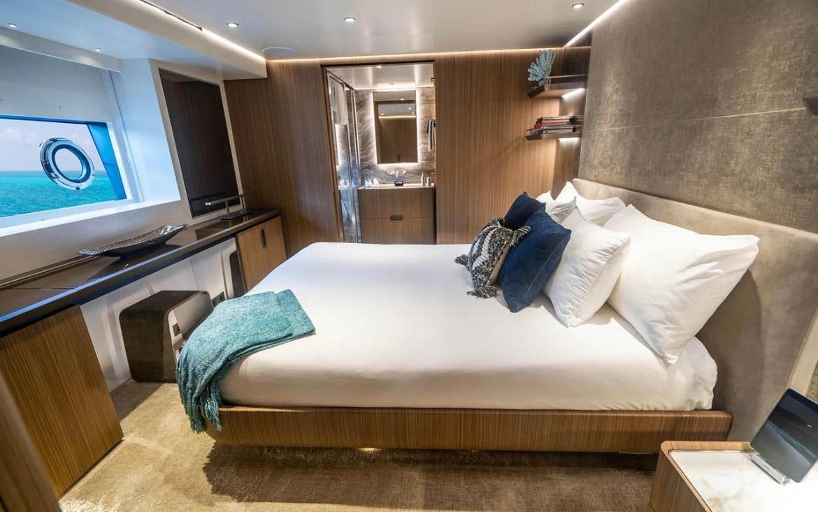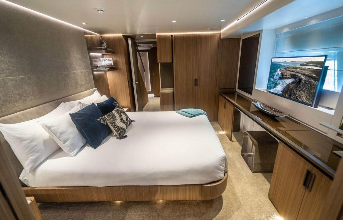 For overnight or term charters, the yacht will accommodate up to 10 guests in five ensuite cabins, including a King size bed in the master cabin, two VIP queen cabins, and two twin side by side cabins.