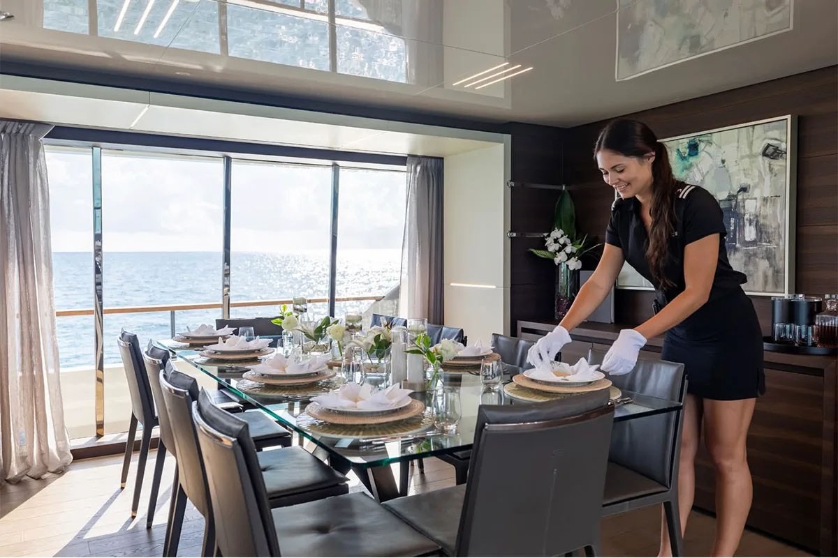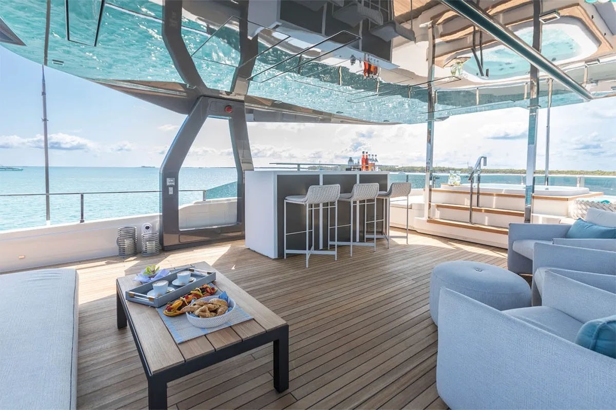 ![]() Step aboard this stunning 121 foot Ferretti, a modern luxury yacht designed for both relaxation and adventure. Cruising the crystal clear waters of the Bahamas, Florida, and Turks and Caicos, this yacht offers expansive indoor and outdoor living spaces perfect for entertaining, dining, and enjoying panoramic ocean views. The spacious flybridge features a bar, lounge seating, and sunbathing areas, while the aft deck and foredeck provide additional space to unwind in total comfort. Inside, the contemporary salon is filled with natural light and elegant finishes, creating a refined yet welcoming atmosphere. Accommodating up to ten guests in five beautifully appointed staterooms, including a main deck master suite, this yacht is ideal for both day charters and extended escapes. Guests can enjoy a full selection of water toys including jet skis, Seabobs, paddleboards, snorkeling gear, a floating island, and a tender, making every moment on the water unforgettable. | 121' Ferretti Custom LineBahamas (Nassau) CaribbeanCapacity Staterooms: 5, Suite Bathrooms: 5 Beds: Main Deck Master, 1 King Bed, 3 Queen Beds, 1 Twin Side-By-Side Term: Captain, 3 Stew, First Mate, 1 Chef Specifications Length: 121 Feet Beam: 27 Feet Draft: 8 Feet Year: 2019 Refit: 2023 Special Features Wifi Bluetooth Sound System Hot Tub Bar With Stools Satellite TV Streaming TV BBQ Grill Water Toys Seabob Water Skis Wakeboard Tubes + Towable Inflatables Paddleboards: 2 Fishing Poles Light fishing tackle (spinning reels) Snorkel Gear for 10 Flight Boards: 1 *33' Boston Whaler 2022, *Williams 565 Rib, *2 x Seadoo Sparks Waverunners, *Yoga Mats & Planks, *Lightweight weights, *Resistance bands *Beach setup, 10 x Teak chairs, 2 x umbrellas, 3 x plastic table and 1 x Gazebo, *Outside Projector for movie nights, Summer Location: Bahamas Winter Location: Nassau Bahamas Turks and Caicos |