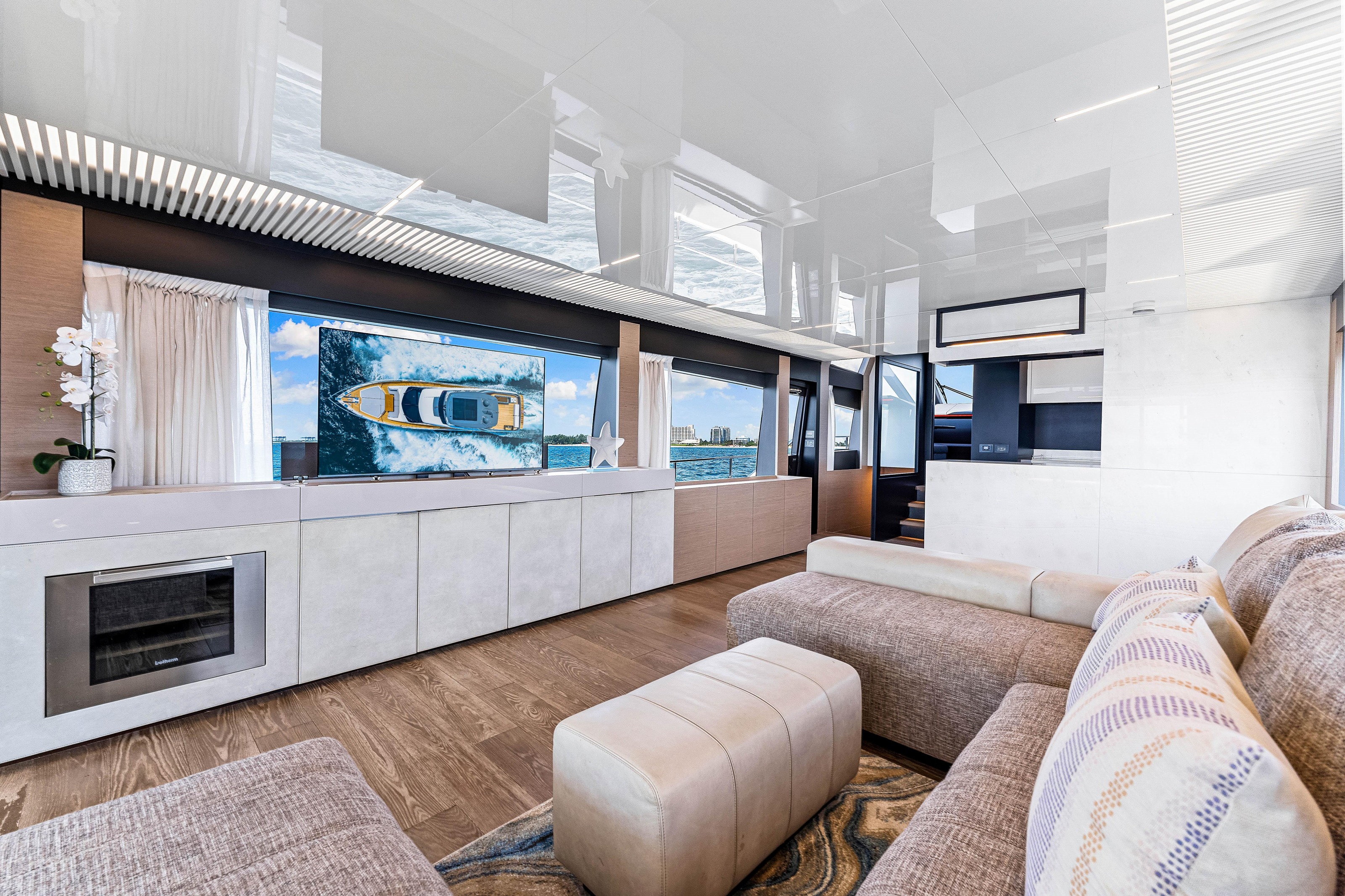 ![]() | 78' FerrettiFlorida and The Keys Bahamas (Nassau)Capacity Cruising: 12 Sleeping: 8 Staterooms: 4, Suite Bathrooms: 4 Beds: 2 Queen Beds, 2 Twin Side-By-Sides Day: Captain, Stew Specifications Length: 78 Feet Year: 2019 Special Features Wifi Bluetooth Sound System Streaming TV BBQ Grill Water Toys Underwater Scooter Tender: ft, hp Water Skis Floating Toys |