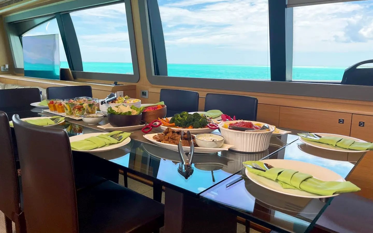 ![]() This 83’ Ferretti luxury yacht offers the ultimate private charter experience in Turks & Caicos. Designed for comfort, performance, and style, she features spacious indoor and outdoor lounging, a flybridge, and a hydraulic swim platform. Your fully crewed charter includes gourmet cuisine prepared by an executive chef, an open bar with premium spirits, champagne welcome drinks, and personalized service throughout the day. Enjoy cruising turquoise waters, snorkeling vibrant reefs, jet skiing, paddleboarding, tubing, and relaxing on a floating fiesta island. Perfect for celebrations, sightseeing, and unforgettable days on the water. | 83' FerrettiCaribbeanCapacity Cruising: 13 Sleeping: 8 Staterooms: 4, Suite Bathrooms: 4 Beds: 1 King Bed, 1 Queen Bed, 2 Twin Side-By-Sides Day: Captain, Stew, 1 Chef Specifications Length: 83 Feet Beam: 20 Feet Draft: 6 Feet Special Features Wifi Bluetooth Sound System Watermaker Direct TV BBQ Grill Download Menu Water Toys 2 Jetskis Tender: ft, hp Tubes + Towable Inflatables Paddleboards: 2 Snorkel Gear for 10 Inflatable Floating Island ***2 jet skis for 60 mins, offered with 2 of our professional jet ski crew who will bring the jet skis to where the yacht is anchored. ***Snorkeling gear for everyone to enjoy snorkeling. (We may request for groups of 5-10 guests to be snorkeling at a time for best safety precautions) ***An inflatable fiesta island (seats 8 adults) - 8 guests can relax and sip on a cocktail enjoying the beautiful turquoise TCI waters Pickup Address: Blue Haven Marina in Providenciales Secondary Pickup Address: A convenient pickup from Amanyara Beach or Parrot Cay South Dock is also possible at an additional cost. |