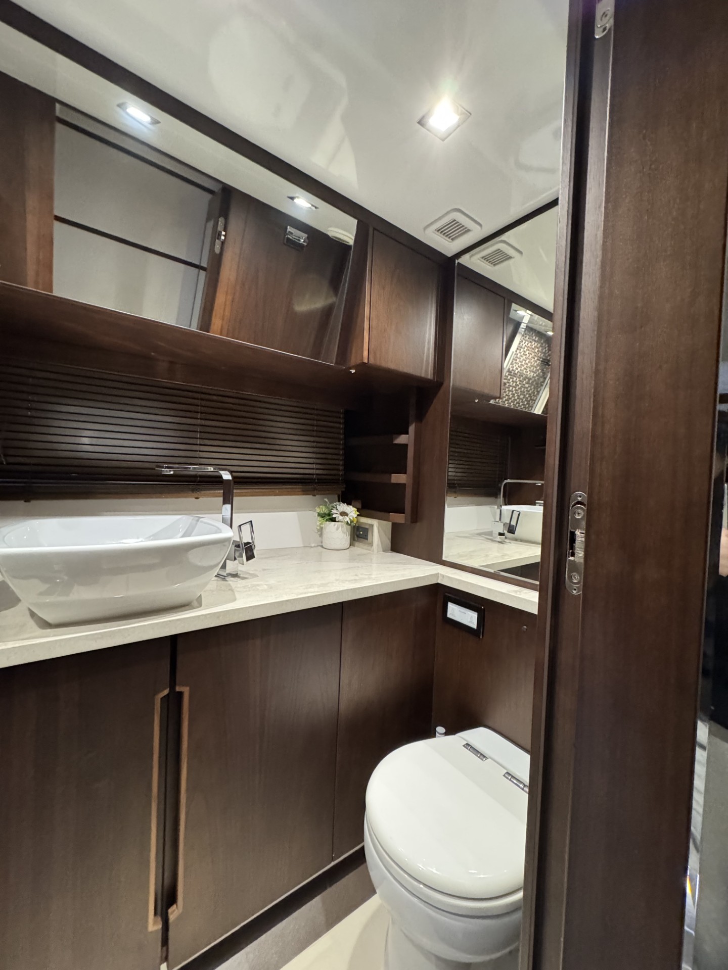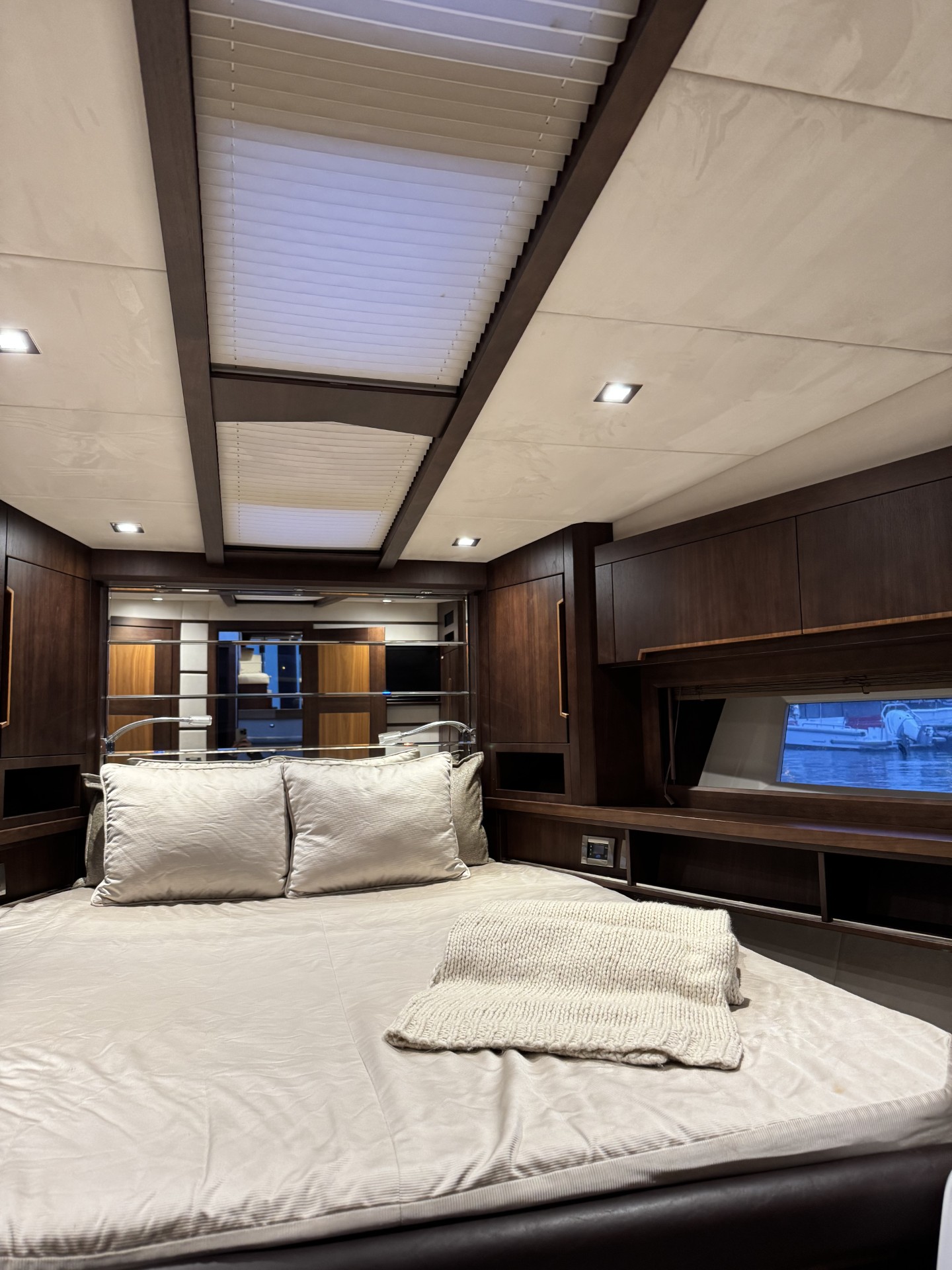 The master stateroom features ample storage, and a private head with a large shower.
