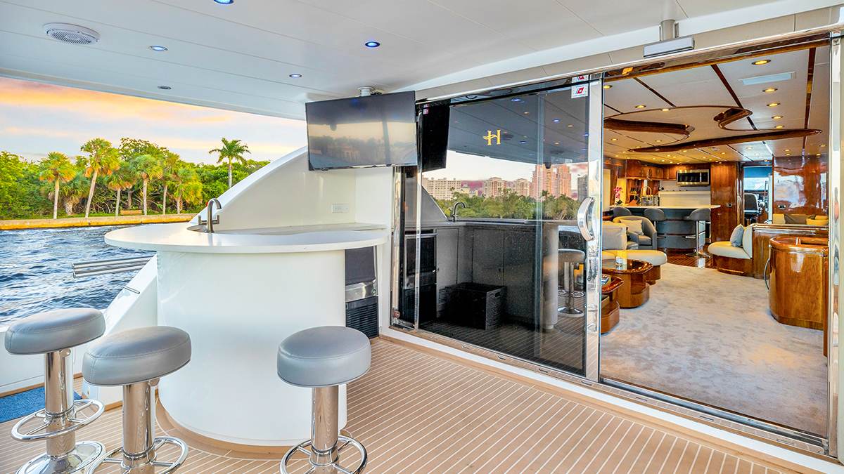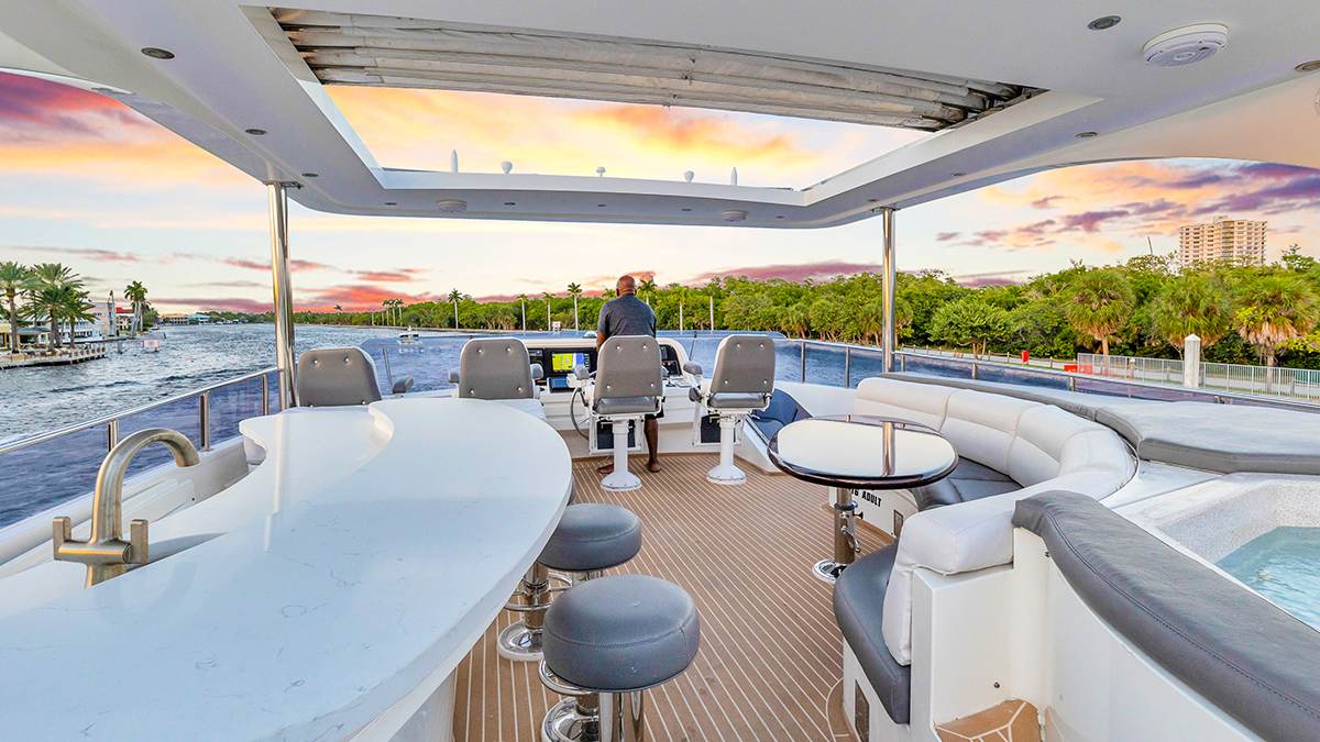 The 100ft Hargrave motor yacht is known for its spacious, luxurious design and focus on maximizing guest experience, both indoors and outdoors. It features a wide beam, high headroom, and flowing deck layouts, along with rich woods and large windows, creating a comfortable and elegant environment. The yacht is also designed for easy cruising, particularly in shallow waters like the Bahamas, and includes well-planned crew quarters for seamless service. This boat is loaded with water toys(listed on PDF) that will keep all the water enthusiasts busy most of the day. After a full day of playing with the water toys, you can soak your soar muscles in the hot tub on the flybridge.