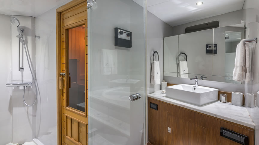 Spacious and Luxurious Accommodations: boasts expansive living spaces, including elegantly appointed cabins with en-suite bathrooms, plush lounges, and sophisticated dining areas. The yacht's design emphasizes comfort and luxury, providing guests with a home-away-from-home experience on the sea.
