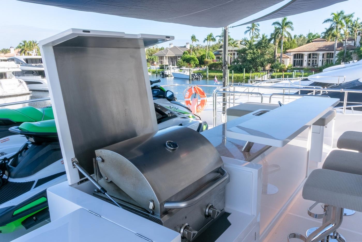 ![]() The first tri-deck design of the FD Series, the FD92, which is 100 LOA, satisfies the charterer who desires both an enclosed skylounge and an open flybridge. This boat enjoyed a $700,000 refit in 2025, making her like new. This five-stateroom yacht offers a full-beam, on-deck master and four additional staterooms on the lower deck along with crew quarters for four. The uppermost deck comes equipped with a helm, seating, and a small bar, while a six-person Jacuzzi, seating, sun pads, and fridge/icemaker comprise the lounging area on the foredeck. The FD92 features a fully equipped beach club and a Hi/Lo swim platform with a “transformer” stair section to facilitate easy water access. If you want to charter a newer yacht that has it all, this could be the yacht for your next day charter or multiple day vacation. | 100' Horizon Tri-deckFlorida and The Keys Bahamas (Nassau)Capacity Cruising: 13 Sleeping: 10 Staterooms: 5, Suite Bathrooms: 5 Beds: 1 King Bed, 3 Queen Beds, 1 Twin Side-By-Side Day: Captain, Stew, First Mate Term: Captain, Stew, First Mate Specifications Length: 100 Feet Beam: 25 Feet Draft: 7 Feet Year: 2021 Refit: 2024 Special Features Wifi Starlink Bluetooth Sound System Hot Tub Bar With Stools BBQ Grill Water Toys 2 Jetskis Tender: 17ft, hp Pickup Address: palm beach, 2288 Edward Rd, Fl 33410 Secondary Pickup Address: Palm beach, 2288 Edward Rd, Fl 33410 |
