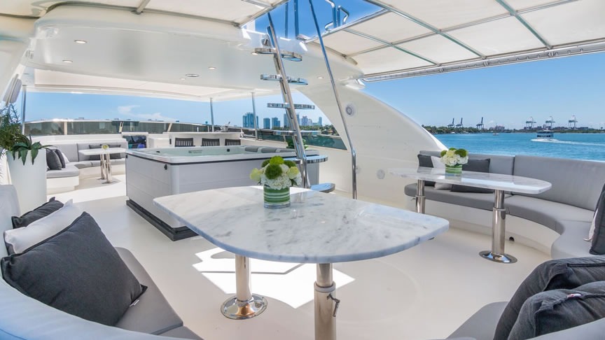 ![]() After a full interior and exterior refit in 2017, chartering our 115ft Horizon yacht offers a luxurious and unforgettable maritime experience, appealing to individuals seeking the pinnacle of comfort, style, and adventure on the water. Here are compelling reasons why someone should choose to charter our Yacht: Spacious and Luxurious Accommodations: boasts expansive living spaces, including elegantly appointed cabins with en-suite bathrooms, plush lounges, and sophisticated dining areas. The yacht's design emphasizes comfort and luxury, providing guests with a home-away-from-home experience on the sea. State-of-the-Art Amenities: Equipped with top-tier amenities, ensures a seamless blend of entertainment, relaxation, and functionality. Guests can enjoy high-speed internet, premium audiovisual systems, a fully stocked bar, and gourmet kitchens managed by professional chefs, catering to diverse culinary preferences. Professional Crew and Personalized Service: The crew are dedicated to providing exceptional service, ensuring every aspect of the charter is meticulously managed. From skilled chefs crafting gourmet meals to attentive stewards catering to guests' needs, the crew enhances the overall experience with warmth, professionalism, and attention to detail. Customizable Itineraries: Chartering this yacht offers the flexibility to tailor the journey according to guests' desires. Whether exploring secluded bays, vibrant coastal cities, or engaging in water sports and leisure activities, the yacht accommodates varied interests and ensures each day is filled with memorable experiences. Exclusive Privacy and Freedom: Guests enjoy the ultimate privacy and freedom of a private yacht charter. Away from crowded tourist destinations, the yacht provides access to pristine anchorages and serene waters, creating an intimate environment for relaxation and exploration. Ideal for Special Occasions: This yacht is perfect for celebrating special occasions such as birthdays, anniversaries, or corporate retreats. Its luxurious ambiance and versatile amenities create a memorable backdrop for gatherings and events, ensuring each moment is marked with sophistication and style. Effortless Luxury Travel: Designed for comfort and performance, this yacht offers smooth cruising and stability at sea. The yacht's advanced engineering and spacious deck areas provide guests with a comfortable and enjoyable journey, whether embarking on a short getaway or an extended voyage. Prestige and Exclusivity: Chartering this yacht signifies a commitment to luxury and exclusivity. It appeals to individuals who appreciate fine craftsmanship, elegant design, and the prestige associated with renting a prestigious yacht like the Horizon 115ft. Unforgettable Memories: Above all, chartering this yacht promises to create lasting memories. Whether relaxing on deck, enjoying gourmet cuisine, or exploring breathtaking landscapes, every moment aboard is crafted to exceed expectations and leave guests with cherished experiences of luxury and adventure. In summary, chartering our 115ft Horizon yacht offers an unparalleled blend of luxury, comfort, and adventure on the open seas. It's an opportunity to indulge in a premium maritime experience where every detail is curated to ensure a journey that is both luxurious and unforgettable. | 115' HorizonFlorida and The Keys Bahamas (Nassau)Capacity Cruising: 13 Sleeping: 8 Staterooms: 4, Suite Bathrooms: 4 Beds: King Bed, 2 Queen Beds, Twin Side-By-Side Day: Captain, Stew, First Mate Term: Captain, Stew, First Mate Specifications Length: 115 Feet Year: 2000 Refit: 2020 Special Features Wifi Hot Tub Water Toys 2 Jetskis Tender: 16ft, 75hp Water Skis Wakeboard Tubes + Towable Inflatables Paddleboards: 1 Snorkel Gear for 5 Floating Water Mat Pickup Address: miami beach marina |