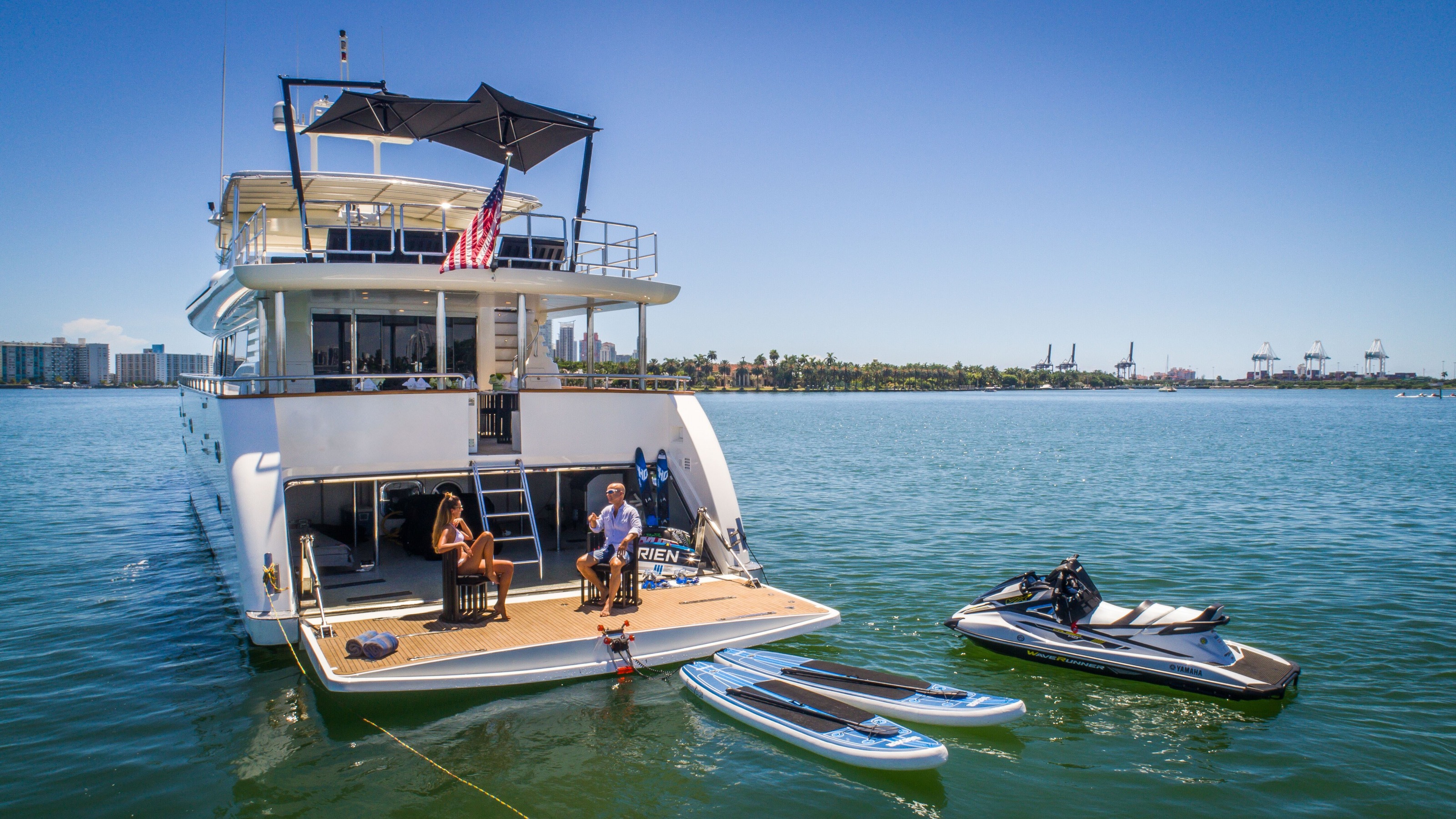 ![]() After a full interior and exterior refit in 2017, chartering our 115ft Horizon yacht offers a luxurious and unforgettable maritime experience, appealing to individuals seeking the pinnacle of comfort, style, and adventure on the water. Here are compelling reasons why someone should choose to charter our Yacht: Spacious and Luxurious Accommodations: boasts expansive living spaces, including elegantly appointed cabins with en-suite bathrooms, plush lounges, and sophisticated dining areas. The yacht's design emphasizes comfort and luxury, providing guests with a home-away-from-home experience on the sea. State-of-the-Art Amenities: Equipped with top-tier amenities, ensures a seamless blend of entertainment, relaxation, and functionality. Guests can enjoy high-speed internet, premium audiovisual systems, a fully stocked bar, and gourmet kitchens managed by professional chefs, catering to diverse culinary preferences. Professional Crew and Personalized Service: The crew are dedicated to providing exceptional service, ensuring every aspect of the charter is meticulously managed. From skilled chefs crafting gourmet meals to attentive stewards catering to guests' needs, the crew enhances the overall experience with warmth, professionalism, and attention to detail. Customizable Itineraries: Chartering this yacht offers the flexibility to tailor the journey according to guests' desires. Whether exploring secluded bays, vibrant coastal cities, or engaging in water sports and leisure activities, the yacht accommodates varied interests and ensures each day is filled with memorable experiences. Exclusive Privacy and Freedom: Guests enjoy the ultimate privacy and freedom of a private yacht charter. Away from crowded tourist destinations, the yacht provides access to pristine anchorages and serene waters, creating an intimate environment for relaxation and exploration. Ideal for Special Occasions: This yacht is perfect for celebrating special occasions such as birthdays, anniversaries, or corporate retreats. Its luxurious ambiance and versatile amenities create a memorable backdrop for gatherings and events, ensuring each moment is marked with sophistication and style. Effortless Luxury Travel: Designed for comfort and performance, this yacht offers smooth cruising and stability at sea. The yacht's advanced engineering and spacious deck areas provide guests with a comfortable and enjoyable journey, whether embarking on a short getaway or an extended voyage. Prestige and Exclusivity: Chartering this yacht signifies a commitment to luxury and exclusivity. It appeals to individuals who appreciate fine craftsmanship, elegant design, and the prestige associated with renting a prestigious yacht like the Horizon 115ft. Unforgettable Memories: Above all, chartering this yacht promises to create lasting memories. Whether relaxing on deck, enjoying gourmet cuisine, or exploring breathtaking landscapes, every moment aboard is crafted to exceed expectations and leave guests with cherished experiences of luxury and adventure. In summary, chartering our 115ft Horizon yacht offers an unparalleled blend of luxury, comfort, and adventure on the open seas. It's an opportunity to indulge in a premium maritime experience where every detail is curated to ensure a journey that is both luxurious and unforgettable. | 115' HorizonFlorida and The Keys Bahamas (Nassau)Capacity Cruising: 13 Sleeping: 8 Staterooms: 4, Suite Bathrooms: 4 Beds: King Bed, 2 Queen Beds, Twin Side-By-Side Day: Captain, Stew, First Mate Term: Captain, Stew, First Mate Specifications Length: 115 Feet Year: 2000 Refit: 2020 Special Features Wifi Hot Tub Water Toys 2 Jetskis Tender: 16ft, 75hp Water Skis Wakeboard Tubes + Towable Inflatables Paddleboards: 1 Snorkel Gear for 5 Floating Water Mat Location: miami beach marina Pier L |