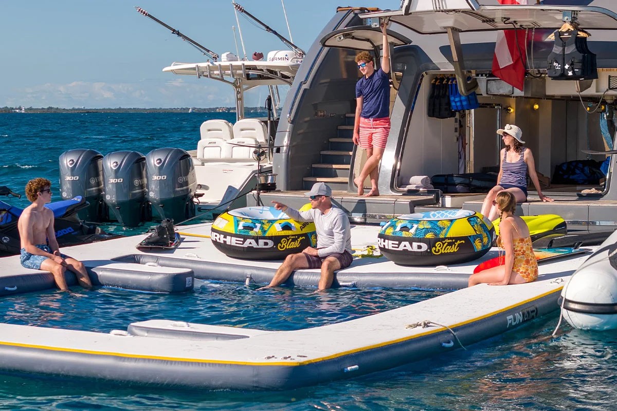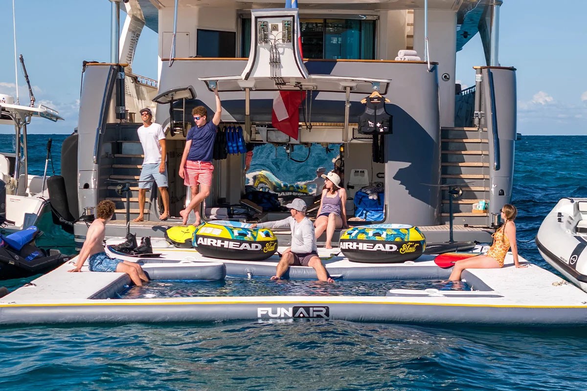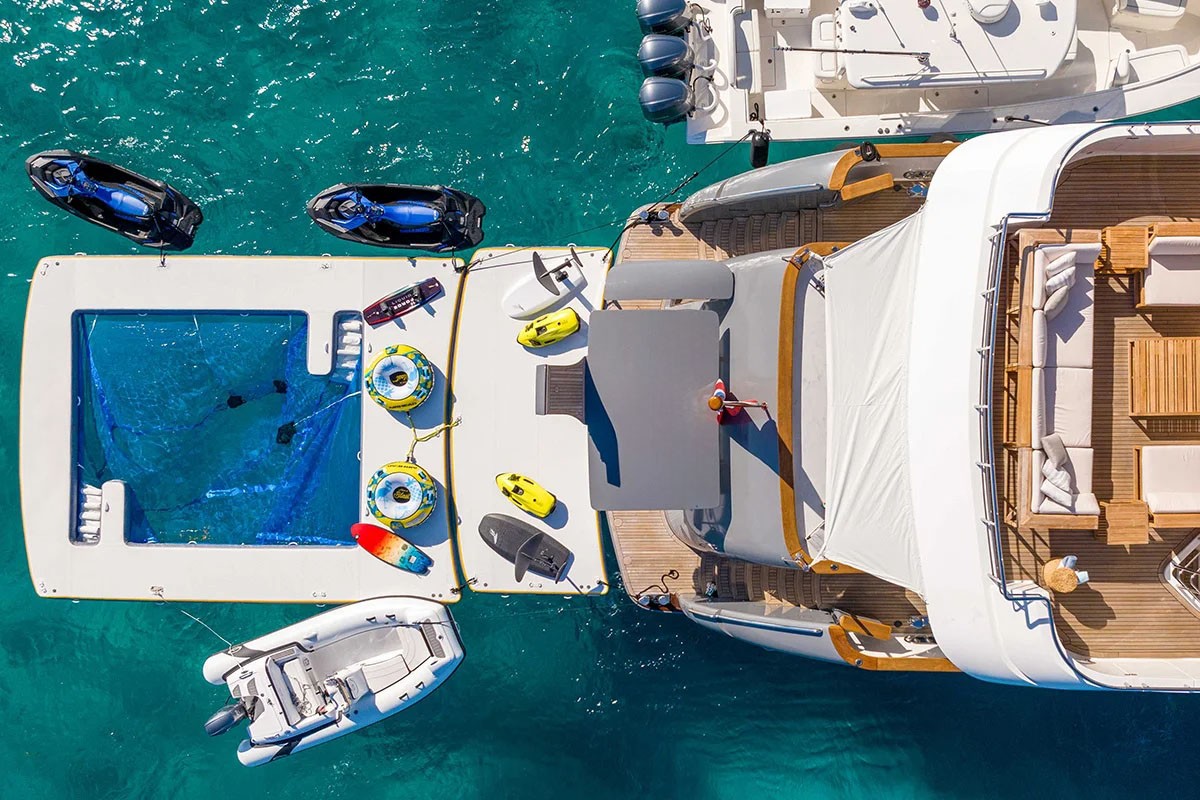 *1 x 17ft Walker bay RIB with a 70HP Yamaha outboard, *1 x FUNAIR inflatable swimming pool with net on the swim platform, *1 x wake surf board, *2 x E foils, *4 x scuba diving sets,