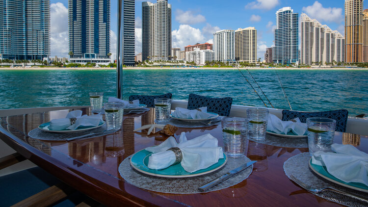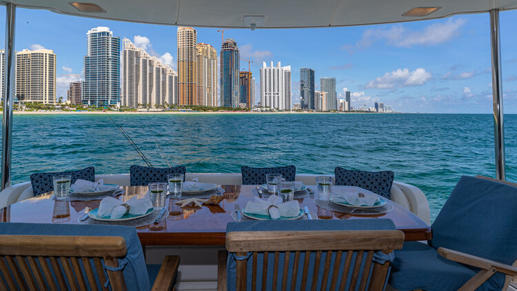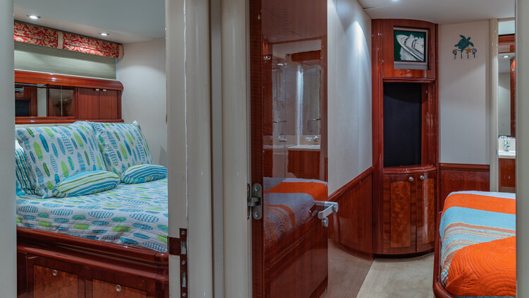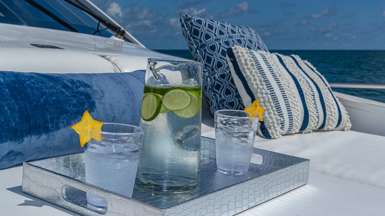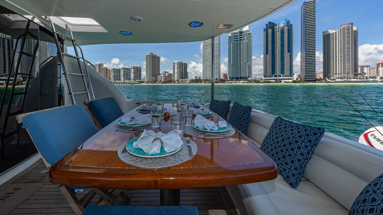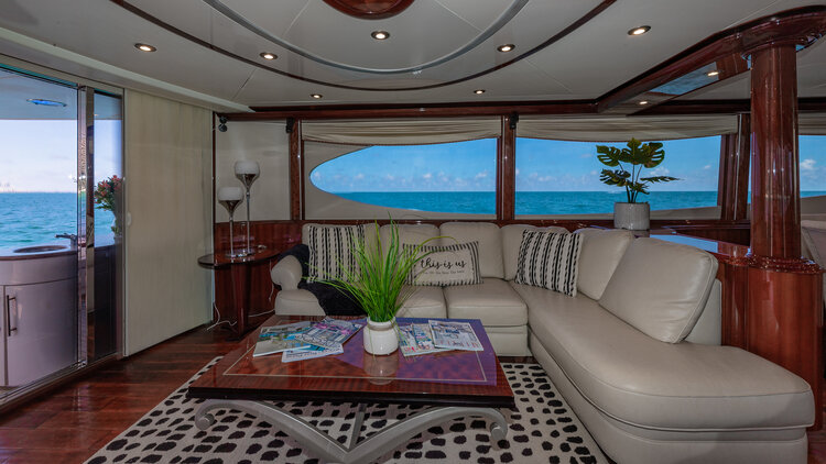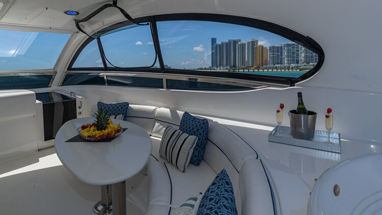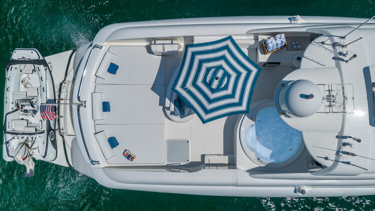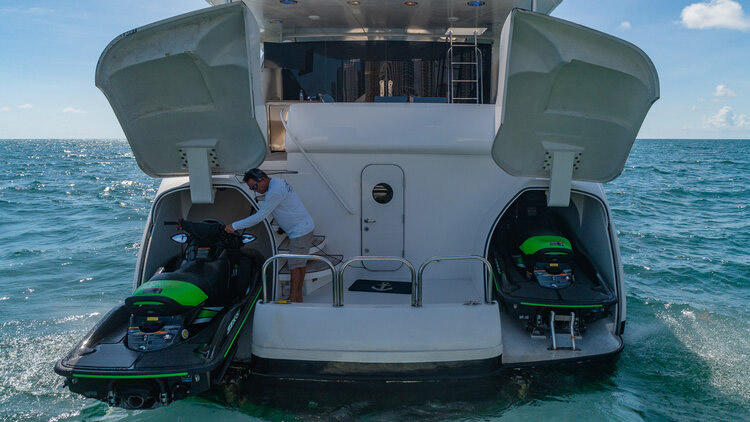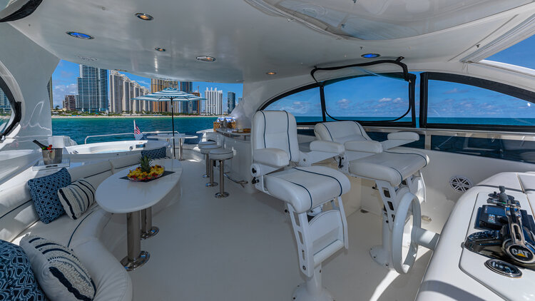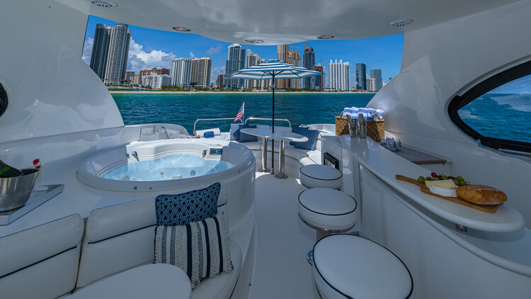 This 84 Lazzara has had a $400,000 refit in 2022-2023 , which is why this boat looks and runs so great. The wood work and amenities inside this 84 Lazzara are as beautiful as the huge country kitchen featuring a center island that is ready for all your dinning needs. The master bedroom is enormous, and is hotel like with a king size bed and walk in closet, and rivals boats that are 100 feet plus. You can relax in the master bath with its whirlpool tub and double shower and sinks. The additional 3 staterooms for your guests include two queen size bedrooms and one full size bedroom all with their own private bathrooms, giving them total privacy and luxury. The boat comes with a 16 ft walker bay tender designed for water skiing, knee boarding and pulling various water toys that are onboard.. Of course we have fishing poles that we can bring out on the tender or the swim platform of the big boat. If you take the Lazzara out on a multiple day charter, the boat even comes with its own 3 person jet ski. If you are renting the boat for 4-8hrs, then we can rent a jet ski for you at an additional $150/hour. With a hot tub, full wet bar, sunning cushions and plenty of seating on the flybridge, this boat is simply one of the best boats to keep everyone entertained.