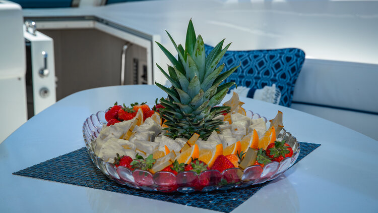 The yacht is equipped with advanced technology and amenities to enhance the onboard experience. This includes state-of-the-art navigation systems, entertainment systems, and a fully equipped galley where gourmet meals can be prepared by the onboard chef. The layout is designed to cater to both relaxation and entertainment, making it ideal for extended cruising or hosting intimate gatherings.