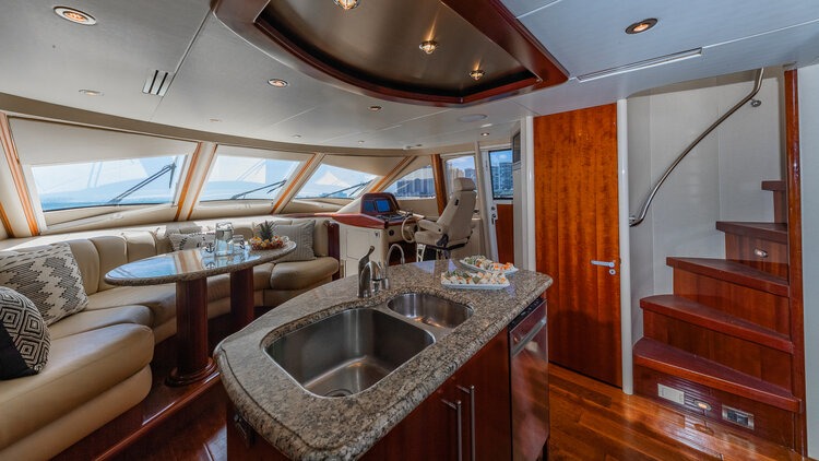 ![]() This 84 Lazzara has had a $400,000 refit in 2022-2023 , which is why this boat looks and runs so great. The wood work and amenities inside this 84 Lazzara are as beautiful as the huge country kitchen featuring a center island that is ready for all your dinning needs. The master bedroom is enormous, and is hotel like with a king size bed and walk in closet, and rivals boats that are 100 feet plus. You can relax in the master bath with its whirlpool tub and double shower and sinks. The additional 3 staterooms for your guests include two queen size bedrooms and one full size bedroom all with their own private bathrooms, giving them total privacy and luxury. The boat comes with a 16 ft walker bay tender designed for water skiing, knee boarding and pulling various water toys that are onboard.. Of course we have fishing poles that we can bring out on the tender or the swim platform of the big boat. If you take the Lazzara out on a multiple day charter, the boat even comes with its own 3 person jet ski. If you are renting the boat for 4-8hrs, then we can rent a jet ski for you at an additional $150/hour. With a hot tub, full wet bar, sunning cushions and plenty of seating on the flybridge, this boat is simply one of the best boats to keep everyone entertained. The 84 ft Lazzara motor yacht represents a pinnacle of luxury, comfort, and innovation in its class, designed to provide a sophisticated and memorable yachting experience. Externally, the 80ft Lazzara showcases a sleek and contemporary profile, characterized by clean lines and a distinctive hull design that emphasizes both style and performance. The yacht's exterior spaces are expansive and meticulously finished, featuring teak decking throughout, spacious decks for lounging and sunbathing, and a flybridge that offers panoramic views and additional entertainment areas. Inside, the 80ft Lazzara exudes elegance and sophistication with its modern interior design and luxurious finishes. The main salon is impressively spacious and beautifully appointed, featuring high-quality materials such as fine woods, marble countertops, and plush furnishings. Large windows and skylights flood the interior with natural light, creating an airy and inviting atmosphere. Accommodations aboard are designed to pamper guests with comfort and privacy. The yacht typically offers multiple staterooms, each equipped with en-suite bathrooms and luxurious amenities. The master suite is a highlight, providing a spacious retreat with a king-size bed, a private seating area, ample storage space, and sophisticated entertainment systems. The yacht is equipped with advanced technology and amenities to enhance the onboard experience. This includes state-of-the-art navigation systems, entertainment systems, and a fully equipped galley where gourmet meals can be prepared by the onboard chef. The layout is designed to cater to both relaxation and entertainment, making it ideal for extended cruising or hosting intimate gatherings. In terms of performance, the 84ft Lazzara is powered by powerful engines that deliver impressive speed and efficiency, ensuring a smooth and exhilarating ride on the open water. The yacht's design and engineering provide excellent handling and stability, allowing for comfortable cruising experiences even in varying sea conditions. Overall, the 84ft Lazzara motor yacht epitomizes luxury and sophistication, offering a blend of style, comfort, and performance that sets it apart in the world of yachting. It provides a luxurious and unforgettable yachting experience for those who seek the ultimate in maritime luxury and adventure | 84' LazzaraFlorida and The Keys Bahamas (Nassau)Capacity Cruising: 13 Sleeping: 8 Staterooms: 4, Suite Bathrooms: 4 Beds: 1 King Bed, 2 Queen Beds, 1 Full Bed Day: Captain, Stew, First Mate Term: Captain, Stew, 1 Stew/Chef Specifications Length: 84 Feet Beam: 20 Feet Draft: 6 Feet Year: 2004 Refit: 2022 Special Features Wifi Bluetooth Sound System Hot Tub Bar With Stools Watermaker Satellite TV BBQ Grill Water Toys Jetski 1 Underwater Scooters Tender: 16ft, 75hp Water Skis Paddleboards: 1 Canoes: 1 Fishing Poles Snorkel Gear for 6 Floating Water Mat Location: Spain, Mallorca Alcudiamar marina in Puerto d Alcudia |