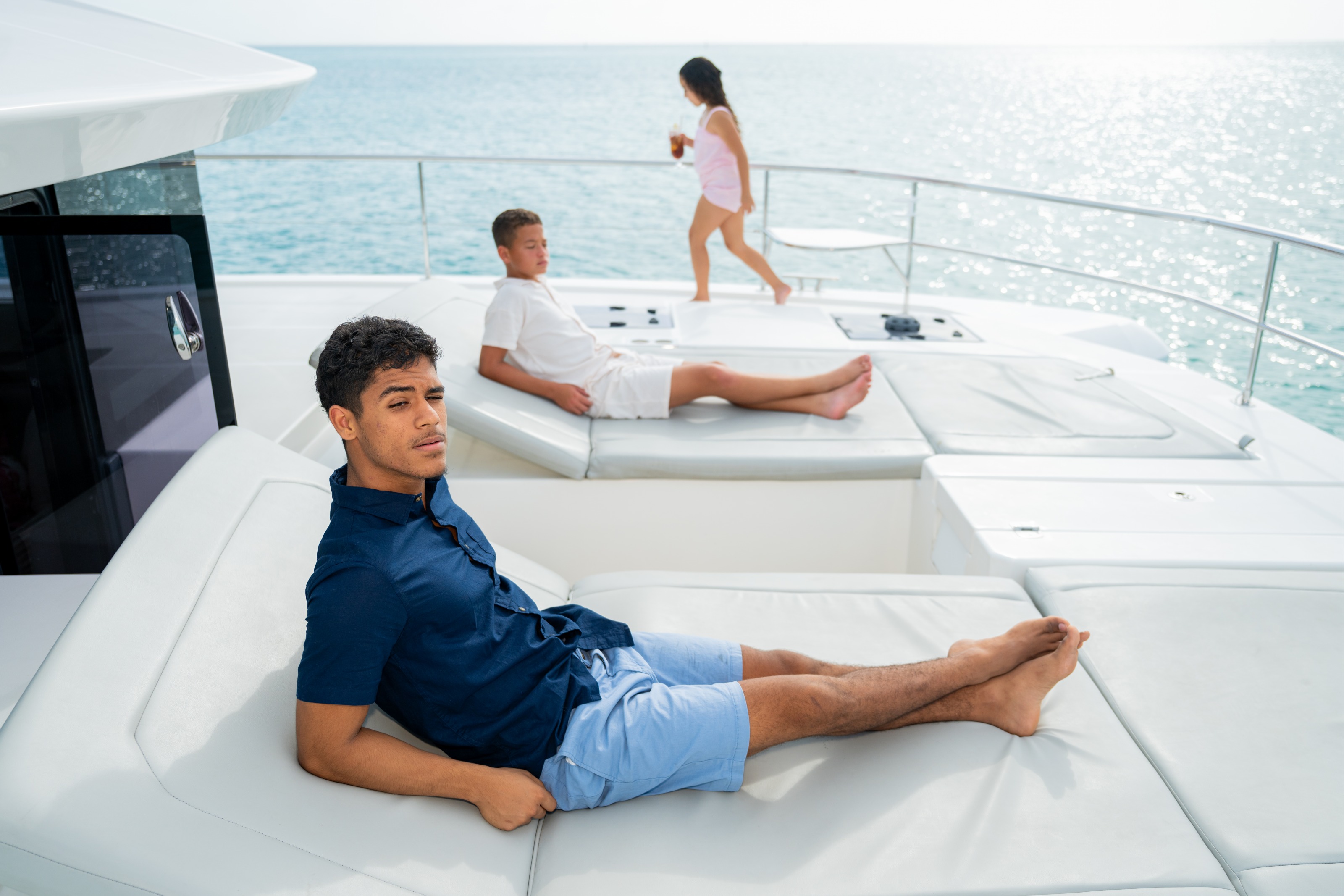 ![]() Step aboard this luxury Leopard 53 Power Catamaran and experience Turks & Caicos at its finest. Designed for comfort, stability, and style, this spacious yacht offers panoramic cruising, elegant indoor and outdoor lounging, and a professional crew dedicated entirely to your experience. Enjoy gourmet cuisine prepared by an onboard executive chef, an open bar with premium beverages, and nonstop fun with jet skis, paddle boards, snorkeling, tubing, and a floating fiesta island. Cruise to secluded cays, pristine sandbars, and crystal-clear reefs, then relax at anchor with music, cocktails, and unforgettable views. This is the ultimate all-inclusive luxury day charter. | 53' Leopard- Power CatamaranCaribbeanCapacity Cruising: 25 Sleeping: 8 Staterooms: 4, Suite Bathrooms: 4 Beds: 2 Queen Beds, 2 Twin Side-By-Sides Day: Captain, Stew, 1 Chef Specifications Length: 53 Feet Beam: 26 Feet Draft: 4 Feet Year: 2019 Special Features Wifi Bluetooth Sound System Watermaker Streaming TV BBQ Grill Download Menu Water Toys 2 Jetskis Tender: 12ft, 40hp Tubes + Towable Inflatables Paddleboards: 2 Snorkel Gear for Floating Toys ***2 jet skis for 60 mins, offered with 2 of our professional jet ski crew who will bring the jet skis to where the yacht is anchored. ***Snorkeling gear for everyone to enjoy snorkeling. (We may request for groups of 5-10 guests to be snorkeling at a time for best safety precautions) ***An inflatable fiesta island (seats 8 adults) - 8 guests can relax and sip on a cocktail enjoying the beautiful turquoise TCI waters Pickup Address: Blue Haven Marina in Providenciales Secondary Pickup Address: A convenient pickup from Amanyara Beach or Parrot Cay South Dock is also possible at an additional cost. |