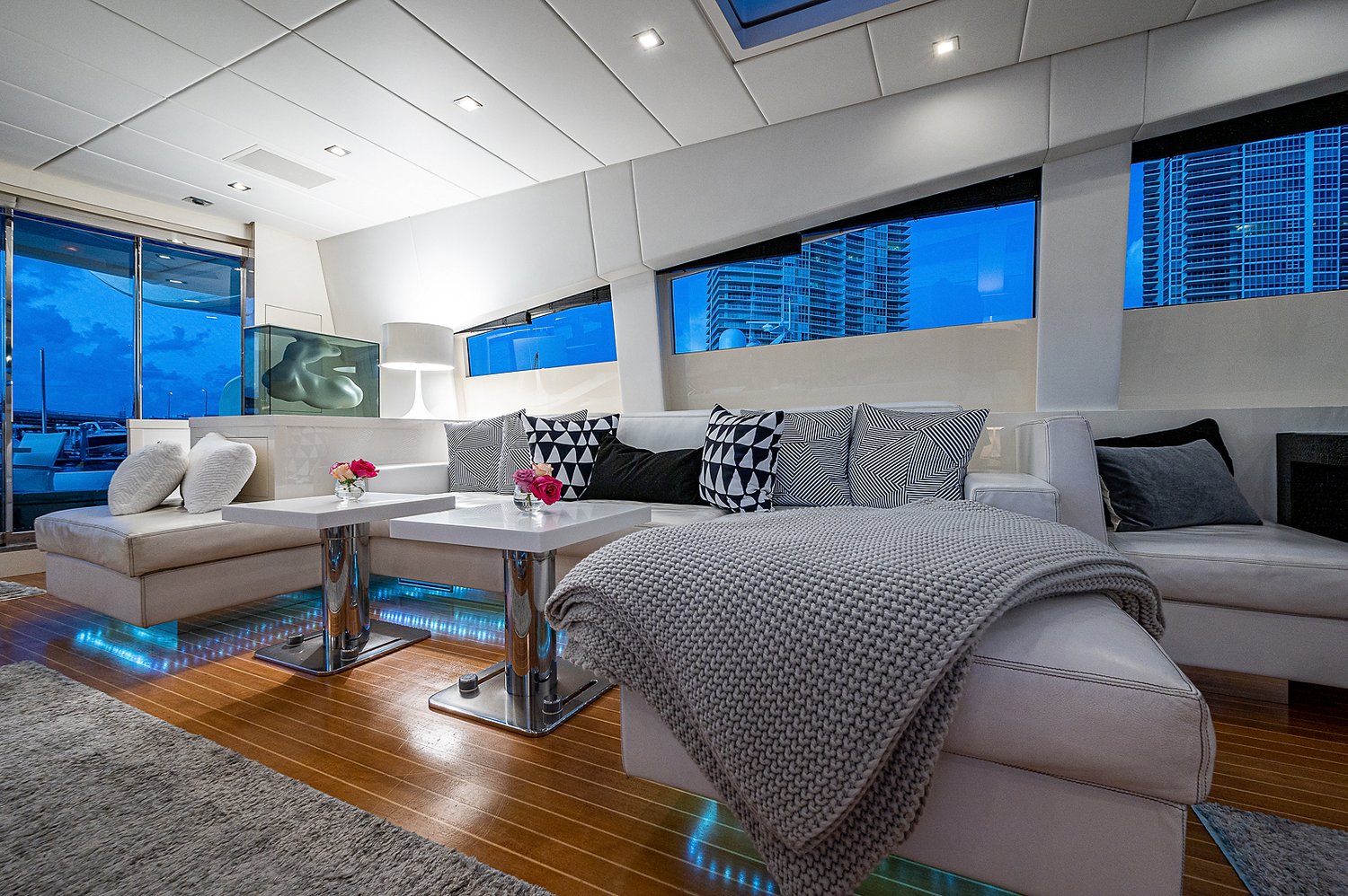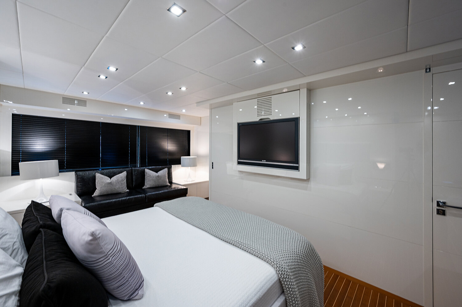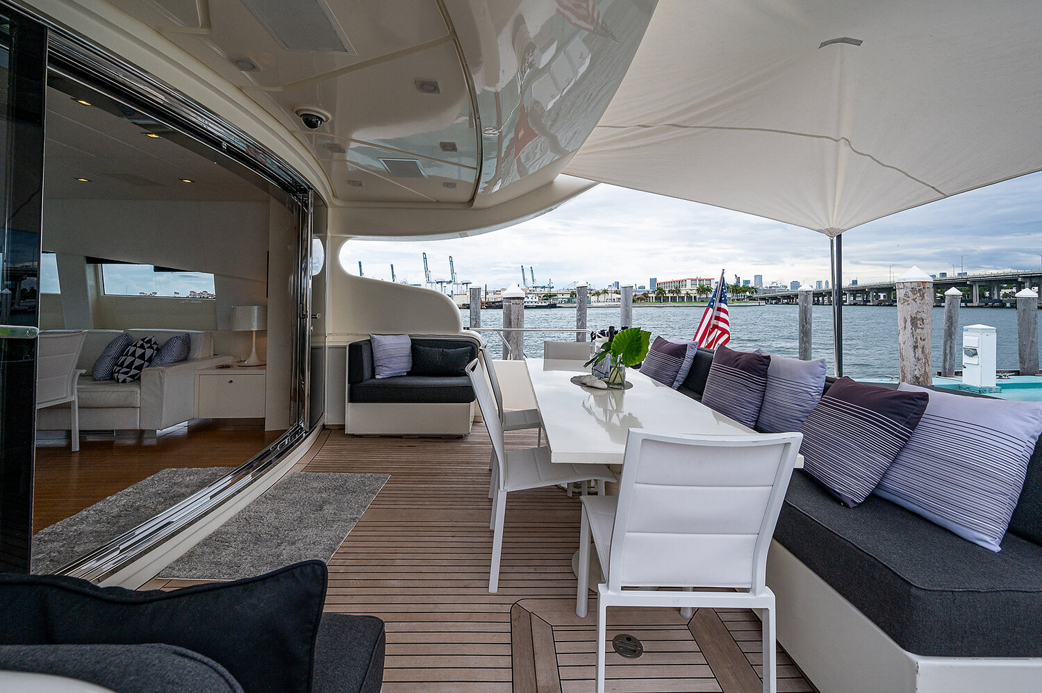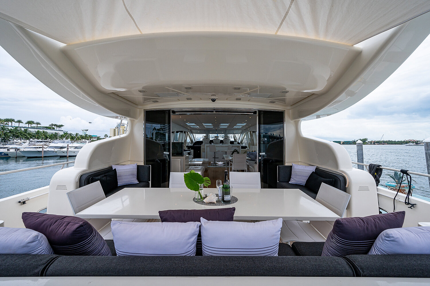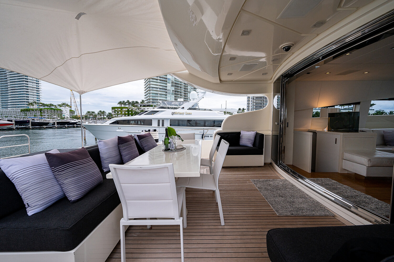 From the moment you step on board, you’re met with expansive sunbeds, an alfresco dining area, and a generous open-concept salon that lets you host, relax, and entertain with ease. The layout is designed to bring the ocean to you — whether you're anchored off a Miami sandbar, island-hopping in The Bahamas, or chasing the sunset across the Atlantic horizon.