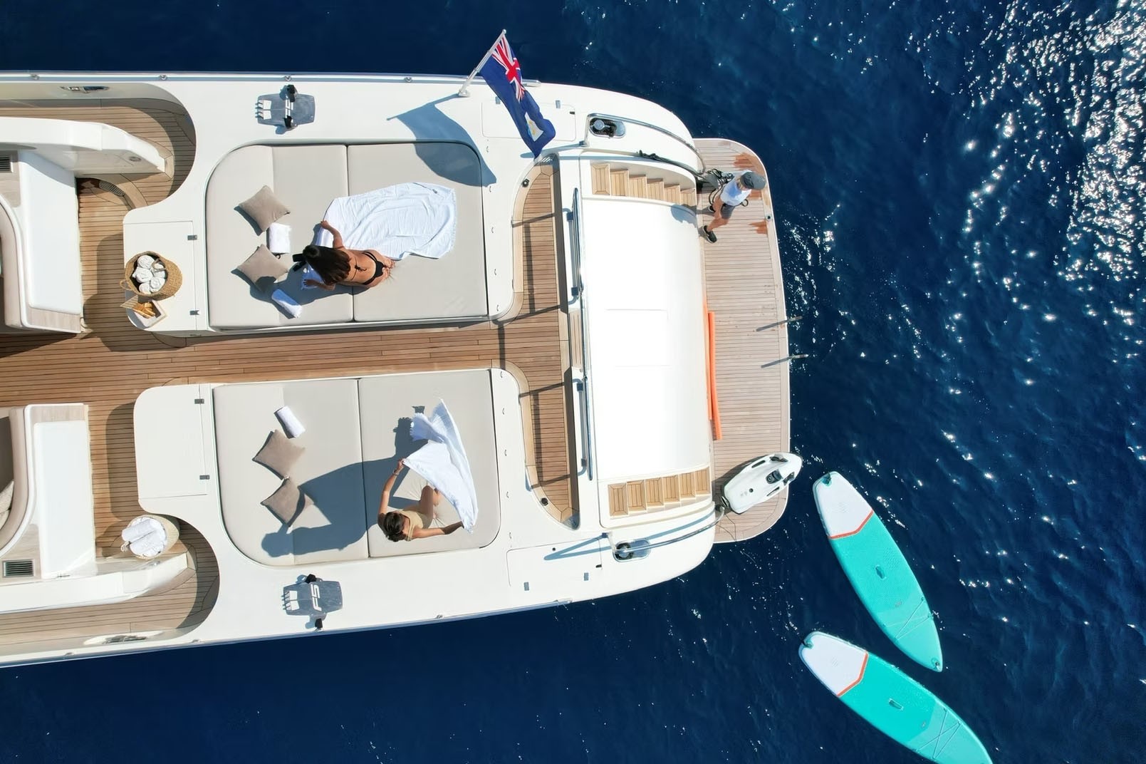 Experience the ultimate Caribbean escape aboard this 90 foot Leopard Open motor yacht, perfectly designed for cruising the breathtaking waters of the British Virgin Islands. Blending sleek performance with luxurious comfort, this yacht features expansive outdoor lounging areas at the bow and aft, along with a shaded aft cockpit ideal for alfresco dining and relaxing with panoramic ocean views. Inside, the air conditioned salon offers a stylish and comfortable retreat with modern finishes and ample seating. Accommodating up to six guests overnight, it is perfect for both day charters and extended island hopping adventures. Powered by twin MTU engines, this yacht delivers an exhilarating yet smooth ride between destinations like Jost Van Dyke, Virgin Gorda, and Norman Island. Enjoy a full selection of water toys, making every stop an unforgettable experience in the BVI.