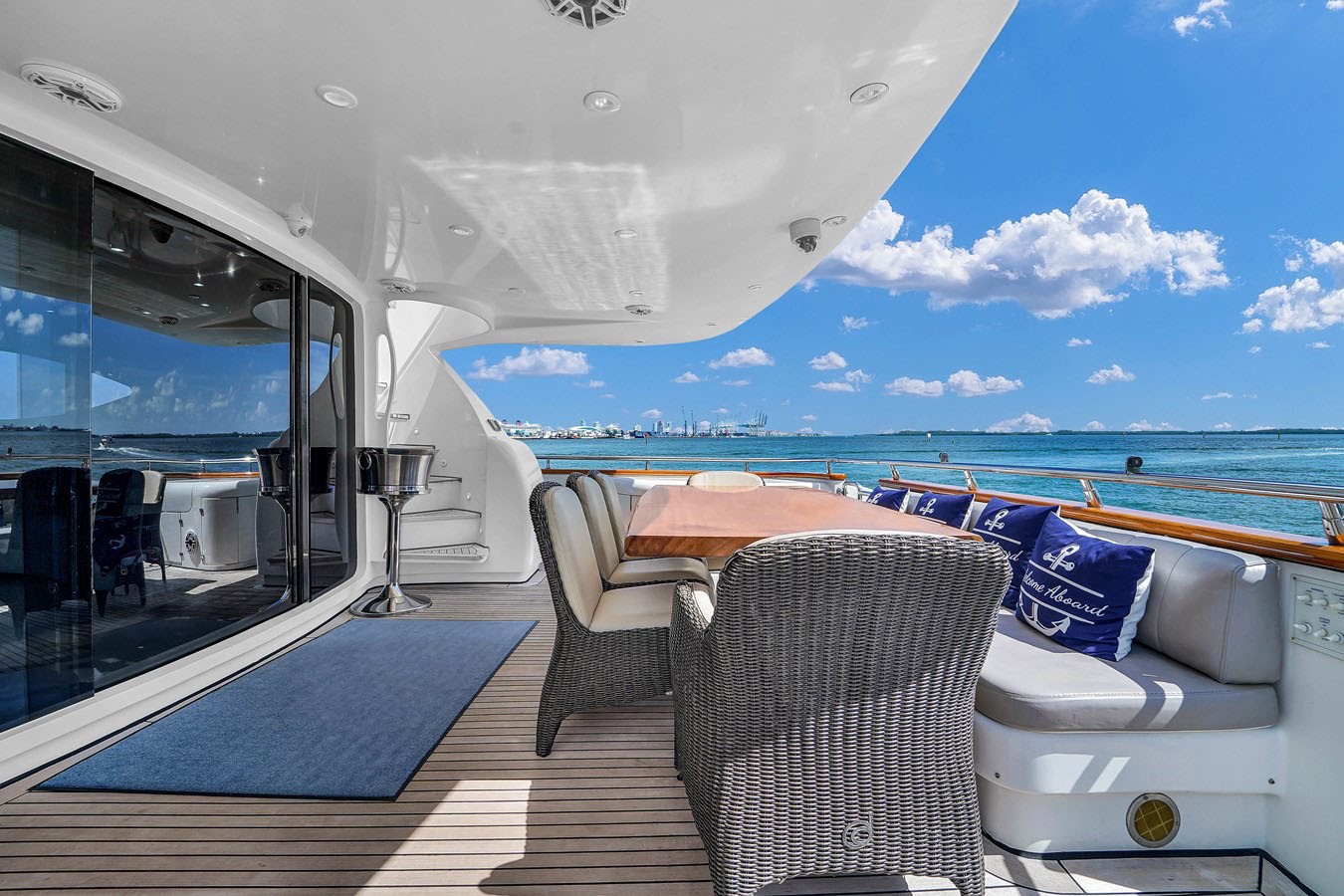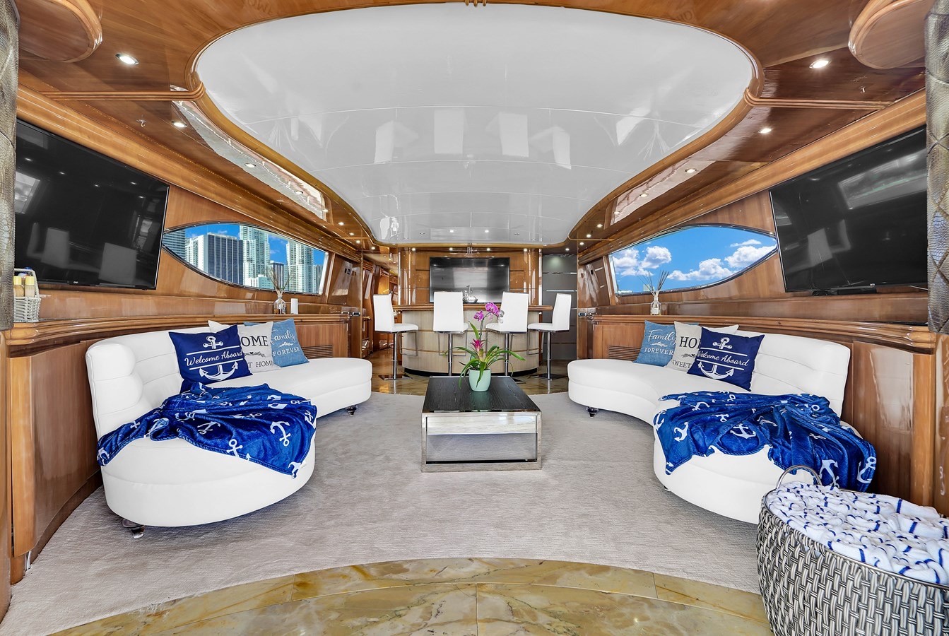 Step aboard this 110 foot Maiora motor yacht, offering a spacious and refined charter experience in Miami, Florida. Designed with a sleek profile and a raised pilothouse layout, this yacht features expansive outdoor living areas including a large aft deck for dining, a flybridge with generous seating, and a bow sunpad perfect for relaxing under the sun. Inside, the salon provides an elegant and comfortable setting with plenty of natural light and modern finishes. The layout flows seamlessly between indoor and outdoor spaces, making it ideal for entertaining or unwinding on the water. Whether cruising through Biscayne Bay or anchoring at Miami’s popular sandbars, this yacht delivers a smooth and enjoyable experience for any occasion.