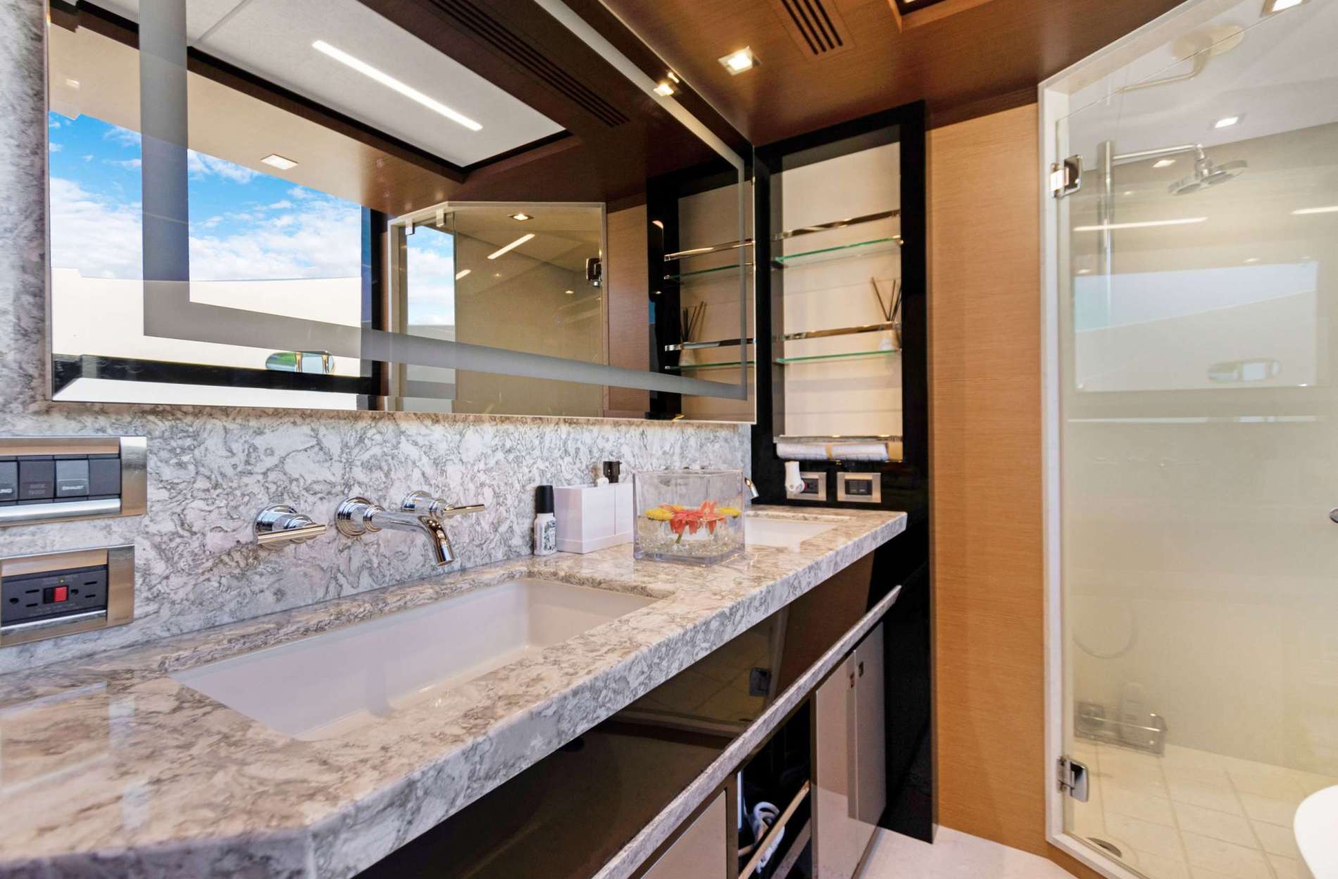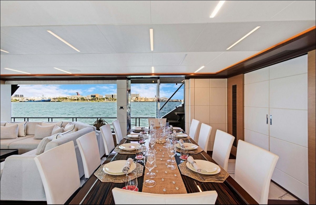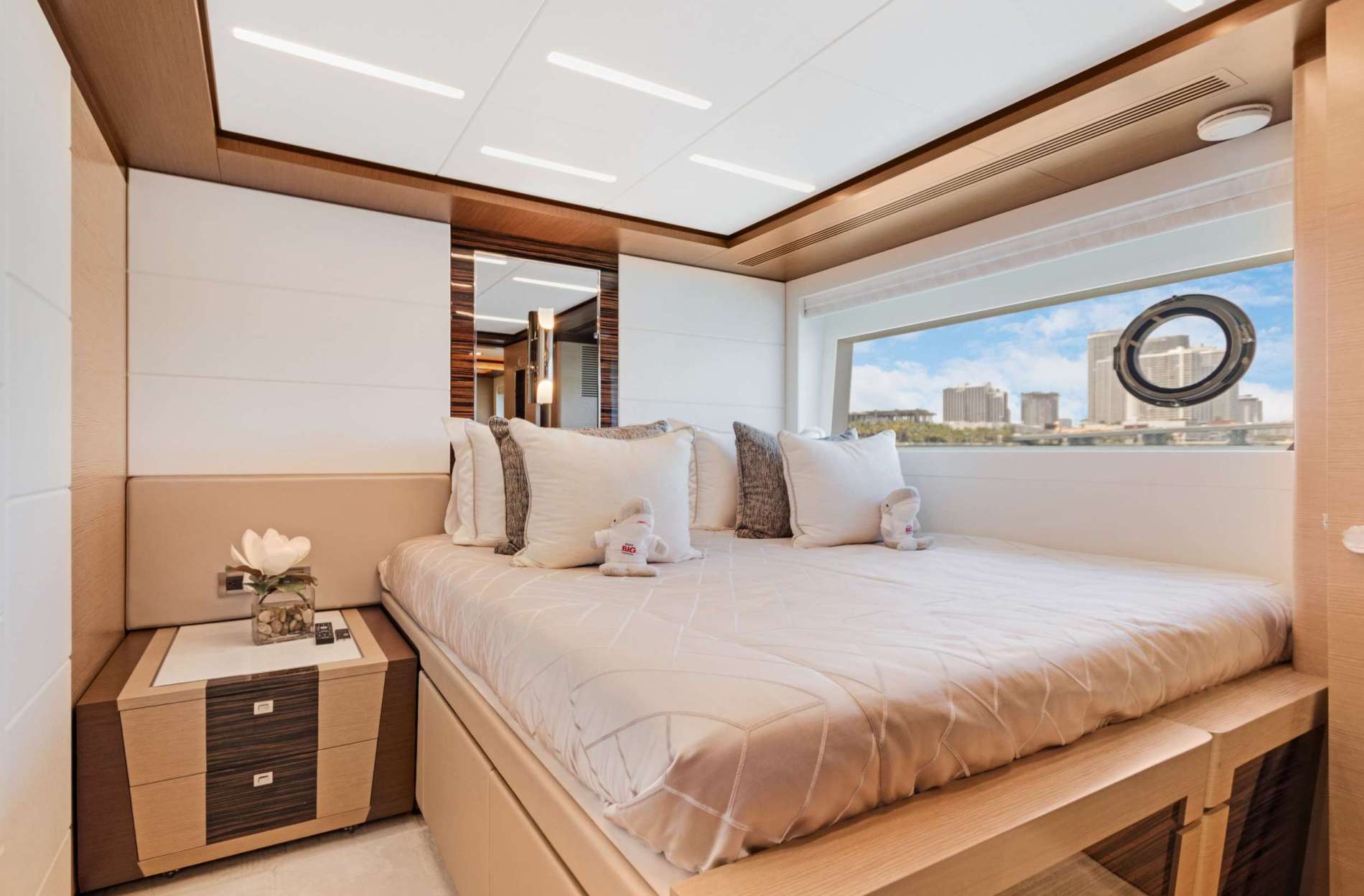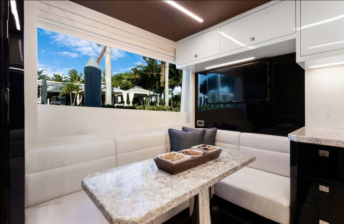 Enjoy seamless indoor-outdoor living with a generous aft deck, elegant salon, and a flybridge complete with a hot tub and lounge seating. Stay connected with Wi-Fi, streaming TV, and a premium Bluetooth sound system. For adventure seekers, the yacht comes equipped with water toys, snorkel gear, floating mats, and more. A professional captain and crew ensure a first-class charter experience from start to finish, whether you’re cruising South Florida or island-hopping in the Bahamas.