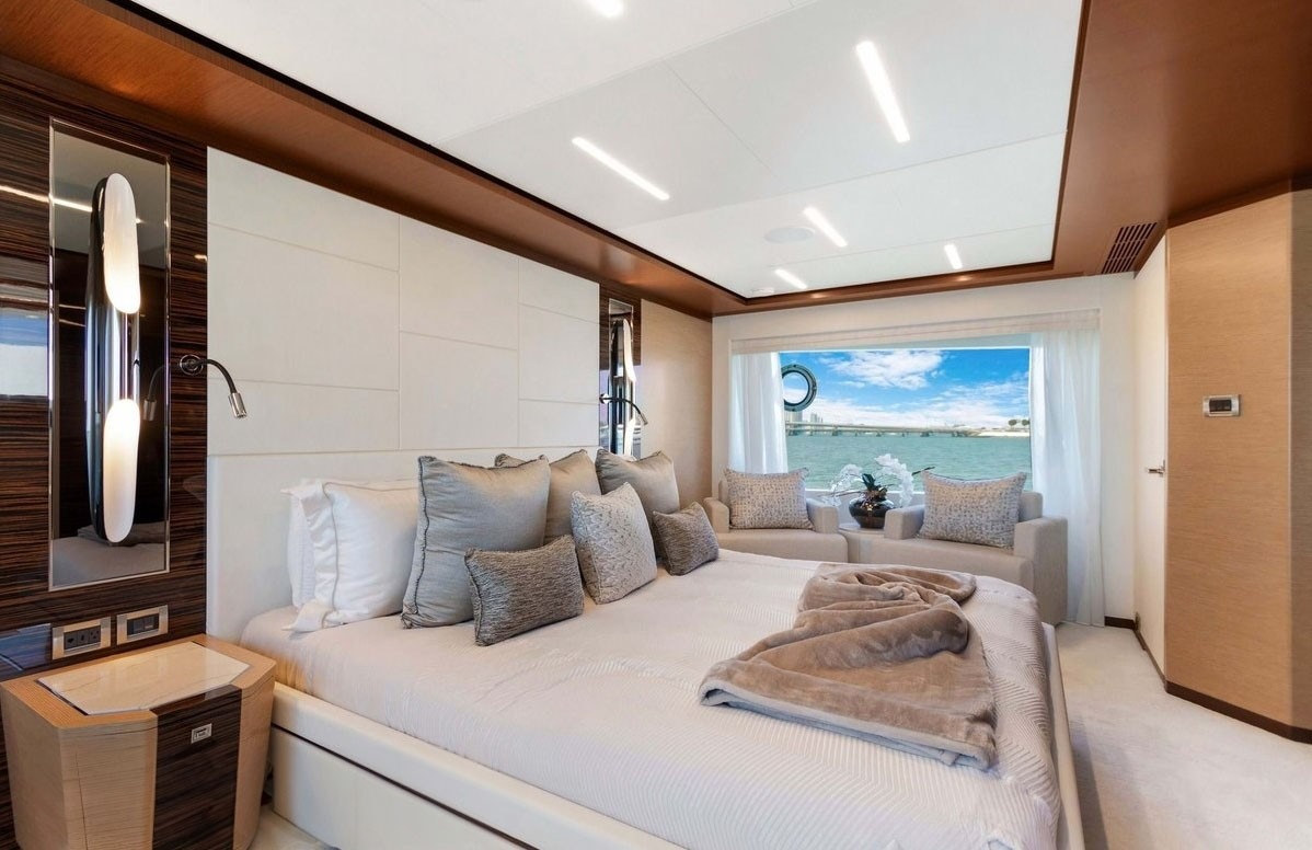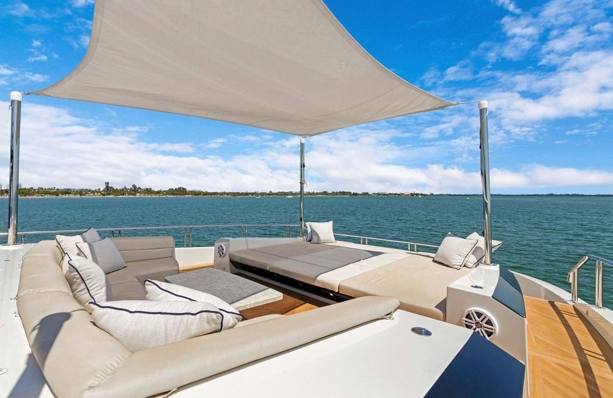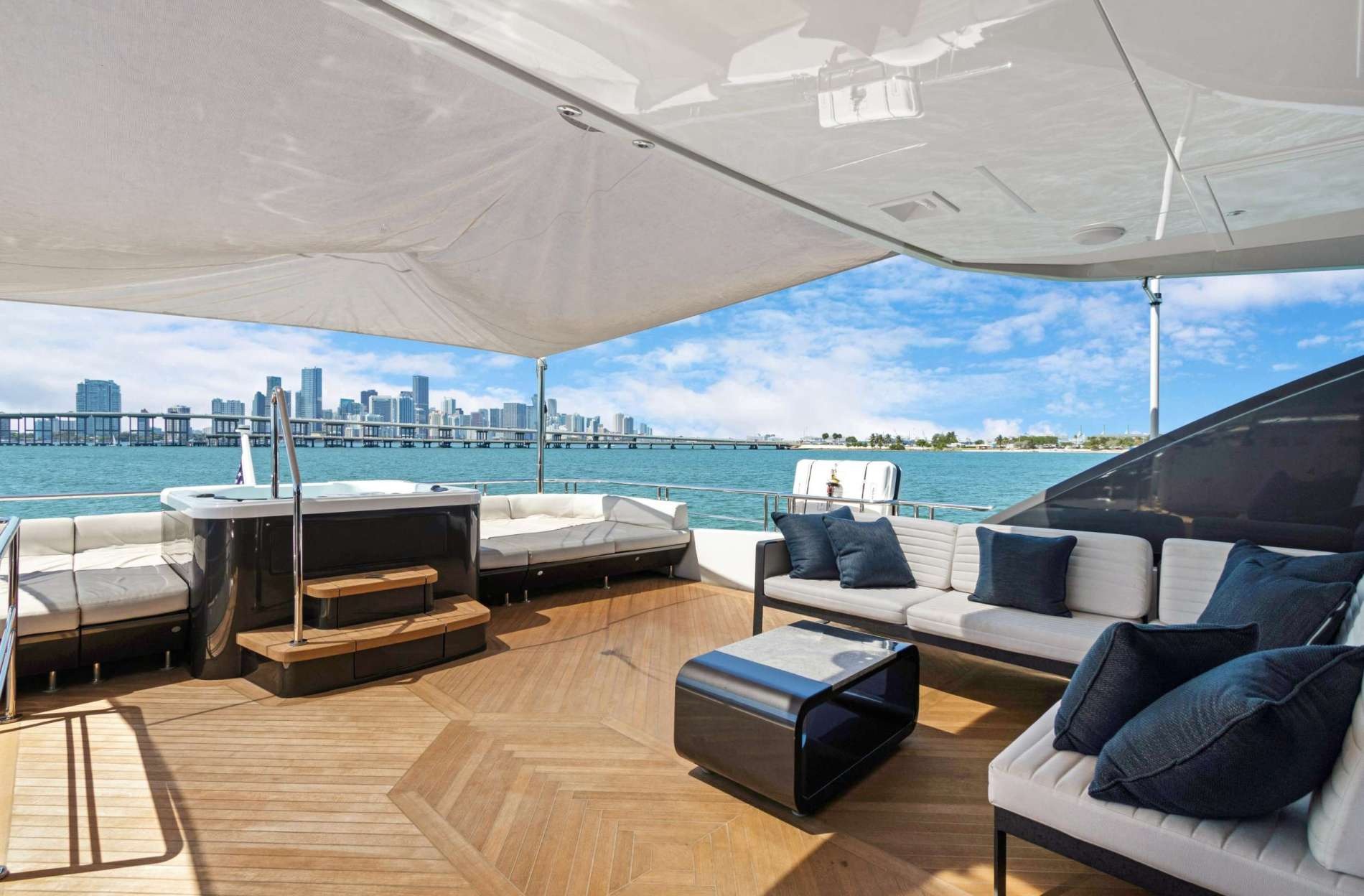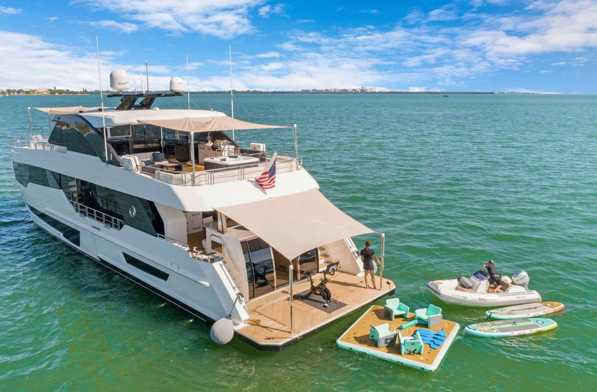 ![]() Step aboard a stunning 95-foot luxury motor yacht designed for unforgettable days on the water. Accommodating up to 13 guests for cruising and 10 overnight, this vessel features five beautifully appointed staterooms, including a spacious master suite and multiple queen and twin cabins, ideal for family escapes, celebrations, or corporate retreats. Enjoy seamless indoor-outdoor living with a generous aft deck, elegant salon, and a flybridge complete with a hot tub and lounge seating. Stay connected with Wi-Fi, streaming TV, and a premium Bluetooth sound system. For adventure seekers, the yacht comes equipped with water toys, snorkel gear, floating mats, and more. A professional captain and crew ensure a first-class charter experience from start to finish, whether you’re cruising South Florida or island-hopping in the Bahamas. | 95' Ocean AlexanderFlorida and The Keys Bahamas (Nassau)Capacity Cruising: 13 Sleeping: 10 Staterooms: 5, Suite Bathrooms: 4 Beds: Main Deck Master, 1 King Bed, 2 Queen Beds, 2 Twin Side-By-Sides Day: Captain, 3 Stew Term: Captain, 3 Stew Specifications Length: 95 Feet Beam: 23 Feet Draft: 7 Feet Year: 2020 Special Features Wifi Bluetooth Sound System Hot Tub Bar With Stools Streaming TV BBQ Grill Water Toys Underwater Scooter Tender: ft, hp Fishing Poles for kids Snorkel Gear for Floating Water Mat Inflatable Floating Island Floating Toys **Towed Tender available in Bahamas on request **12' Brigg on board tender with 50hp Honda **Umbrella beach day picnic setup **Hammok **Paddel Beach Rackets **Frisbee **Cooler **Peleton Bike **Various Gym Equipment |