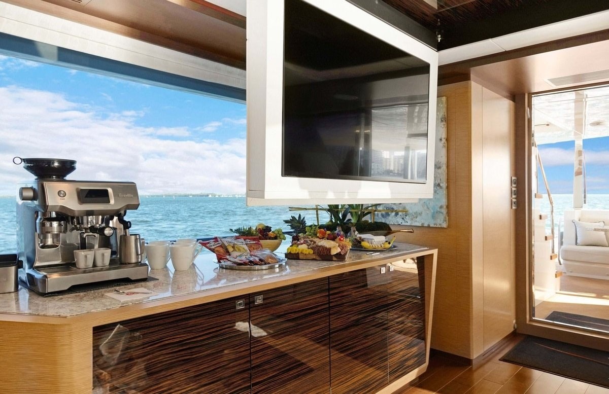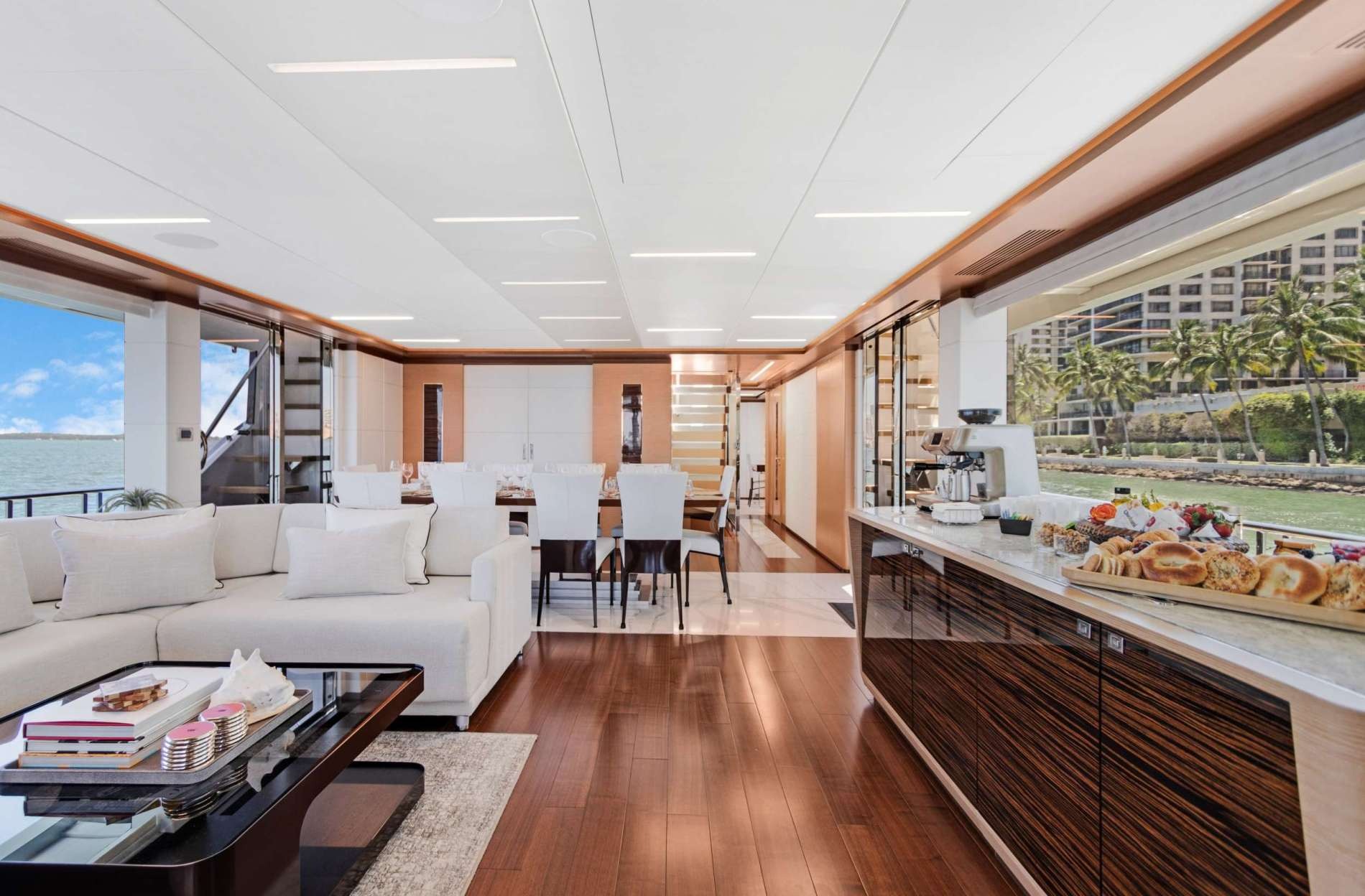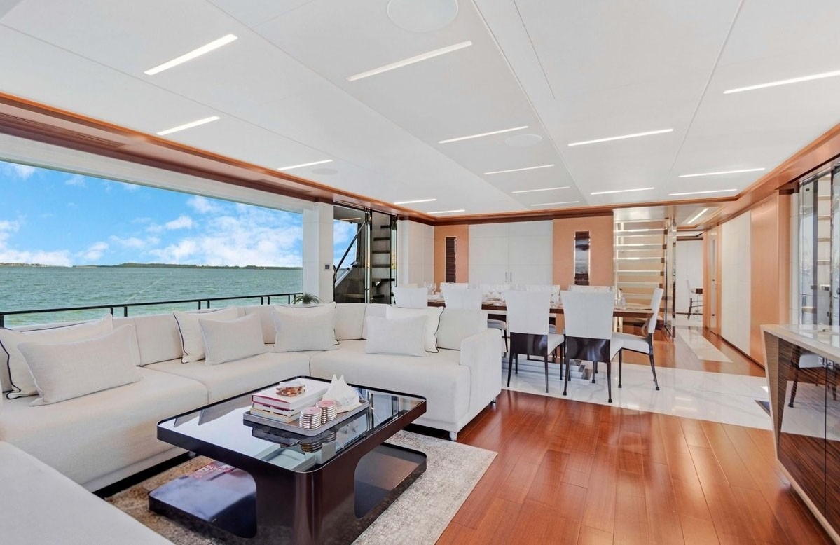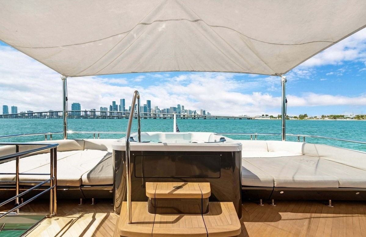![]() Step aboard a stunning 95-foot luxury motor yacht designed for unforgettable days on the water. Accommodating up to 13 guests for cruising and 10 overnight, this vessel features five beautifully appointed staterooms, including a spacious master suite and multiple queen and twin cabins, ideal for family escapes, celebrations, or corporate retreats. Enjoy seamless indoor-outdoor living with a generous aft deck, elegant salon, and a flybridge complete with a hot tub and lounge seating. Stay connected with Wi-Fi, streaming TV, and a premium Bluetooth sound system. For adventure seekers, the yacht comes equipped with water toys, snorkel gear, floating mats, and more. A professional captain and crew ensure a first-class charter experience from start to finish, whether you’re cruising South Florida or island-hopping in the Bahamas. | 95' Ocean AlexanderFlorida and The Keys Bahamas (Nassau)Capacity Cruising: 13 Sleeping: 10 Staterooms: 5, Suite Bathrooms: 4 Beds: Main Deck Master, 1 King Bed, 2 Queen Beds, 2 Twin Side-By-Sides Day: Captain, 3 Stew Term: Captain, 3 Stew Specifications Length: 95 Feet Beam: 23 Feet Draft: 7 Feet Year: 2020 Special Features Wifi Bluetooth Sound System Hot Tub Bar With Stools Streaming TV BBQ Grill Water Toys Underwater Scooter Tender: ft, hp Fishing Poles for kids Snorkel Gear for Floating Water Mat Inflatable Floating Island Floating Toys **Towed Tender available in Bahamas on request **12' Brigg on board tender with 50hp Honda **Umbrella beach day picnic setup **Hammok **Paddel Beach Rackets **Frisbee **Cooler **Peleton Bike **Various Gym Equipment |