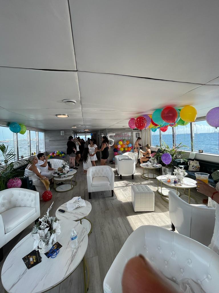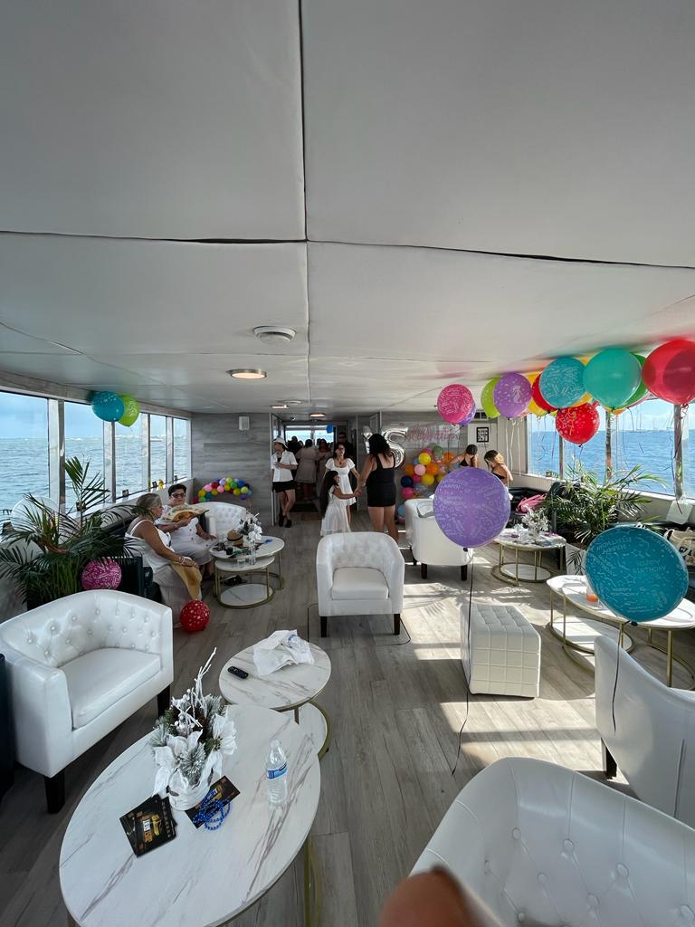 Our 100ft party yacht in Miami Florida, is a popular way to host a memorable event, typically offering a combination of luxury, excitement, and beautiful views of the Miami coastline. This party yacht can accommodate any party from 15-134 people, making it ideal for birthday parties, corporate events, bachelor/bachelorette parties, weddings, or any type of social gathering.