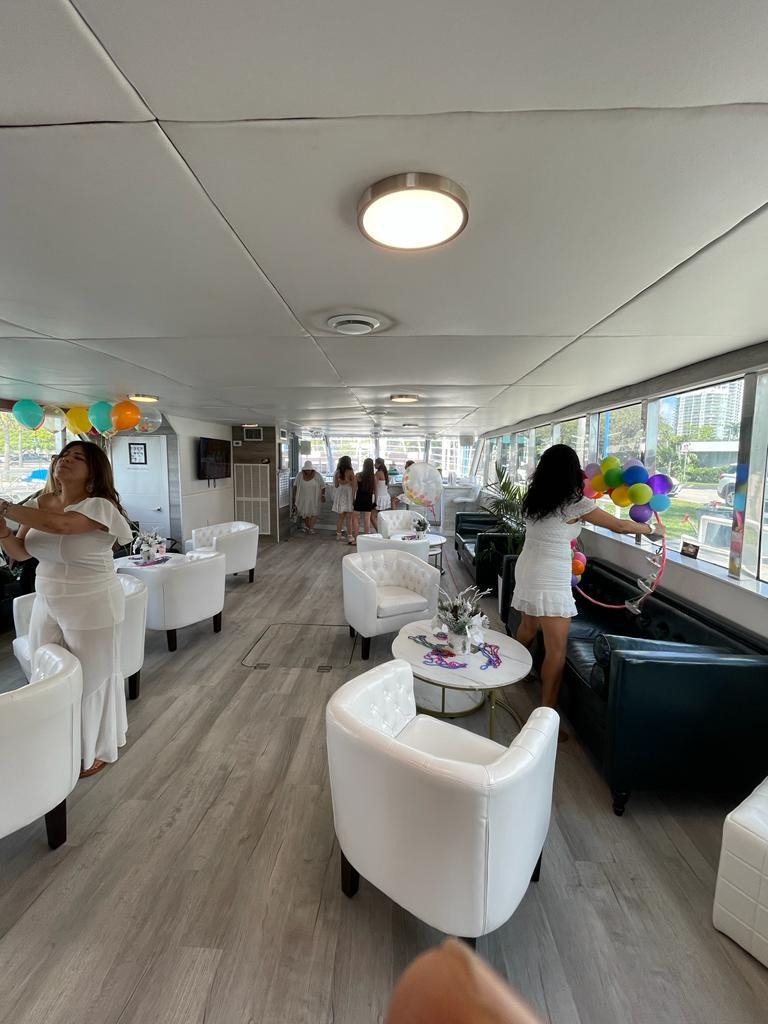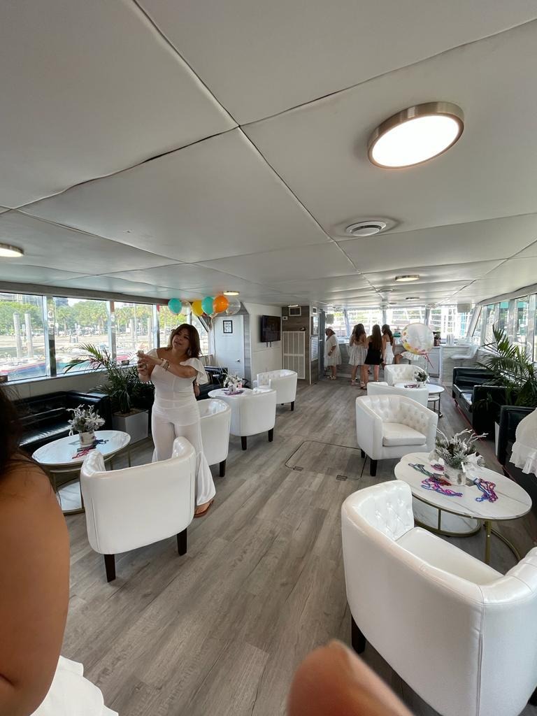 ![]() Our 100ft party yacht in Miami Florida, is a popular way to host a memorable event, typically offering a combination of luxury, excitement, and beautiful views of the Miami coastline. This party yacht can accommodate any party from 15-134 people, making it ideal for birthday parties, corporate events, bachelor/bachelorette parties, weddings, or any type of social gathering. Here are some features on this yacht: 1. Spacious Decks This yacht features two decks, with ample space for dancing, lounging, and enjoying the scenery while sipping on your favorite drink. The upper deck provides the best views of Miami's skyline and surrounding waters. 2. Party Amenities This yacht comes with a variety of amenities to enhance the celebration, such as: Space for your personal D.J if desired LED lighting for a lively atmosphere Full-service bars Dance floors Lounge areas with comfortable seating Bathrooms/changing areas 3. Catering Options In addition to the yacht rental ( ask for pricing) our yacht offer two options for catering services. You can either bring your own food and alcohol and pay ($1200 extra) for the bartenders and wait staff and helpers who will serve you, or you can let the boats professional staff cater your event with many options for food choices (Menu is available upon request). If you pick to let the boat do the catering, as part of the $65/person charge, you will get an unlimited bar service included with your food menu, and there will be no charge for the bartenders, waitress service or helpers, saving you $1200. You can also bring your own D.J. or have us bring in a D.J., that will be your choice 4. Scenic Views One of the main draws of our party yacht is the stunning views of the Miami skyline and the local waters and attractions. Guests can cruise along Biscayne Bay, pass by Fisher Island, Star Island (where some celebrities live), and enjoy the iconic Miami skyline. Sunset cruises are especially popular for creating a beautiful backdrop for the party. For those looking to throw a big, unforgettable celebration, our 100ft party yacht experience in Miami offers a perfect mix of adventure, relaxation, and high-energy fun. | 100' Party BoatFlorida and The Keys Bahamas (Nassau)Capacity Cruising: 134 At Anchor: 120 Day: Captain, 2 Stew, First Mate Specifications Length: 100 Feet Special Features Bluetooth Sound System Sonos Pickup Address: miami SW 27th street Secondary Pickup Address: miami SW 27th street |