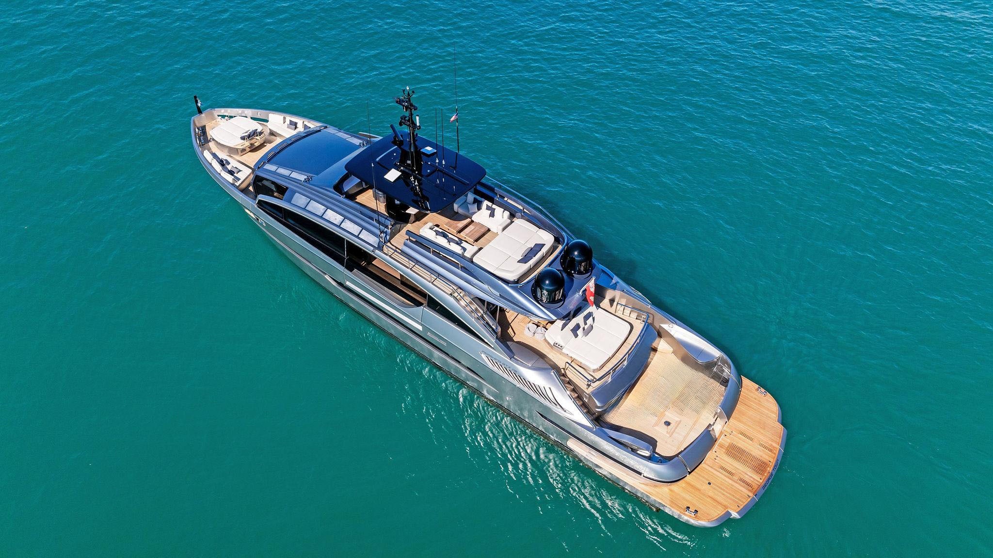 ![]() Experience luxury and performance aboard this impressive 116 foot Pershing motor yacht, a sleek Italian built yacht designed for speed, style, and unforgettable days on the water. Cruising the beautiful waters of Miami, this yacht offers expansive outdoor lounge areas perfect for relaxing with friends, enjoying the ocean breeze, and taking in the skyline views. The spacious aft deck provides comfortable seating and dining space, while the bow features a stunning lounge area with a jacuzzi, creating the perfect setting for soaking up the sun. Inside, the modern salon showcases elegant design, plush seating, and large windows that fill the space with natural light. The yacht comfortably accommodates up to ten guests in five luxurious staterooms, including a full beam master suite, making it ideal for both day charters and extended stays on the water. | 118' PershingFlorida and The Keys Bahamas (Nassau)Capacity Cruising: 13 Sleeping: 10 Staterooms: 5, Suite Bathrooms: 5 Beds: 1 King Bed, 2 Queen Beds, 2 Twin Side-By-Sides Day: Captain Specifications Length: 118 Feet Beam: 25 Feet Draft: 6 Feet Year: 2023 Special Features Wifi Bluetooth Sound System Hot Tub Bar With Stools Satellite TV Streaming TV BBQ Grill Summer Location: MIAMI, FLORIDA Winter Location: MIAMI, FLORIDA |