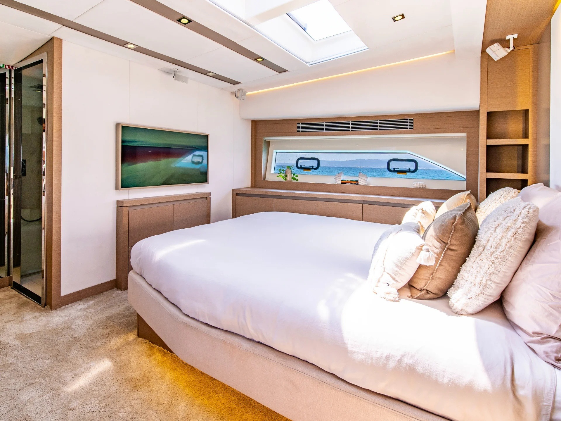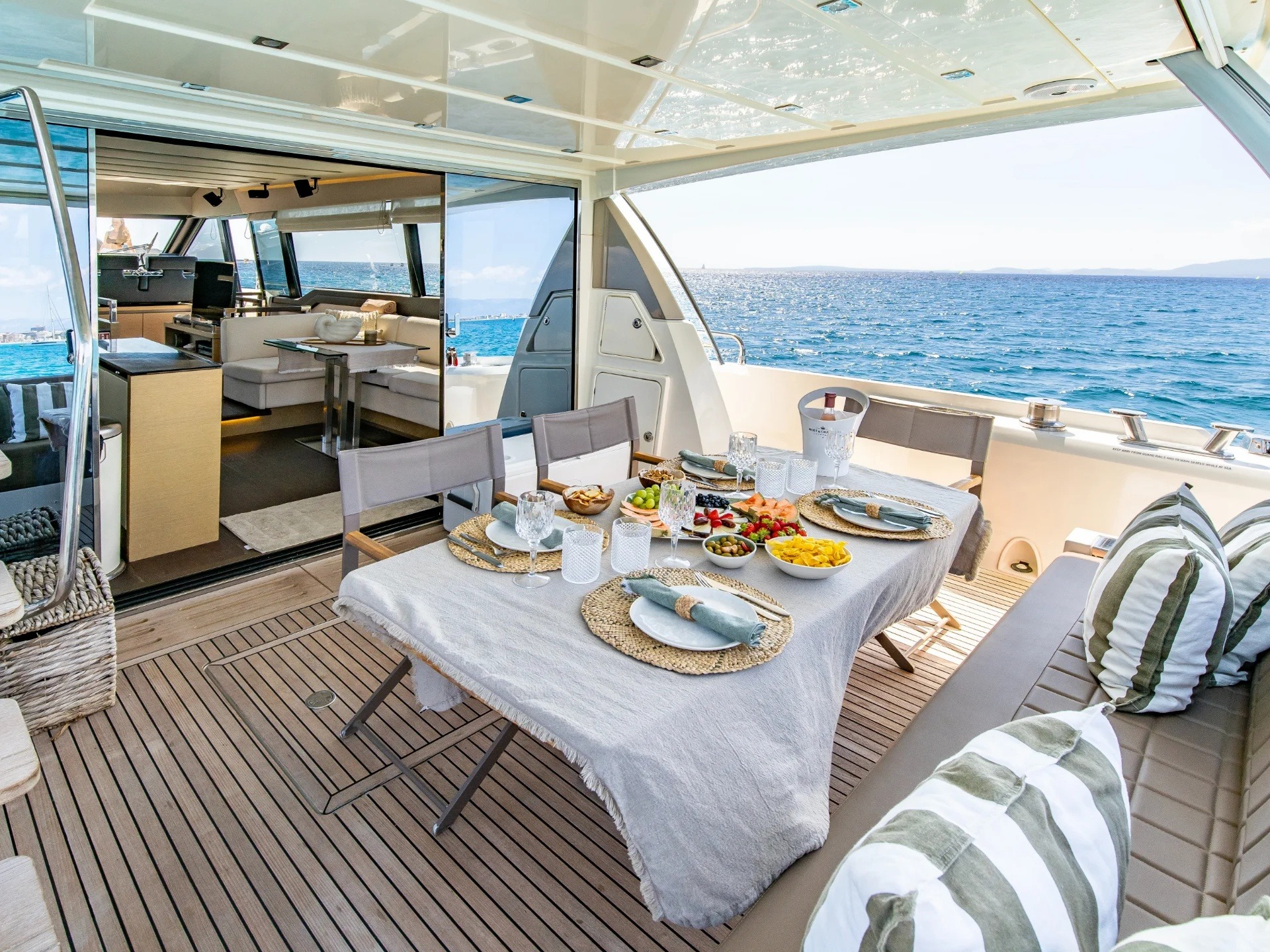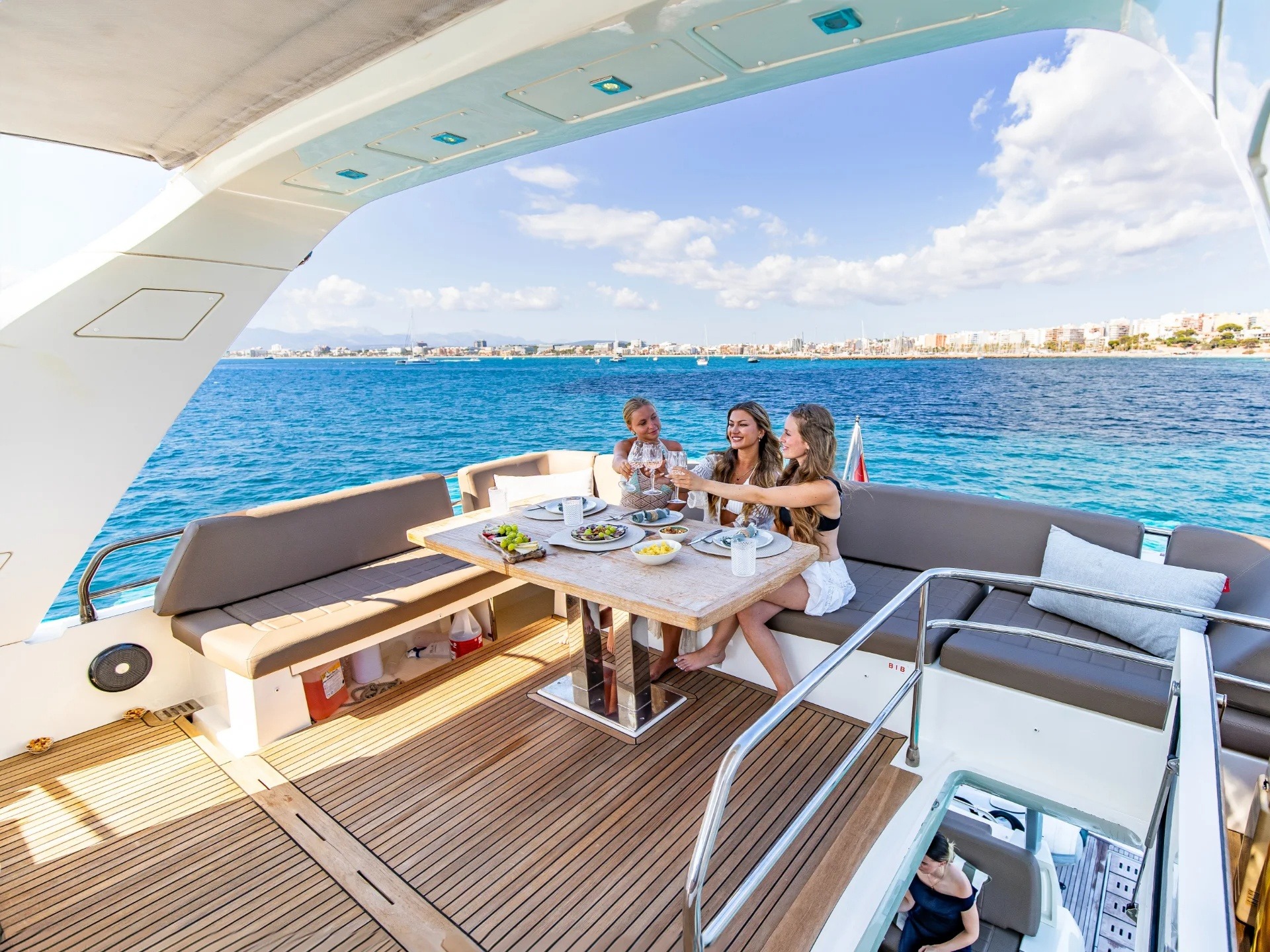![]() | 68' PrestigeEurope and MediterraneanCapacity Cruising: 12 Sleeping: 8 Staterooms: 4, Suite Bathrooms: 4 Beds: 1 King Bed, 1 Queen Bed, 2 Twin Side-By-Sides Day: Captain, Stew Specifications Length: 68 Feet Beam: 18 Feet Draft: 6 Feet Year: 2016 Special Features Wifi Starlink Bluetooth Sound System Satellite TV Streaming TV Water Toys Blow Up Waterslide (8hr day charter/term) Seabob Tender: 15ft, hp Water Skis Wakeboard Donut Paddleboards: 1 Snorkel Gear for 6 Pickup Address: Palma, Mallorca, Spain |