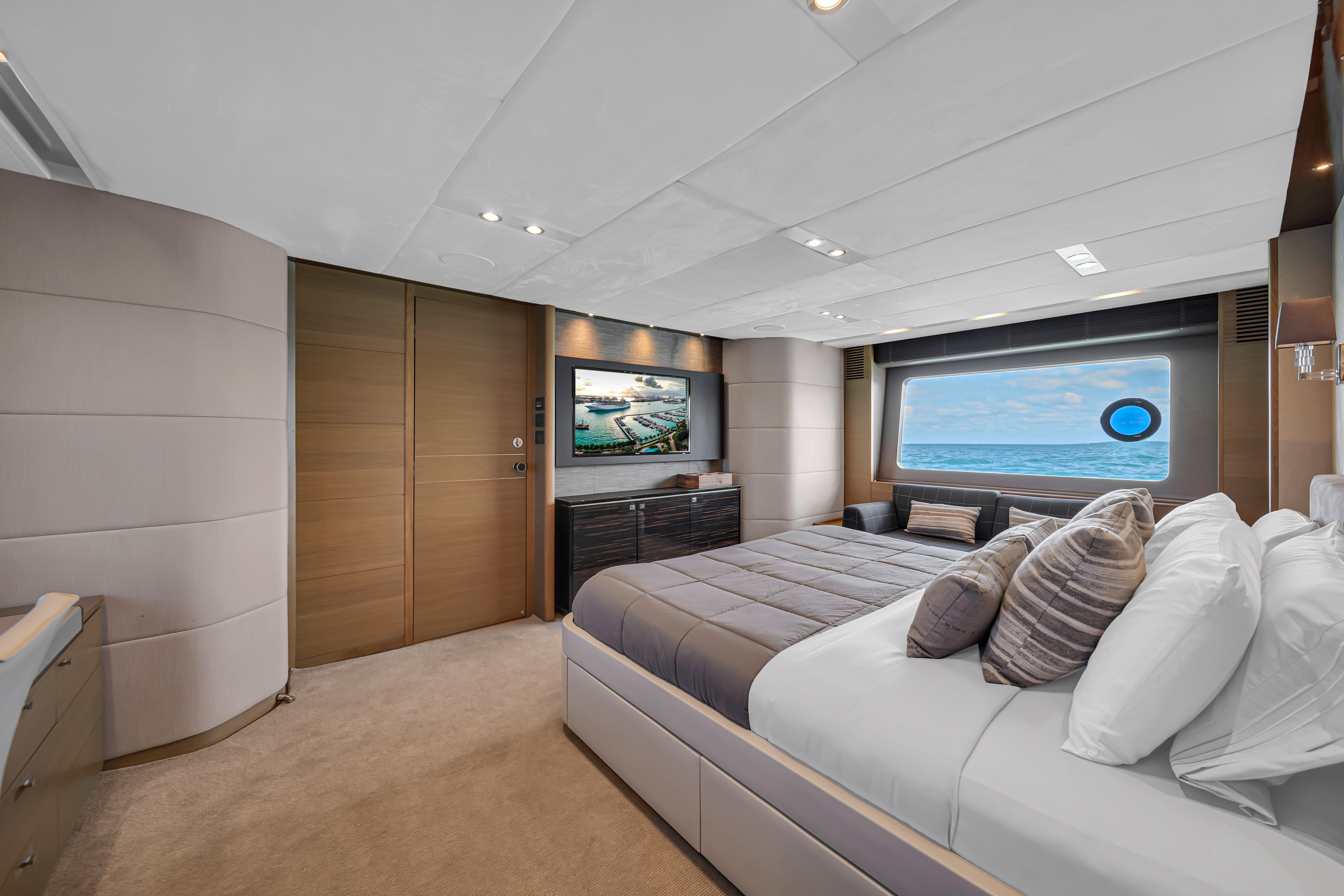 Every detail of this Princess 88 has been meticulously considered, resulting in a spacious and elegantly modern layout that effortlessly accommodates your desires. Whether you seek serene relaxation or vibrant socializing, this yacht seamlessly caters to your every whim. The allure of FREEDOM is further enriched by an impressive array of water toys and entertainment amenities, promising an unforgettable experience for bonding with family and indulging in camaraderie with friends.