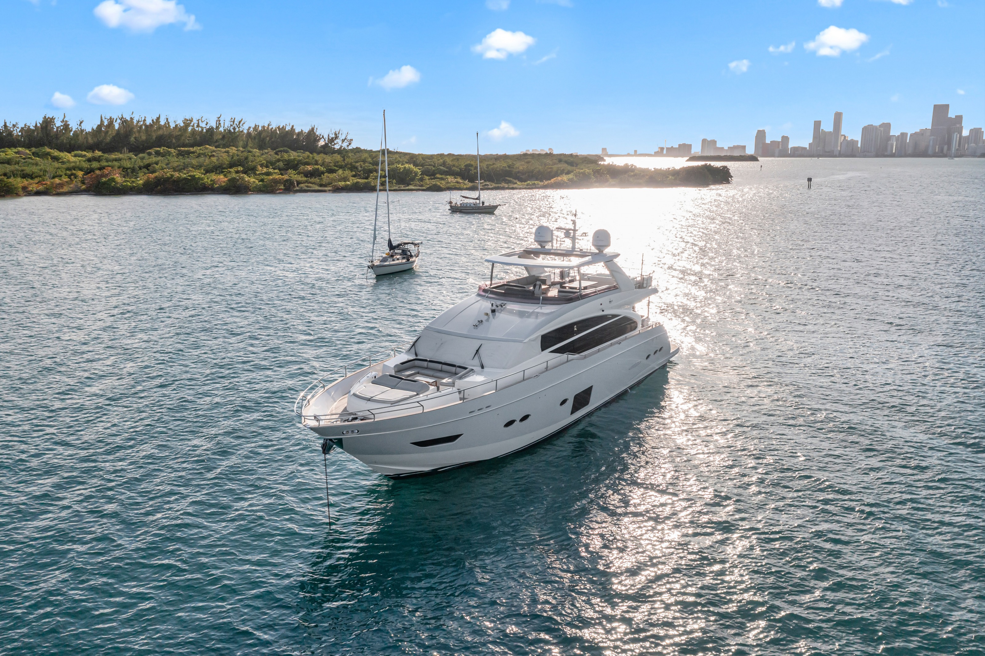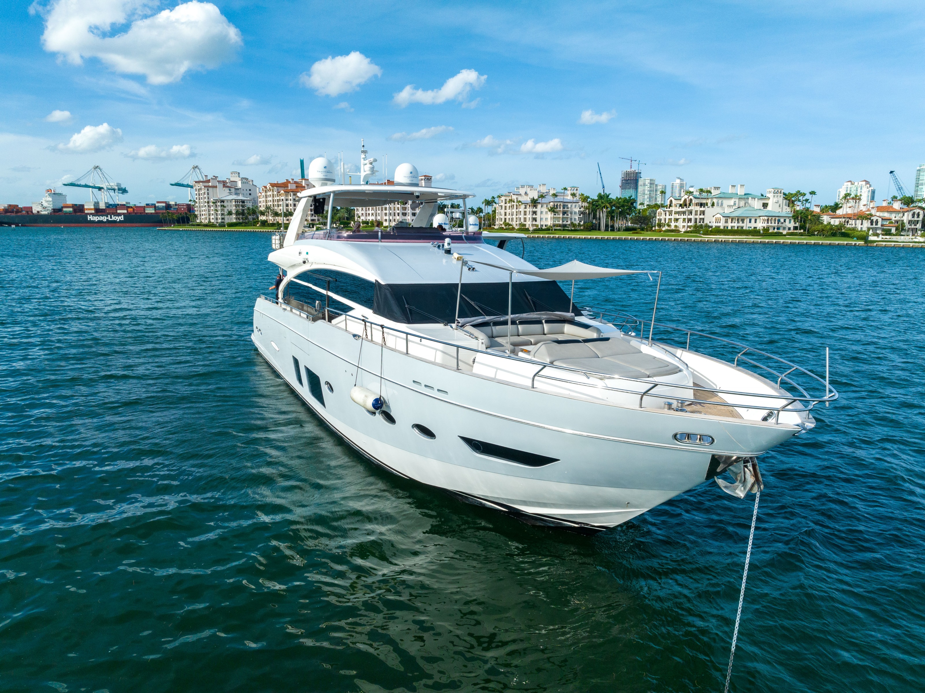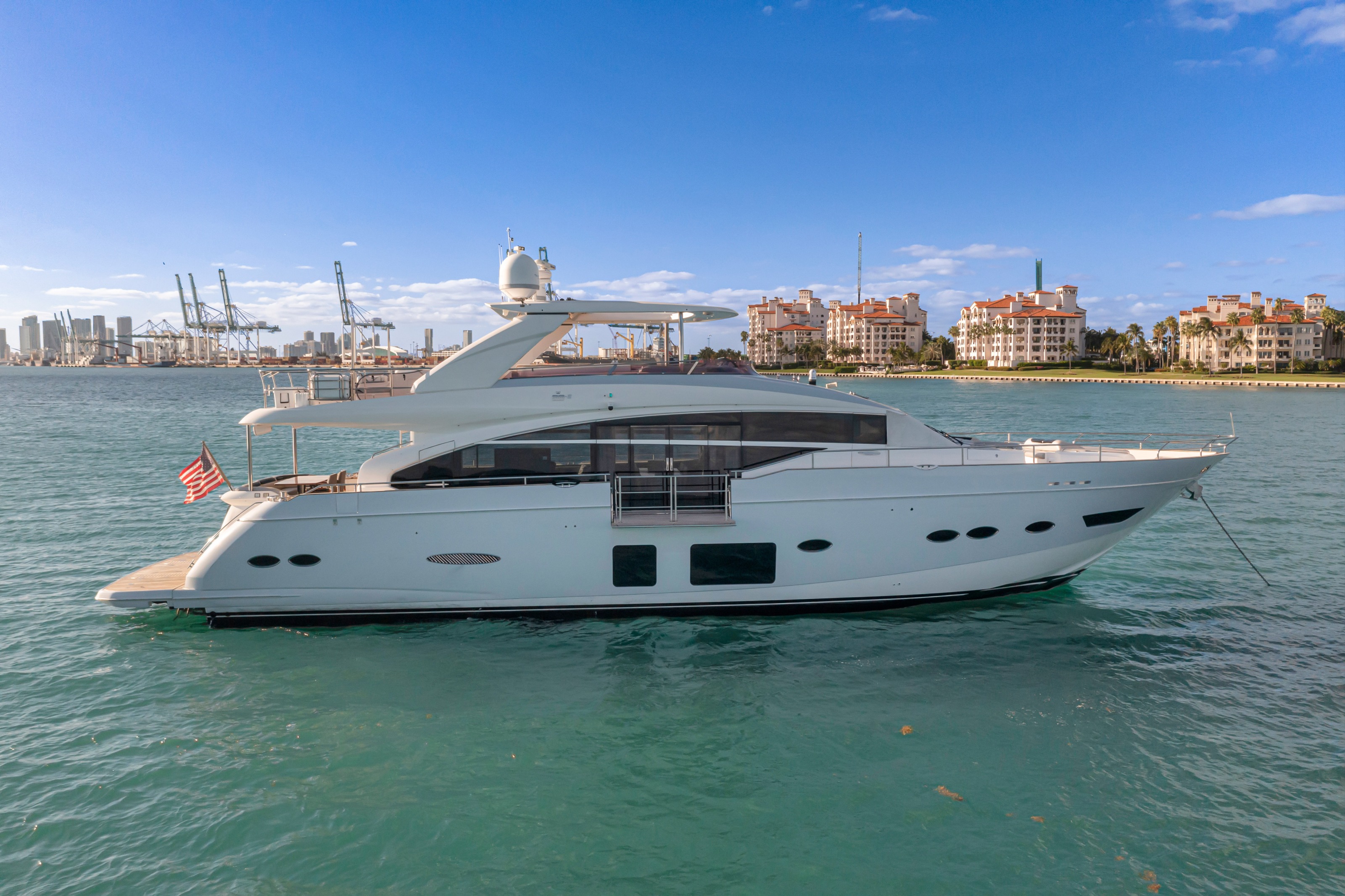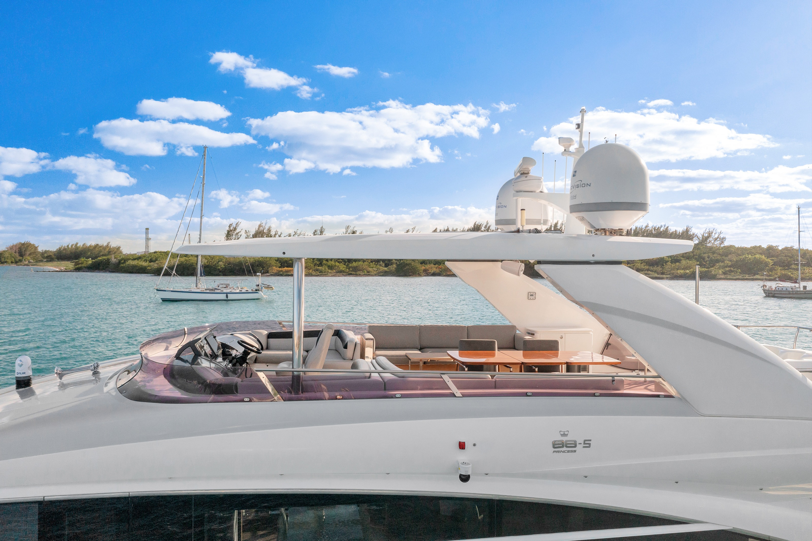 ![]() Discover the extraordinary Princess 88 yacht, named FREEDOM – a captivating and contemporary 88-foot masterpiece that graciously hosts up to 12 guests for day charters, making it an impeccable option for your upcoming Miami yacht charter. Distinguished by its timeless design, exquisite furnishings, and expansive lounging areas, MY FREEDOM emanates an atmosphere of refined elegance and comfort. Every detail of this Princess 88 has been meticulously considered, resulting in a spacious and elegantly modern layout that effortlessly accommodates your desires. Whether you seek serene relaxation or vibrant socializing, this yacht seamlessly caters to your every whim. The allure of FREEDOM is further enriched by an impressive array of water toys and entertainment amenities, promising an unforgettable experience for bonding with family and indulging in camaraderie with friends. Step aboard and be enveloped in an ambiance that exudes sophistication and relaxation. Its splendid design transcends time, providing an inviting sanctuary that invites you to revel in the pleasures of luxury yachting. From its immaculate styling to its thoughtful waterborne diversions, "Freedom" stands as an epitome of leisure and conviviality, ready to elevate your Miami yacht charter into an unparalleled journey of delight. The 88' Princess motor yacht is a stunning example of British craftsmanship and luxury, designed to offer unparalleled comfort, style, and performance on the water. | 88' Princess**Florida and The Keys Bahamas (Nassau)Capacity Cruising: 13 Sleeping: 9 Staterooms: 4, Suite Bathrooms: 4 Beds: 1 King Bed, 2 Queen Beds, Twin Side-By-Side, Pullman Day: Captain, Stew, First Mate, 1 Chef Term: Captain, Stew, 1 Stew/Chef Specifications Length: 88 Feet Beam: 20 Feet Draft: 7 Feet Year: 2015 Refit: 2024 Special Features Hot Tub Streaming TV Water Toys Tender: 8ft, 40hp Paddleboards: 1 Canoes: 1 Snorkel Gear for 1 Floating Water Mat Inflatable Floating Pool Inflatable Floating Island Flight Boards: 1 Hydrofoil: 1 |