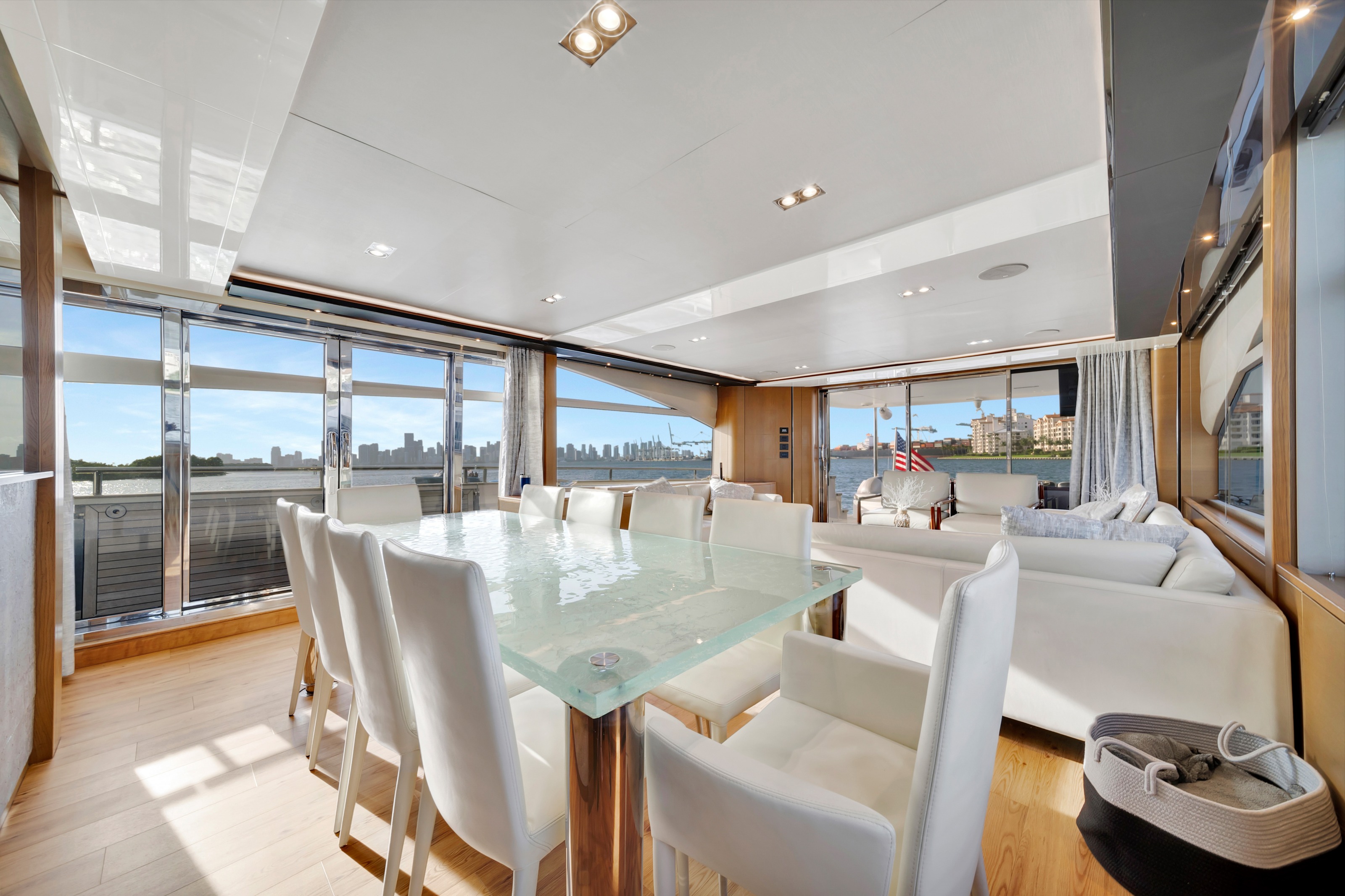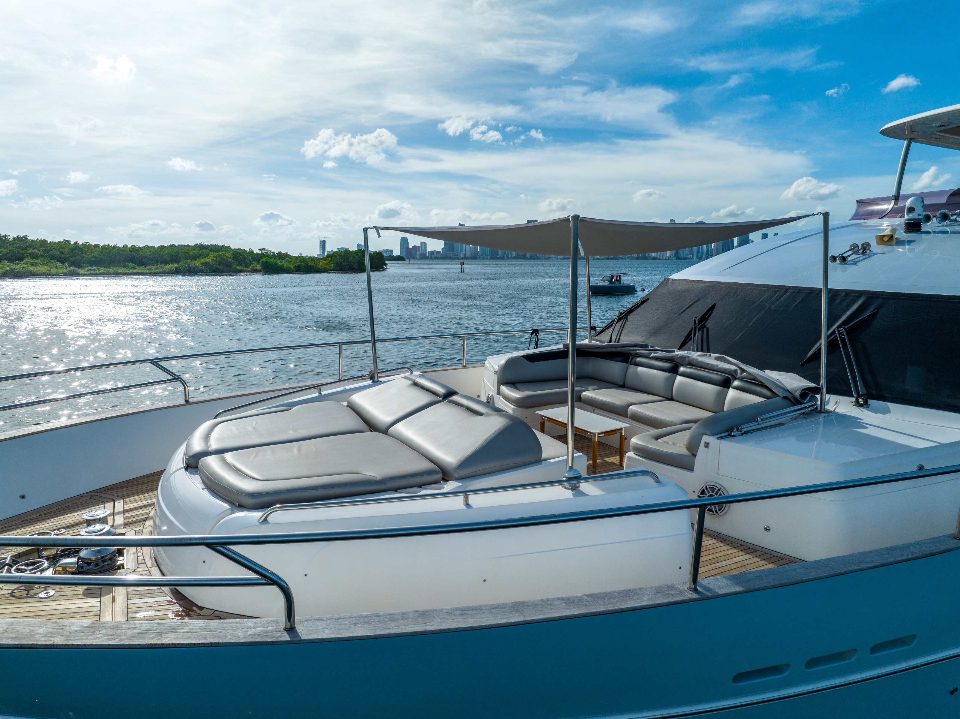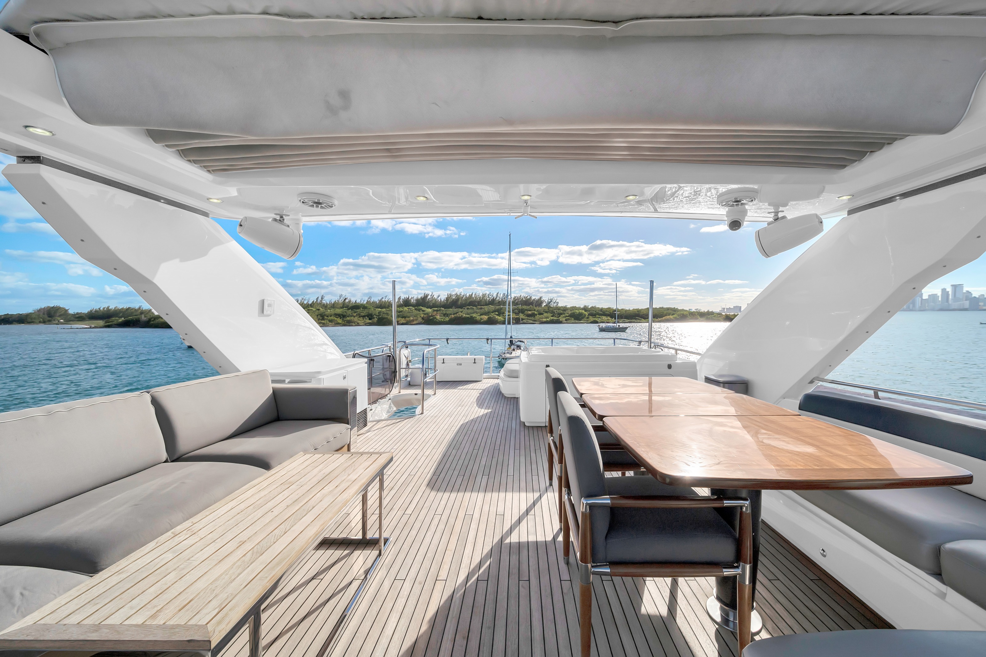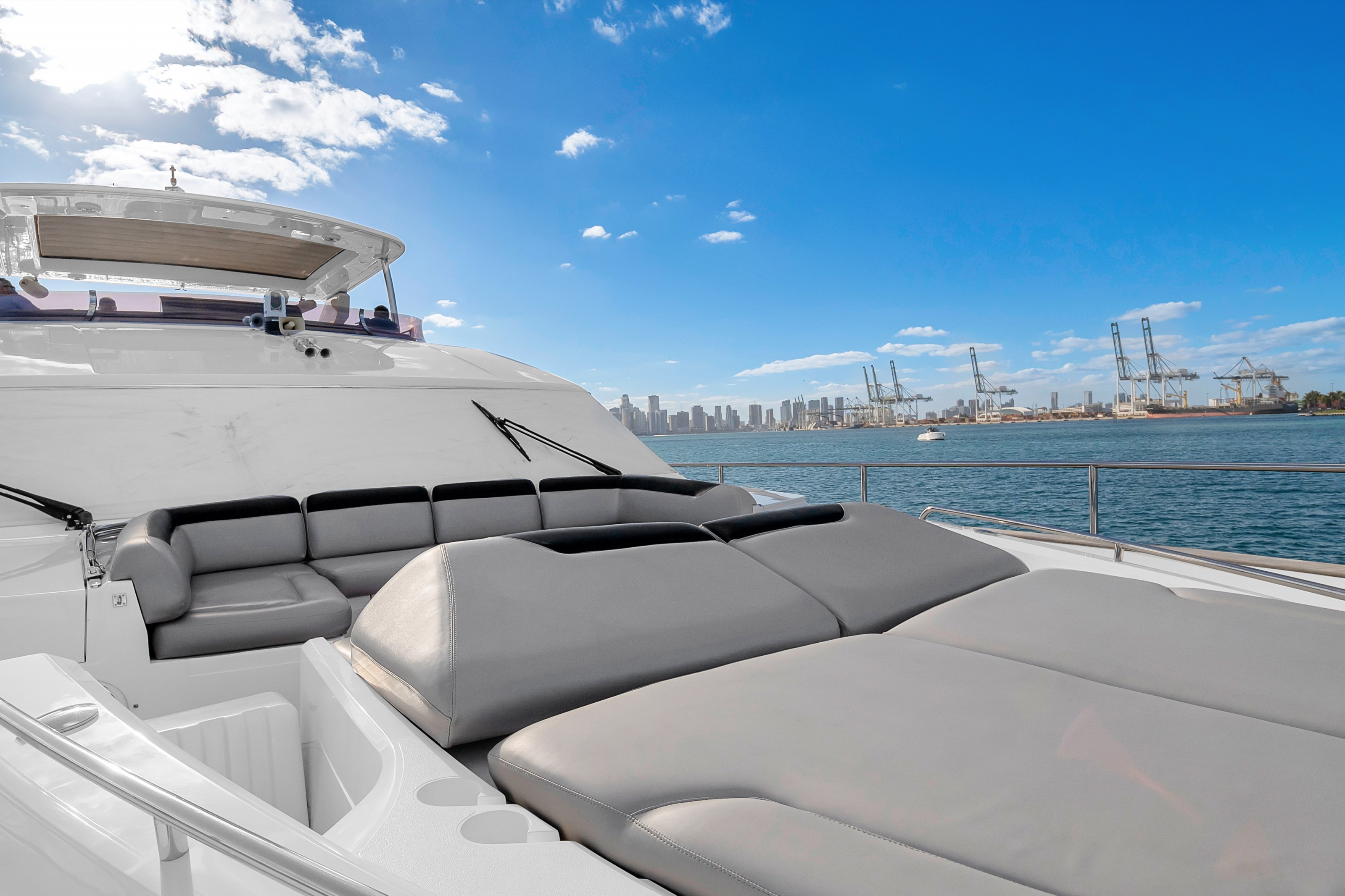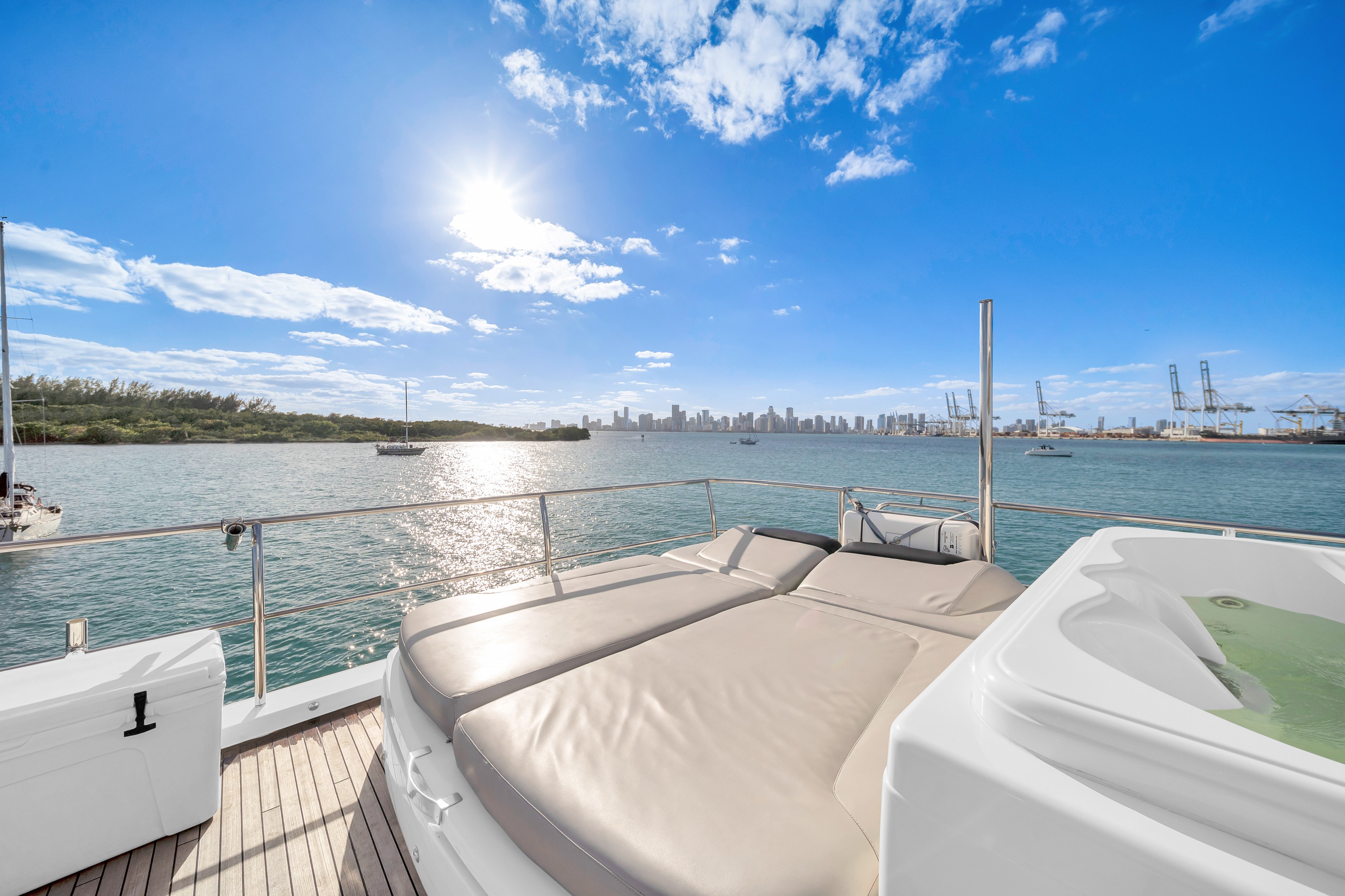 ![]() Discover the extraordinary Princess 88 yacht, named FREEDOM – a captivating and contemporary 88-foot masterpiece that graciously hosts up to 12 guests for day charters, making it an impeccable option for your upcoming Miami yacht charter. Distinguished by its timeless design, exquisite furnishings, and expansive lounging areas, MY FREEDOM emanates an atmosphere of refined elegance and comfort. Every detail of this Princess 88 has been meticulously considered, resulting in a spacious and elegantly modern layout that effortlessly accommodates your desires. Whether you seek serene relaxation or vibrant socializing, this yacht seamlessly caters to your every whim. The allure of FREEDOM is further enriched by an impressive array of water toys and entertainment amenities, promising an unforgettable experience for bonding with family and indulging in camaraderie with friends. Step aboard and be enveloped in an ambiance that exudes sophistication and relaxation. Its splendid design transcends time, providing an inviting sanctuary that invites you to revel in the pleasures of luxury yachting. From its immaculate styling to its thoughtful waterborne diversions, "Freedom" stands as an epitome of leisure and conviviality, ready to elevate your Miami yacht charter into an unparalleled journey of delight. The 88' Princess motor yacht is a stunning example of British craftsmanship and luxury, designed to offer unparalleled comfort, style, and performance on the water. | 88' Princess**Florida and The Keys Bahamas (Nassau)Capacity Cruising: 13 Sleeping: 9 Staterooms: 4, Suite Bathrooms: 4 Beds: 1 King Bed, 2 Queen Beds, Twin Side-By-Side, Pullman Day: Captain, Stew, First Mate, 1 Chef Term: Captain, Stew, 1 Stew/Chef Specifications Length: 88 Feet Beam: 20 Feet Draft: 7 Feet Year: 2015 Refit: 2024 Special Features Hot Tub Streaming TV Water Toys Tender: 8ft, 40hp Paddleboards: 1 Canoes: 1 Snorkel Gear for 1 Floating Water Mat Inflatable Floating Pool Inflatable Floating Island Flight Boards: 1 Hydrofoil: 1 |
