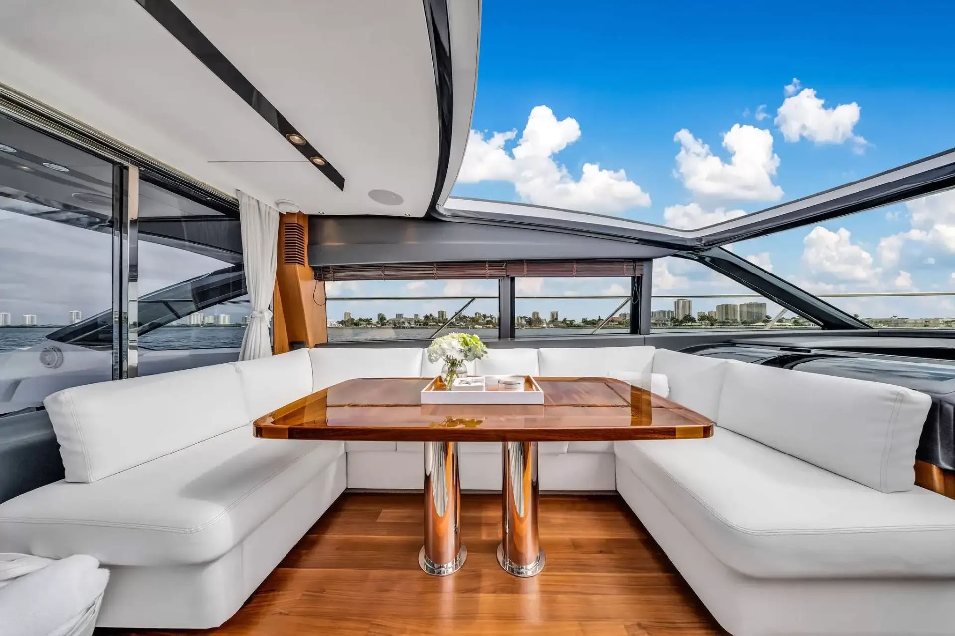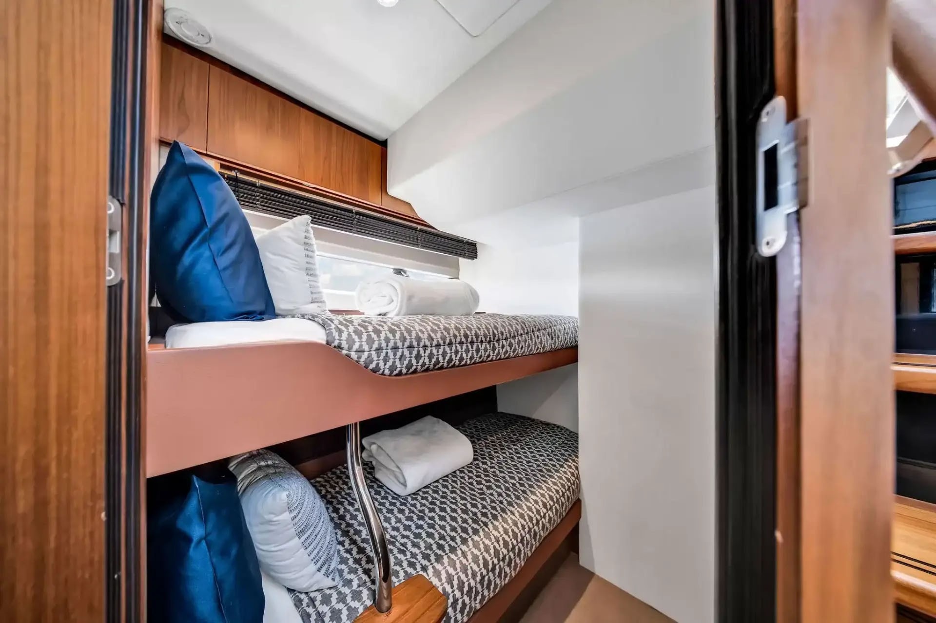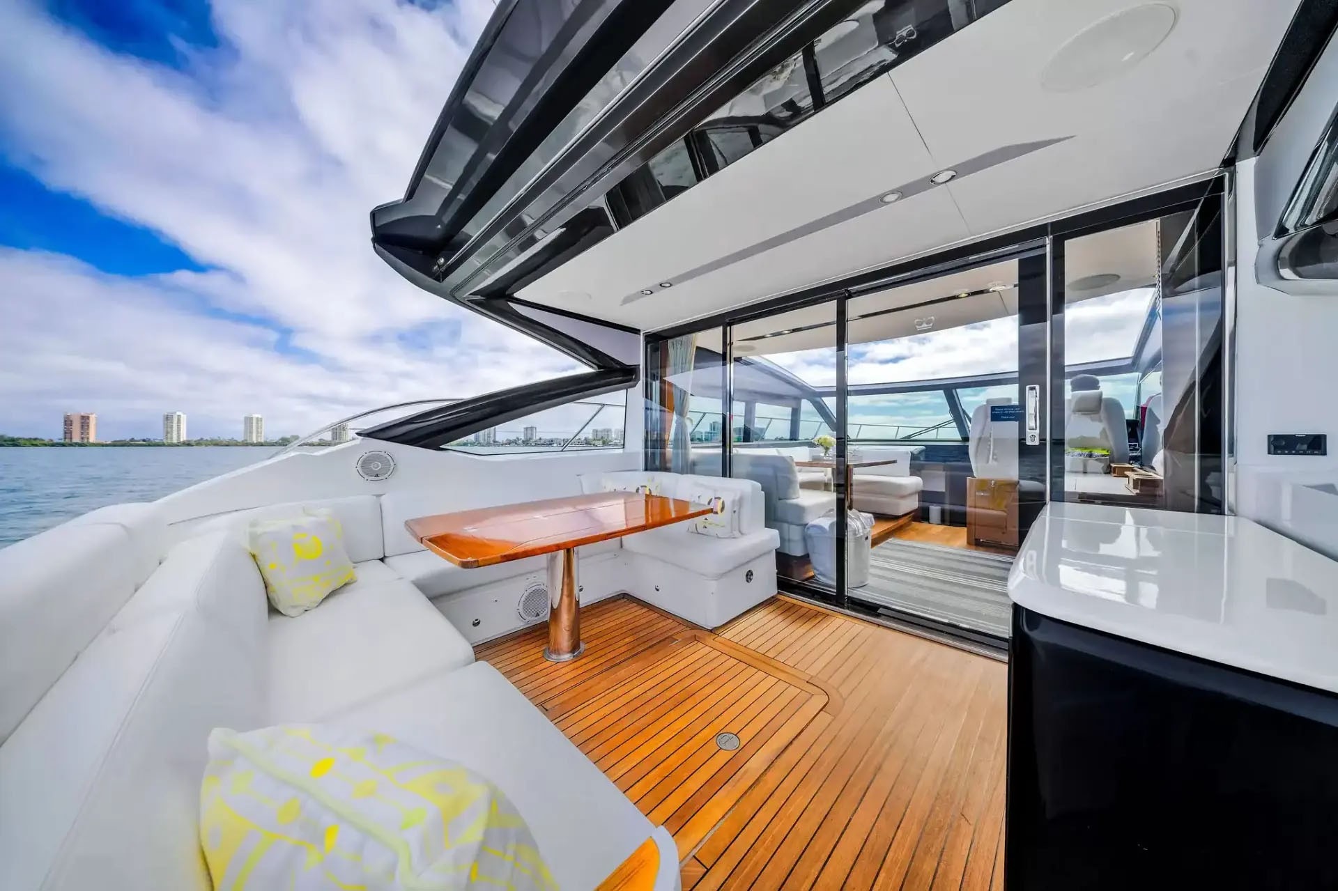 ![]() The 58ft Princess is a sleek, high-performance sports yacht available for charter in West Palm Beach and the Hamptons, combining bold exterior styling with the exhilarating performance the V Class is known for. She cruises with confidence and can reach speeds of up to 37 knots, making her ideal for stylish coastal cruising and quick island hops. The main deck salon is thoughtfully designed for entertaining, featuring a spacious U-shaped sofa surrounding a dining table, complemented by a sideboard with glass and bottle storage, a refrigerator, and a 46 inch LED TV with an electric raise and lower system. Below deck, expansive hull windows flood the accommodations with natural light, highlighting the refined craftsmanship and creating a bright, inviting atmosphere throughout. | 58' PrincessFlorida and The Keys Bahamas (Nassau) New England, NY, HamptonsCapacity Cruising: 12 Sleeping: 6 Staterooms: 3, Suite Bathrooms: 2 Beds: 1 King Bed, 1 Full Bed, 1 Twin Side-By-Side, 1 Twin Over-Under, Over-under is for crew Day: Captain, Stew, First Mate Term: Captain, Stew, First Mate Specifications Length: 58 Feet Year: 2016 Special Features Wifi Bluetooth Sound System Streaming TV BBQ Grill Water Toys Paddleboards: 2 Snorkel Gear for Floating Water Mat *Pink Inflatable Flamingo Secondary Pickup Address: Hamptons in Summer |