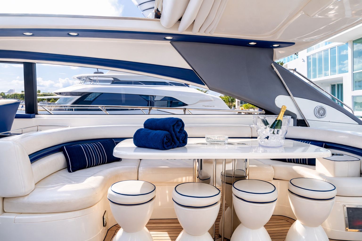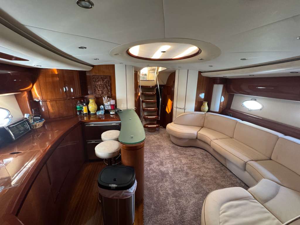 This 65' Princess offers the perfect blend of performance, comfort, and fun for an unforgettable charter experience in Miami. Designed with sleek lines and spacious outdoor living areas, she features generous sunpads, inviting lounge seating, and shaded dining spaces ideal for cruising Biscayne Bay or anchoring at a sandbar. Inside, the salon is bright and contemporary, creating a relaxed yet refined atmosphere for entertaining.