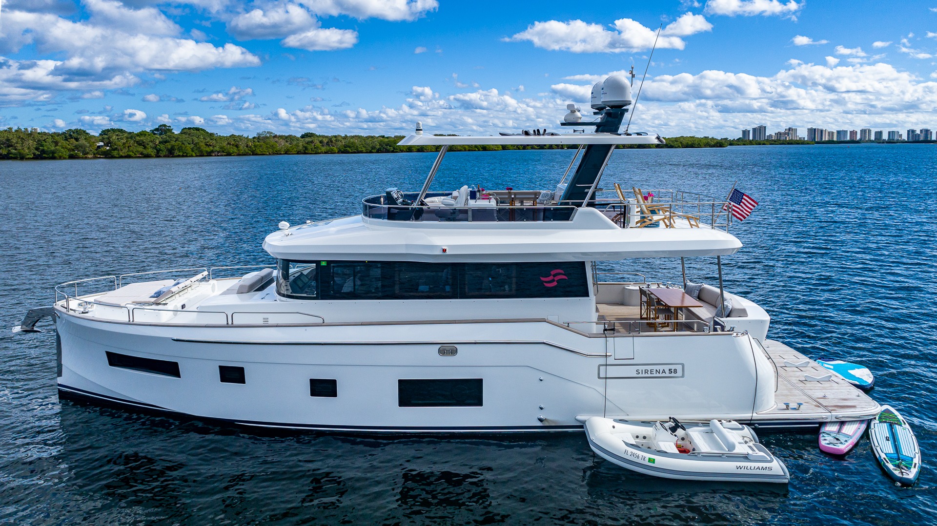 ![]() The Sirena 61 is highly regarded in the yachting world for blending luxury, performance, and efficiency in a well-designed midsize yacht. Here’s what makes the Sirena 61 stand out: Spacious interior: One of the roomiest yachts in its class, thanks to its wide beam (17'7"). The layout gives a feeling of a much larger yacht. Massive flybridge with seating, lounging, and BBQ/wet bar is a guest favorite. With the optional hardtop, guests can pick to get out of the sun and enjoy the summer breezes Aft galley/kitchen layout makes meal service and entertaining effortless—ideal for charter guests dining indoors or on the aft deck table and seating Foredeck sun pads and lounge seating offer private escape zones—great for romantic or group charters. Very unique outside flybridge shower with hot and cold water, perfect to wash off after playing in the salty water. Hydraulic swim platform for easy water access—perfect for beach club vibes and water sports. Incredible Seakeeping and handling: Known for stability and smooth handling even in choppy waters, making it ideal for both coastal cruising and longer passages. Stabilization: Sea keeper gyro for added comfort at anchor and underway. Stops most of the rocking motion that often leads to sea sickness. High-quality finishes: Interiors are luxurious, with rich wood finishes, elegant fabrics, and top-notch craftsmanship. Whether its for a romantic couples anniversary, or a small party to celebrate a special occasion, Our 61 Sirena is built to entertain the most discerning guests. | 61' SirenaFlorida and The Keys Bahamas (Nassau) New England, NY, HamptonsCapacity Cruising: 13 Sleeping: 6 Staterooms: 3 Beds: 1 King Bed, 1 Queen Bed, 1 Twin Side-By-Side Day: Captain, Stew Specifications Length: 61 Feet Beam: 18 Feet Year: 2023 Special Features Wifi Starlink Bluetooth Sound System BBQ Grill Download Menu Water Toys Tender: 12ft, 60hp Water Skis Tubes + Towable Inflatables Paddleboards: 2 Inflatable Floating Island Swim noodles, Paddleboards convert to Kyak. Flybridge has a cold and hot shower Pickup Address: Sag Harbor New York, Village Marina |