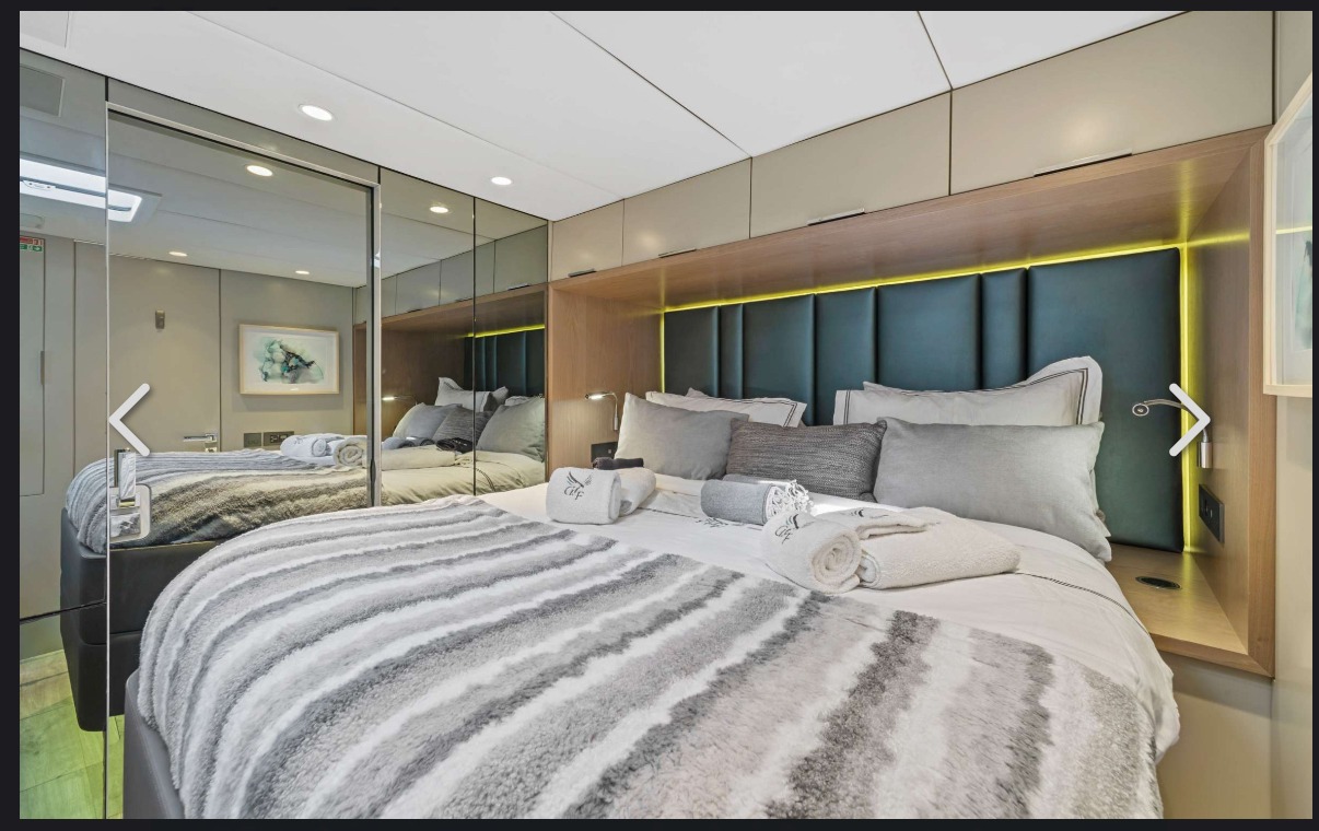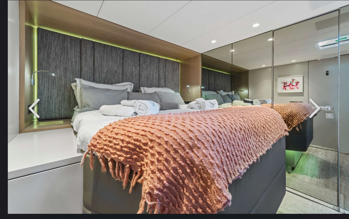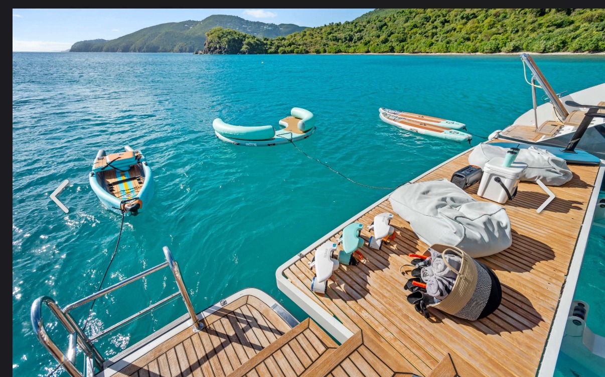 ![]() | 60' SunreefBritish Virgin Islands (BVI)Capacity Staterooms: 5, Suite Bathrooms: 5 Beds: 5 Queen Beds Term: Captain, First Mate, 1 Chef Specifications Length: 60 Feet Beam: 34 Feet Draft: 6 Feet Year: 2019 Special Features Wifi Watermaker BBQ Grill Water Toys Seabob Wakeboard Tubes + Towable Inflatables Paddleboards: 1 Fishing Poles 2 rods-Offshore Snorkel Gear for 1 Floating Water Mat Underwater Camera, Boarding Ladder & Swim Platform |