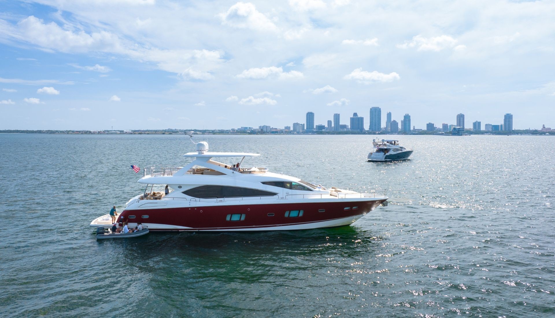 ![]() Chartering our 88 Sunseeker yacht is ideal if luxury is a must, offering a blend of superyacht features with practical size. Key reasons to charter this boat include its spacious and social deck areas with a flybridge and foredeck, and multiple entertaining spaces like a wet bar and sunbeds. Additionally, it provides a luxurious and comfortable experience with well-appointed cabins and a professional crew ready to serve. Come aboard and let us bath you with the best that a yacht this size has to offer. With a plethora of water toys, and multiple areas to layout and relax, this yacht offers it all, and if you add one of our incredible chefs to wine and dine you with gourmet meals, then lifetime memories are almost guaranteed. | 88' Sunseeker ManhattanFlorida and The Keys Bahamas (Nassau)Capacity Cruising: 12 Sleeping: 8 Staterooms: 4, Suite Bathrooms: 4 Beds: 1 King Bed, 1 Queen Bed, 2 Twin Side-By-Sides Day: Captain, Stew, First Mate Term: Captain, Stew, First Mate Specifications Length: 88 Feet Beam: 21 Feet Draft: 7 Feet Year: 2010 Refit: 2022 Special Features Wifi Bluetooth Sound System Bar With Stools BBQ Grill Water Toys Tender: 17ft, 70hp Tubes + Towable Inflatables Snorkel Gear for 6 Floating Water Mat Inflatable Floating Pool Noodles Pickup Address: Tampa Florida Secondary Pickup Address: Tampa and adjoining areas |