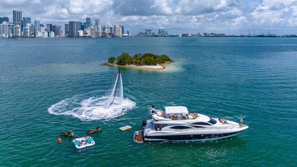 ![]() Chartering our 74 Sunseeker offers a blend of luxury, performance, and comfort. Here are some highlights: Spacious Design: With ample living space, both inside and outside, it’s perfect for relaxation or entertaining for a day charter or multiple day vacation. Luxury Amenities: Expect high-end finishes, a fully equipped kitchen, and plush cabins that ensure a comfortable stay. Performance: The Sunseeker brand is known for its impressive speed and maneuverability, making it a thrill to cruise on. Entertainment Options: This 74 comes equipped with modern entertainment systems, blue tooth stereo system, WIFI, and lots entertainment areas. Outdoor Living: Enjoy sunbathing on the bow cushions for 8 people, dining al fresco on the aft deck or flybridge. Water Toys: Include a floating mat, party island and the ability to rent jet skis for $150/hr and a Fly board for $400. Professional Crew: A charter includes a skilled crew to handle navigation and provide top-notch service. A chef is always an option for an additional charge Beautiful Destinations: Chartering allows you to explore stunning coastlines and secluded bays at your own pace. Customizable Itineraries: Tailor your experience to include stops at charming ports, water toys, vibrant nightlife, or serene beaches. Memorable Experience: Whether for a special occasion or a getaway, it’s a unique way to create lasting memories with friends or family. Overall, a charter on a 74 Sunseeker combines luxury, adventure, and relaxation for an unforgettable experience! | 74' SunseekerFlorida and The Keys Bahamas (Nassau)Capacity Cruising: 13 Sleeping: 8 Staterooms: 4, Suite Bathrooms: 4 Beds: 2 Queen Beds, 1 Twin Side-By-Side, 1 Twin Over-Under Day: Captain, Stew Term: Captain, Stew Specifications Length: 74 Feet Year: 2012 Special Features Wifi Bluetooth Sound System BBQ Grill Water Toys Jetski Rentals Available for $150/hr Floating Water Mat Inflatable Floating Island |