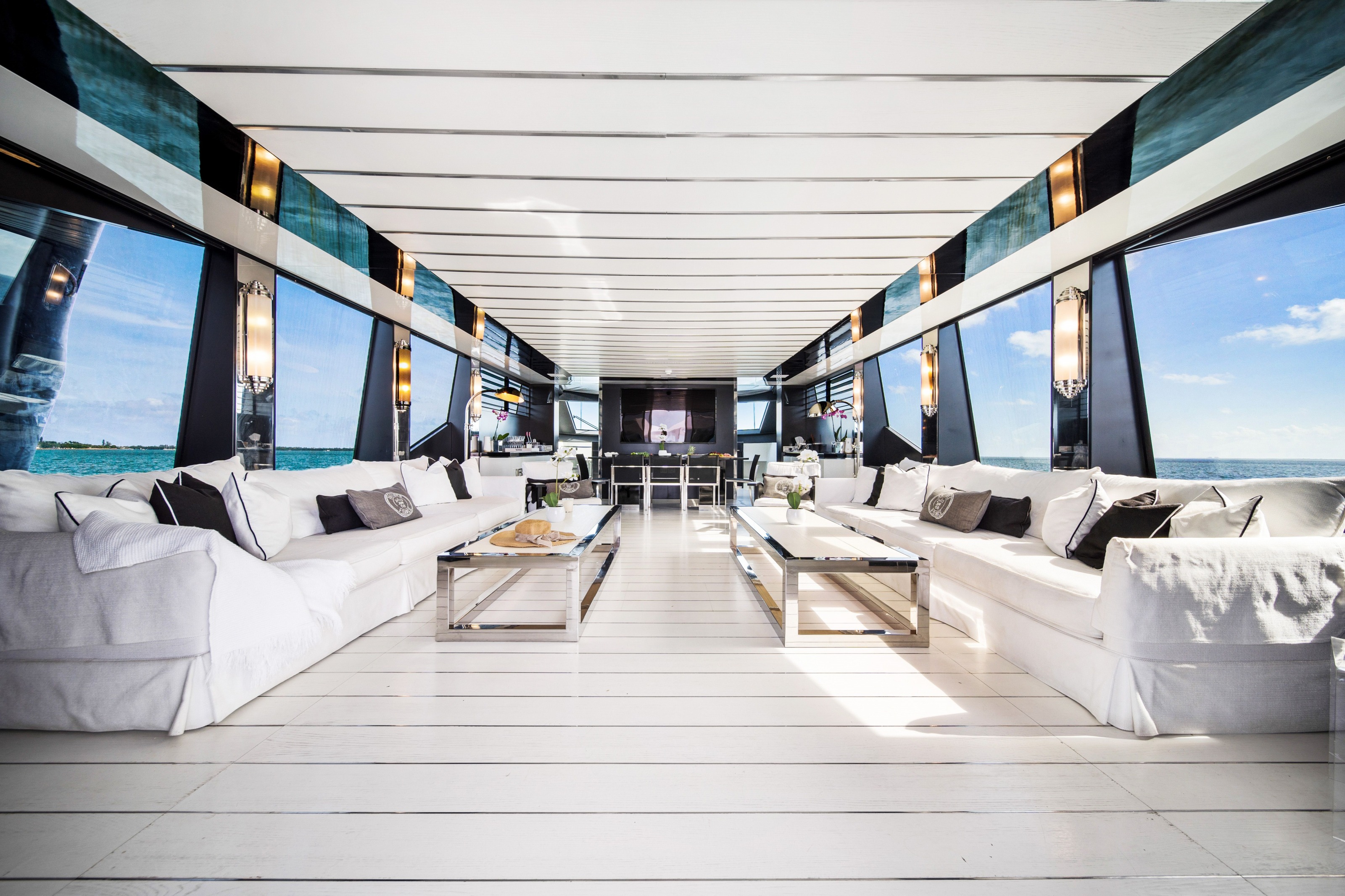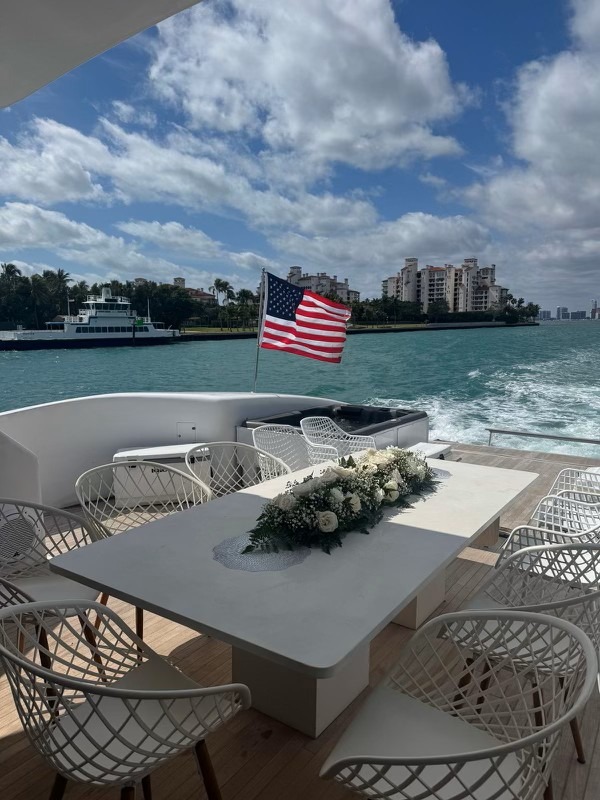 ![]() | 120' TechnomarFlorida and The Keys Bahamas (Nassau) British Virgin Islands (BVI) CaribbeanCapacity Cruising: 13 Sleeping: 11 Staterooms: 5, Suite Bathrooms: 5 Beds: 3 King Beds, 2 Twin Over-Unders, 1 Pullman Day: Captain, 2 Stew, First Mate Term: Captain, 2 Stew, First Mate, Chef Specifications Length: 120 Feet Beam: 24 Feet Draft: 8 Feet Year: 2011 Refit: 2019 Special Features Wifi Starlink Hot Tub Watermaker Satellite TV Streaming TV Water Toys Blow Up Waterslide (8hr day charter/term) Jetski Underwater Scooter Tender: 26ft, 175hp Paddleboards: 2 Snorkel Gear for 6 Floating Water Mat Inflatable Floating Pool Hydrofoil: Two full sets of dive gear |