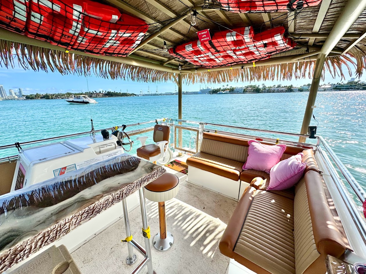 Embark on a voyage of indulgence with our onboard amenities, including a private head (for those unfamiliar, that's a toilet!), a beautiful bar with 12 stools, and an inviting aft lounge seat. Whether you're mingling at the bar, soaking up the sun on deck, or lounging in comfort, every moment promises pure bliss.