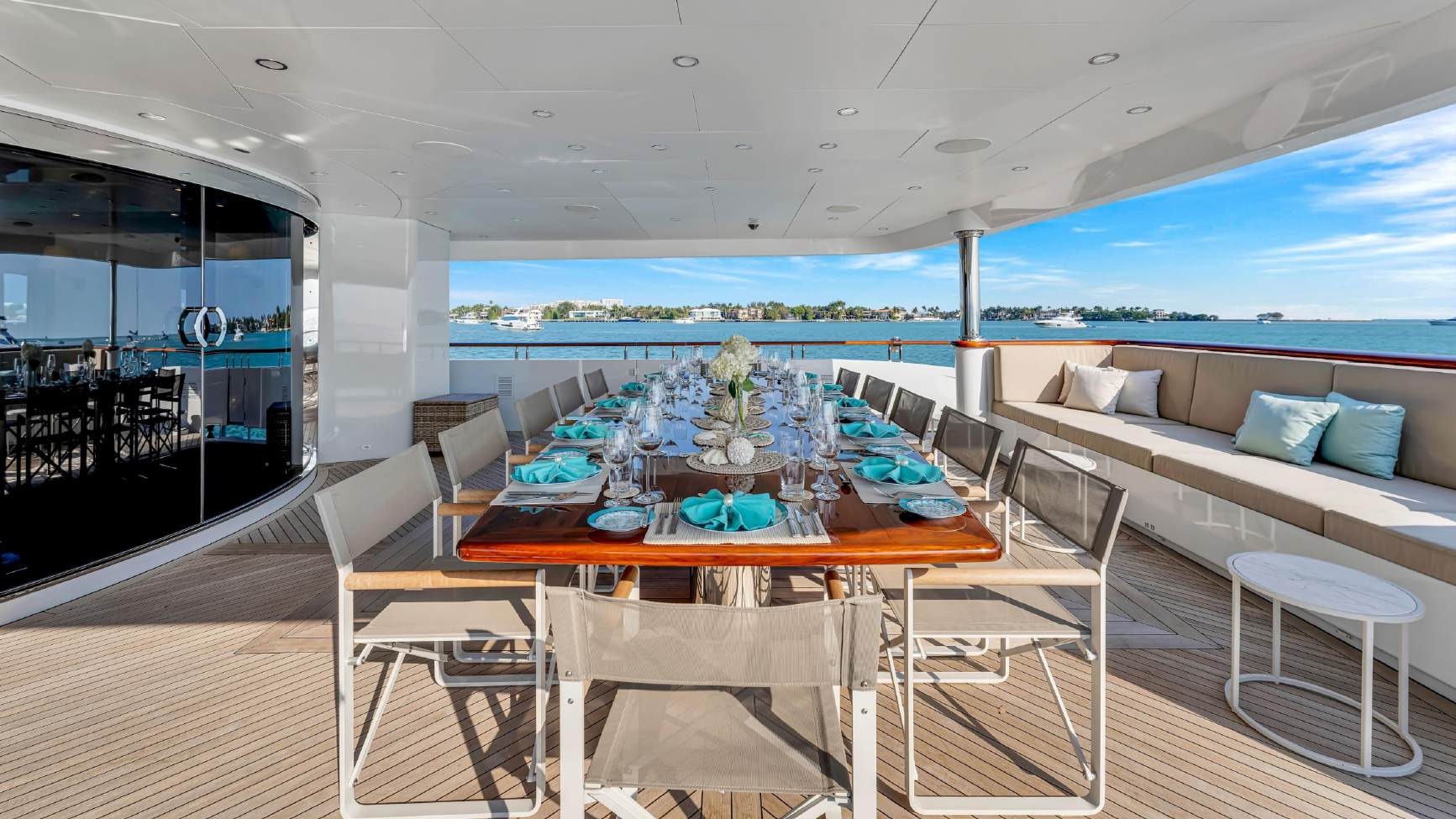 ![]() Built in 2009 and totally refit in 2021, She boasts a multitude of decks ideal for relaxation and entertainment indoors or outdoors, ensuring guests will live la dolce vita on the open waters. She has sensational features such as underwater lights and gym. Guest Accommodation She is great for families thanks to her child-friendly setup. She offers guest accommodation for up to 12 guests with a layout comprising a master suite, two double cabins and two twin cabins. There are 11 beds in total, including 1 king, 2 doubles, 4 singles and 4 pullmans. She is also capable of carrying up to 9 crew onboard to ensure a relaxed luxury yacht charter experience. Onboard Comfort & Entertainment On your charter, you'll find plenty to keep you busy and entertained such as a gym with all the latest equipment to maintain your fitness routine. Sit back with a glass of champagne in the deck jacuzzi. Whatever your activities on your charter, you'll find some impressive features are seamlessly integrated to help you such as the underwater lights, adding spectacle and style after dark. With Wi-Fi connectivity you don't have to lose contact with the outside world, unless you want to or you can stay comfortable on board whatever the weather, with air conditioning during your charter. Performance & Range Built with a aluminum hull and aluminum superstructure, she benefits from a semi-displacement hull to provide exceptional seakeeping and impressive speeds. Powered by twin MTU engines, she comfortably cruises at 15 knots, reaches a maximum speed of 24 knots with a range of up to 3,200 nautical miles from her 58,760 liter fuel tanks at cruising speed. Sweet Caroline II features at-anchor stabilizers providing exceptional comfort levels. Toys She knows a thing or two about fun on the water, with a selection of water toys and accessories for you and your guests to enjoy whilst on charter. Principle among these are waterslides letting guests speed from the sun deck to the water in seconds. Take to the sea on the Jet Skis offering you power and control on the water. Also there are three SEABOBs, that allow you to skim along the surface or steer under the crystal water and experience life swimming with the fish. If that isn't enough, she also features wakeboards and inflatable water toys. She features two tenders, but leading the pack is a 9.75m/32' Intrepid to transport you in style. | 166' Trinity YachtsCaribbeanCapacity Cruising: 13 Sleeping: 14 Staterooms: 7, Suite Bathrooms: 7, Bathtub Beds: 1 King Bed, 2 Queen Beds, 2 Full Beds, 2 Twin Side-By-Sides, 2 Pullmans Day: Captain, 6 Stew, First Mate, 1 Chef Term: Captain, 6 Stew, First Mate, 1 Chef Specifications Length: 166 Feet Beam: 29 Feet Draft: 9 Feet Year: 2009 Refit: 2021 Special Features Wifi Bluetooth Sound System Hot Tub Cinema Bar With Stools Satellite TV Gym BBQ Grill Water Toys Blow Up Waterslide (8hr day charter/term) 2 Jetskis 2 Seabob Tender: 21ft, 200hp Tubes + Towable Inflatables Paddleboards: 1 Fishing Poles poles and gear/light fishing Snorkel Gear for 8 Inflatable Floating Island 32 ft intrepid and 21 ft Novurania Launch 650, Some Gym Equipment/Treadmill, Yoga/Pilates equipment, Massage Table Pickup Address: Miami Florida Secondary Pickup Address: USVI, BVI , Caribbean |