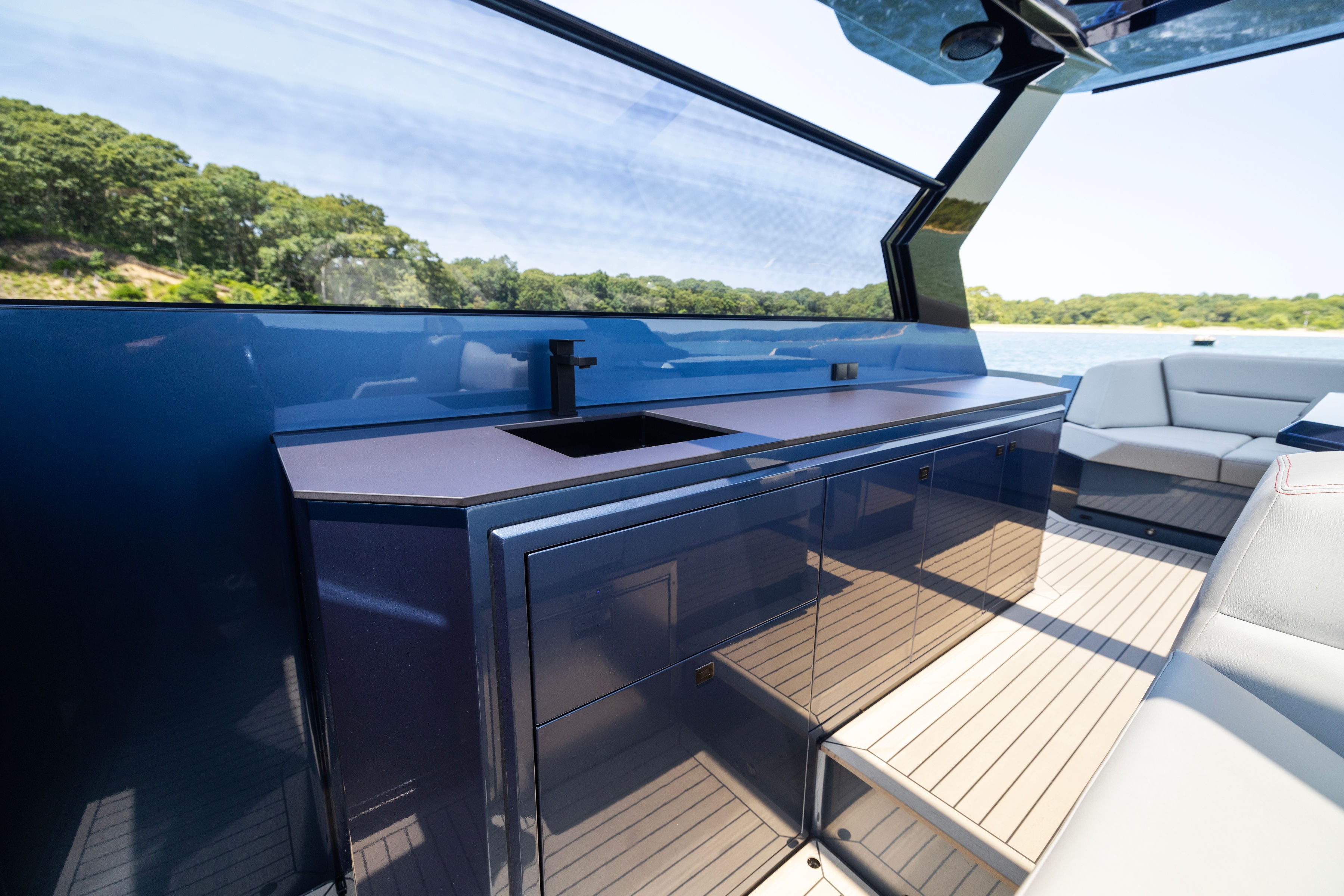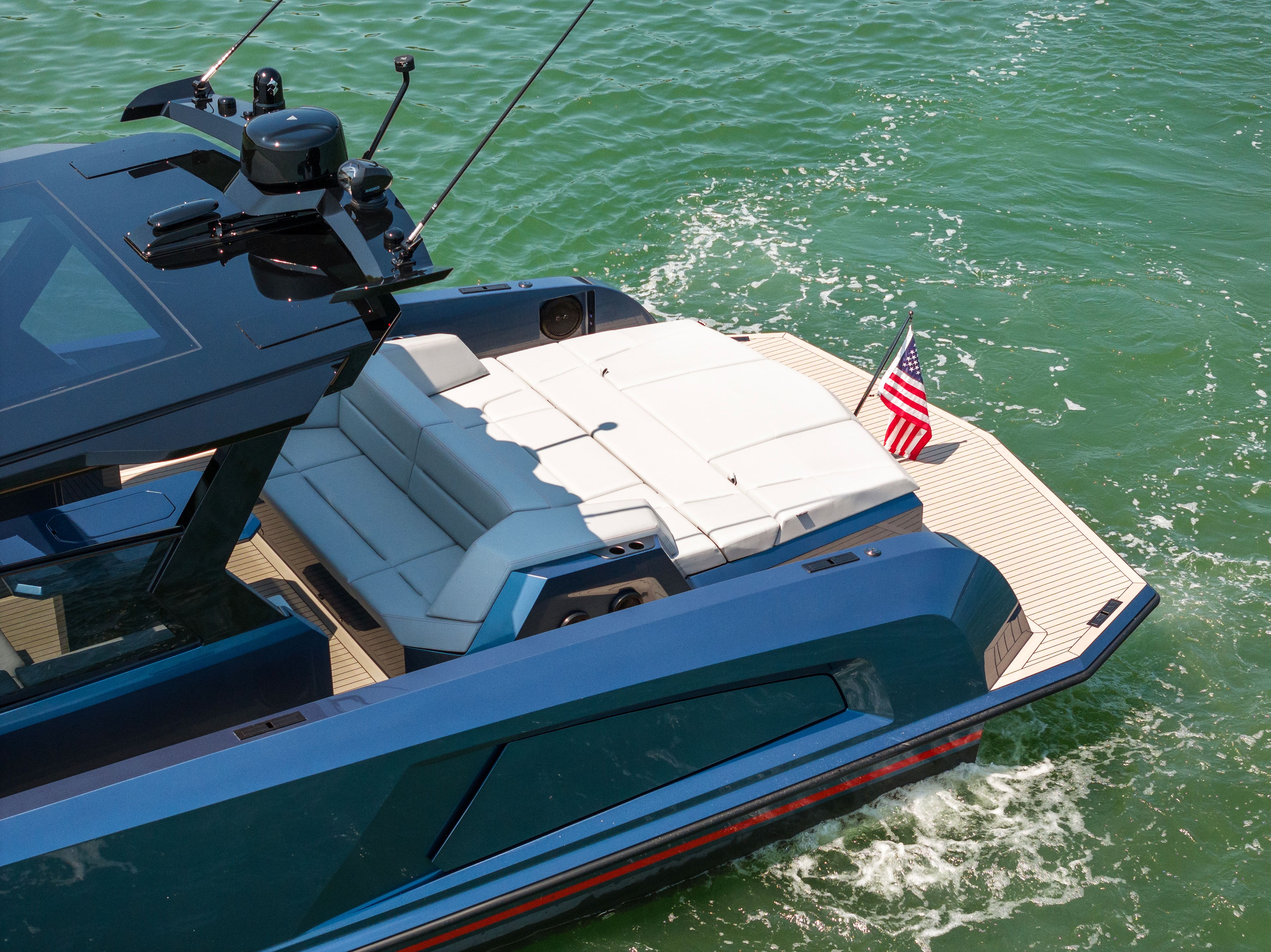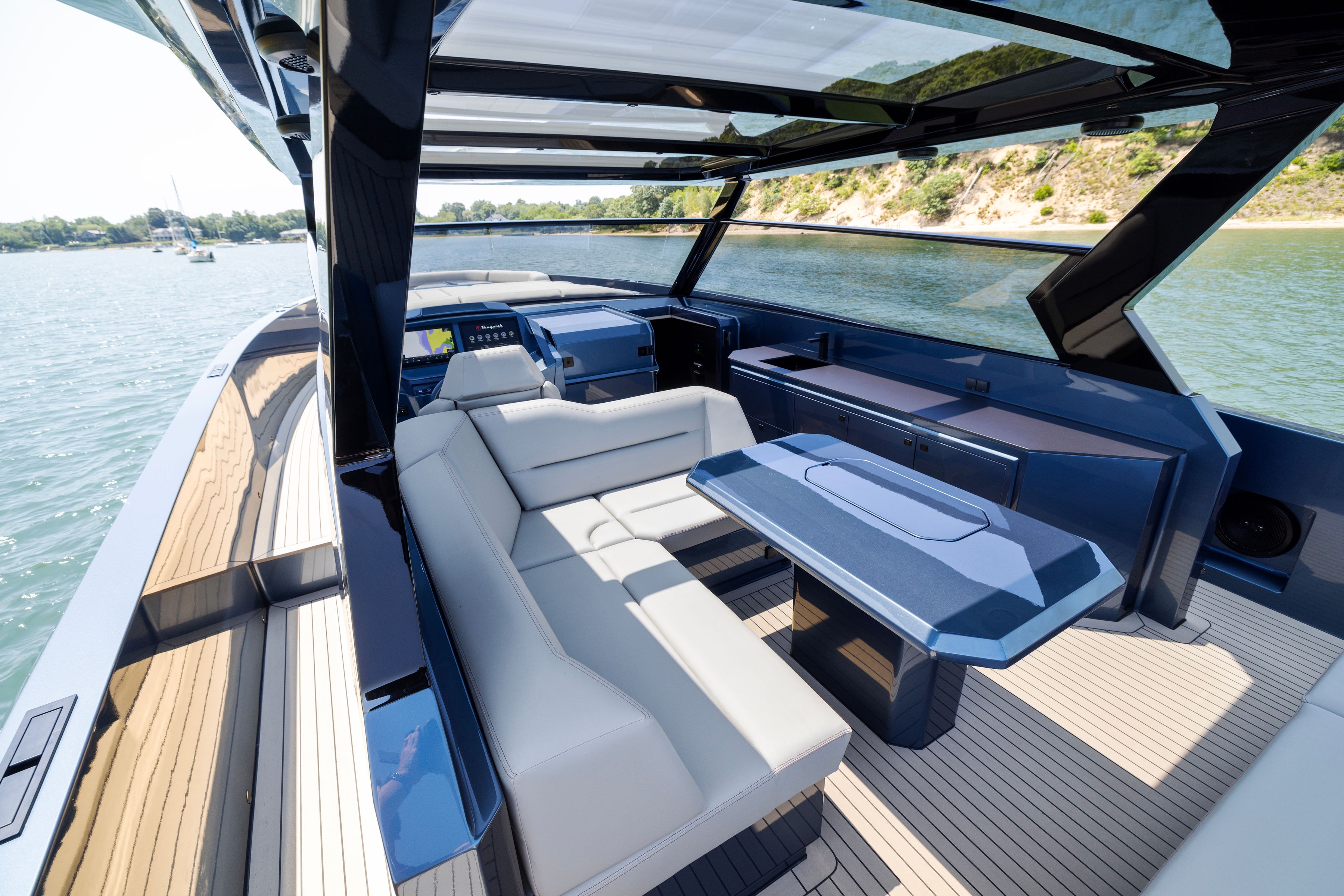 Our 52 Vanquish is both sexy looking and incredibly nibble, making your experience on the water like enjoying a Ferrari that floats. The 52 offers a luxurious and comfortable way to explore and enjoy the waters and scenery around Eastern Long Island. The 52 combines exceptional performance with ample space and incredible high end amenities and finish. The boat is perfect for high end charters looking for something special. The VQ52 is known for its smooth wave-riding experience, stability, and ability to handle up to 10 people in full comfort.