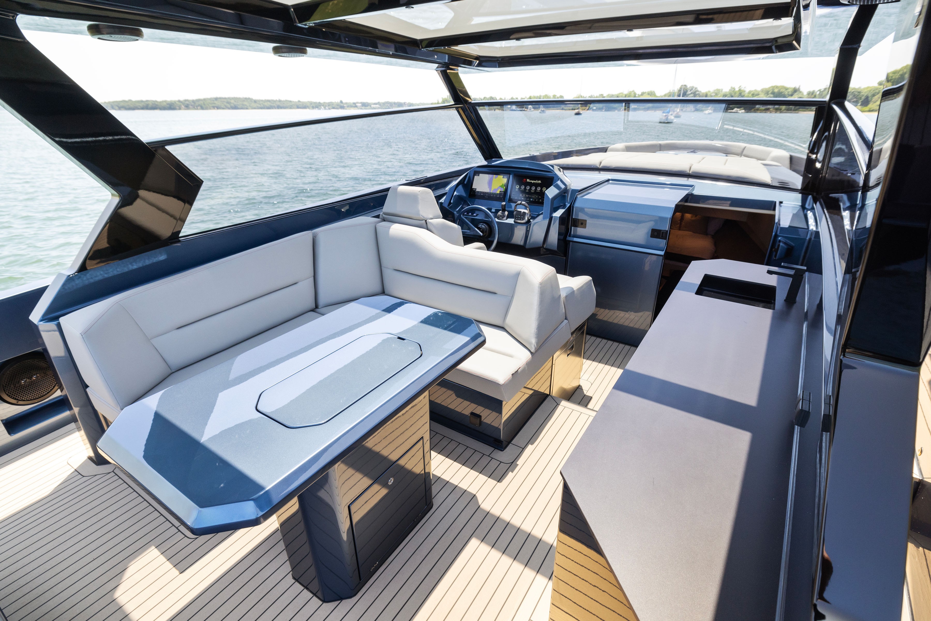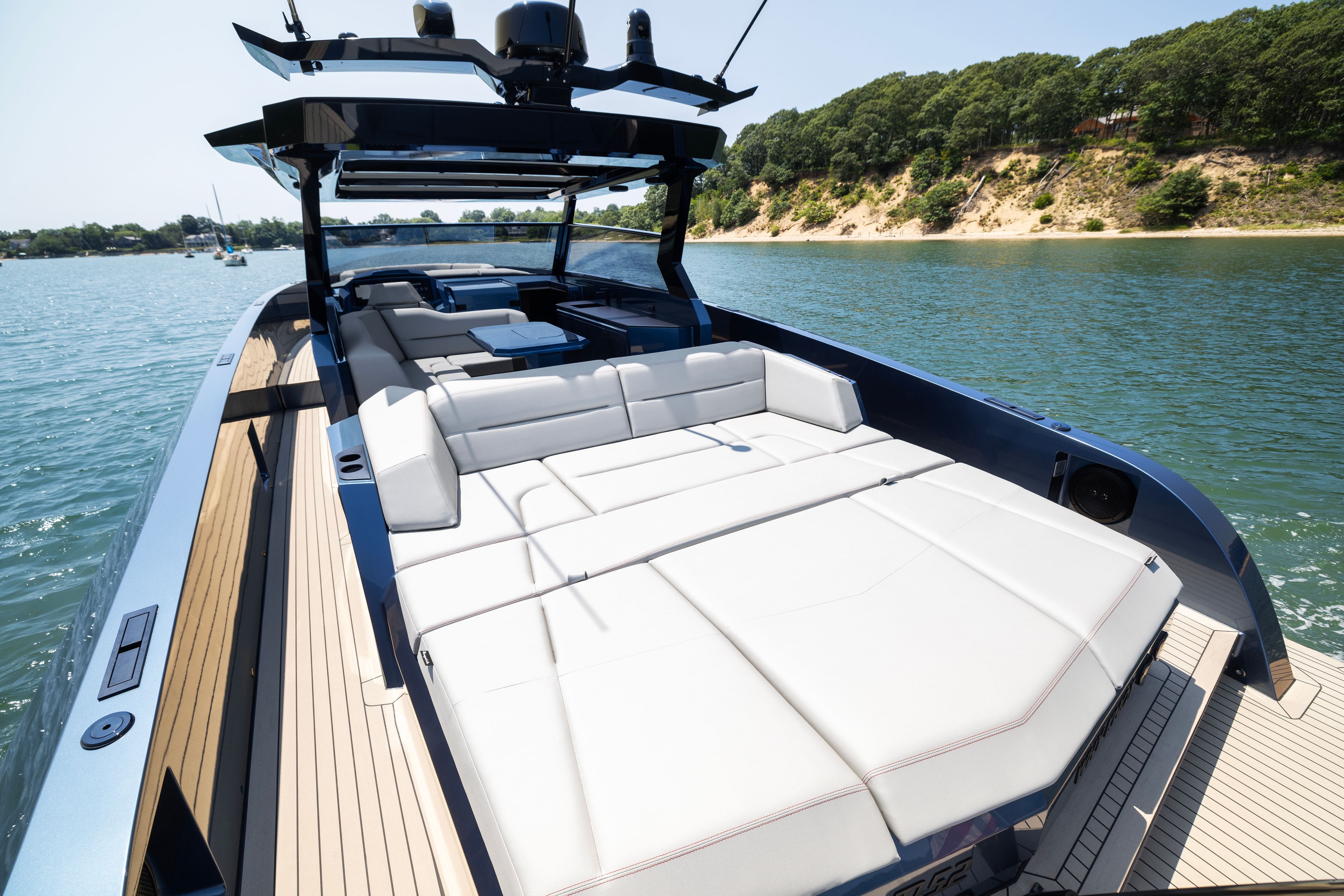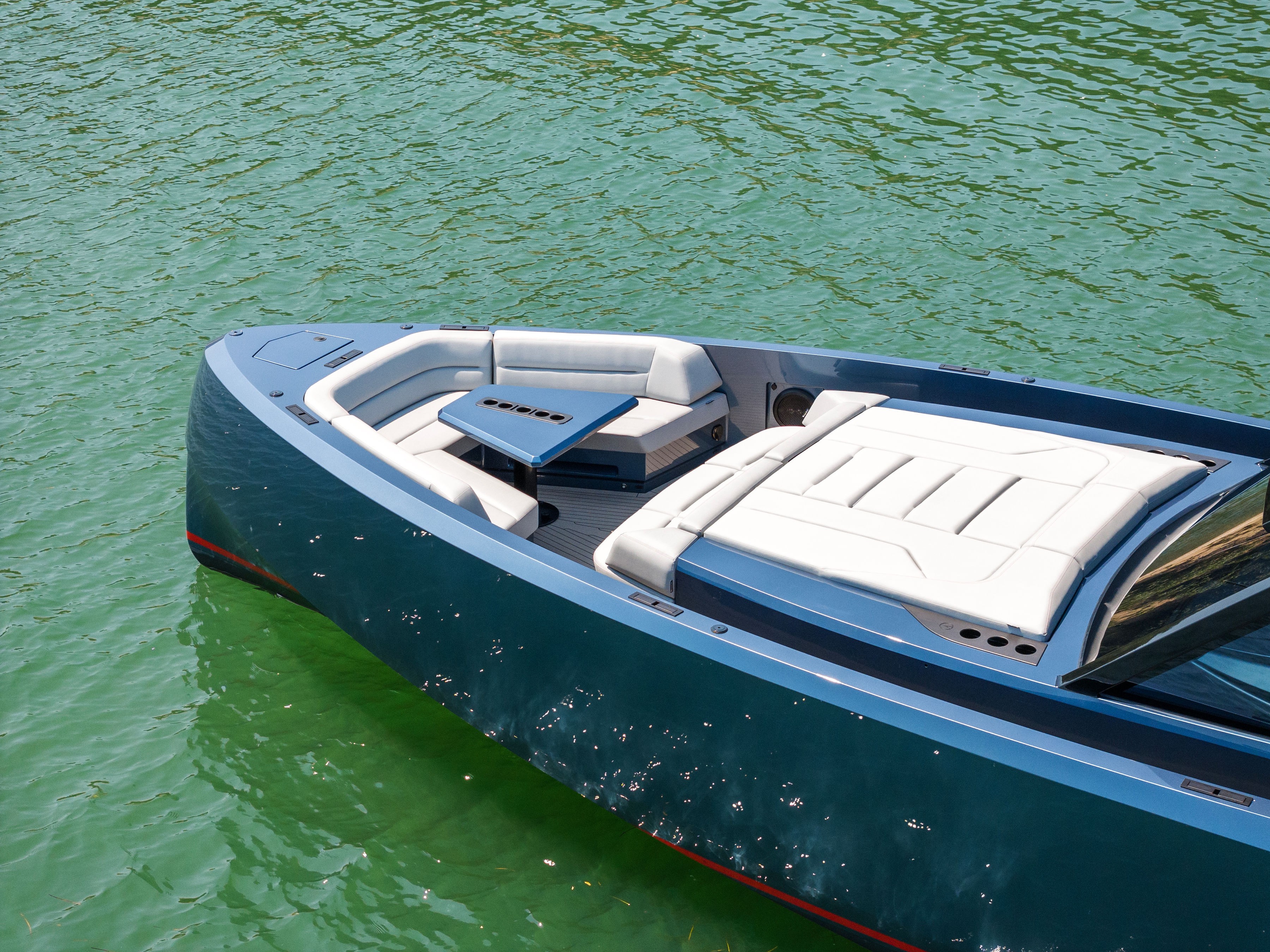 The boats straight bow and deeply immersed spray rails reduce pitching and rolling, ensuring a comfortable and stable experience, even in challenging seas.