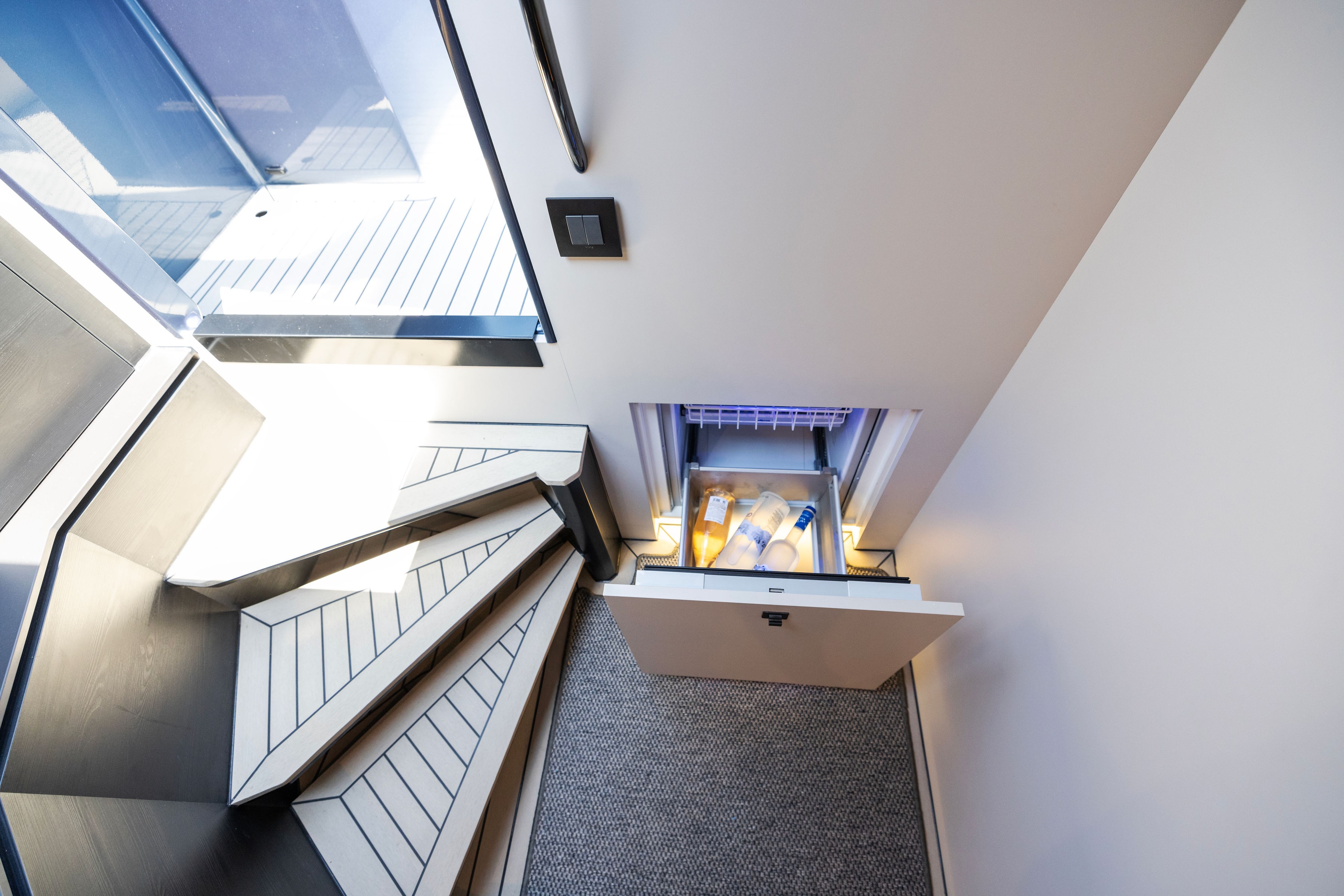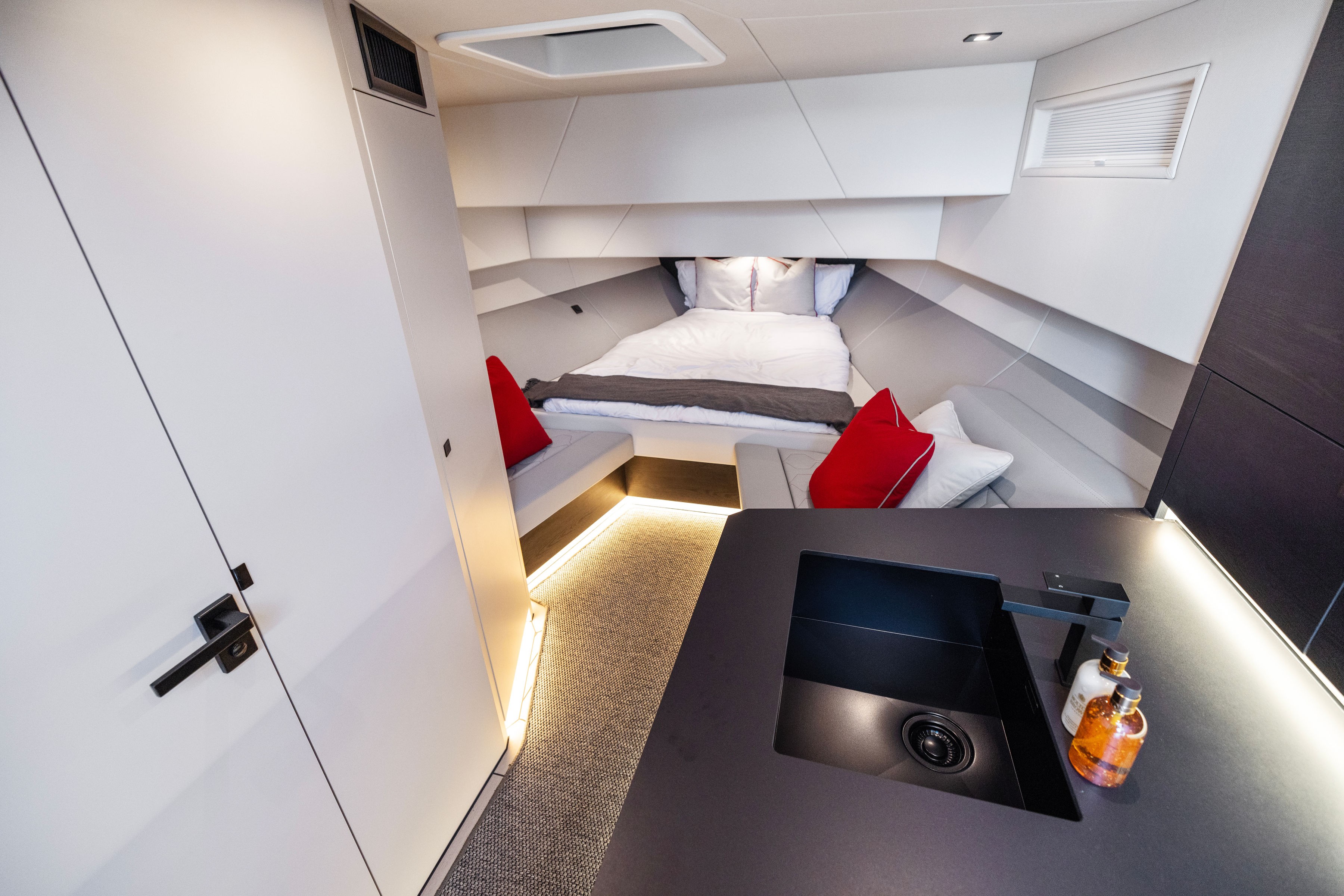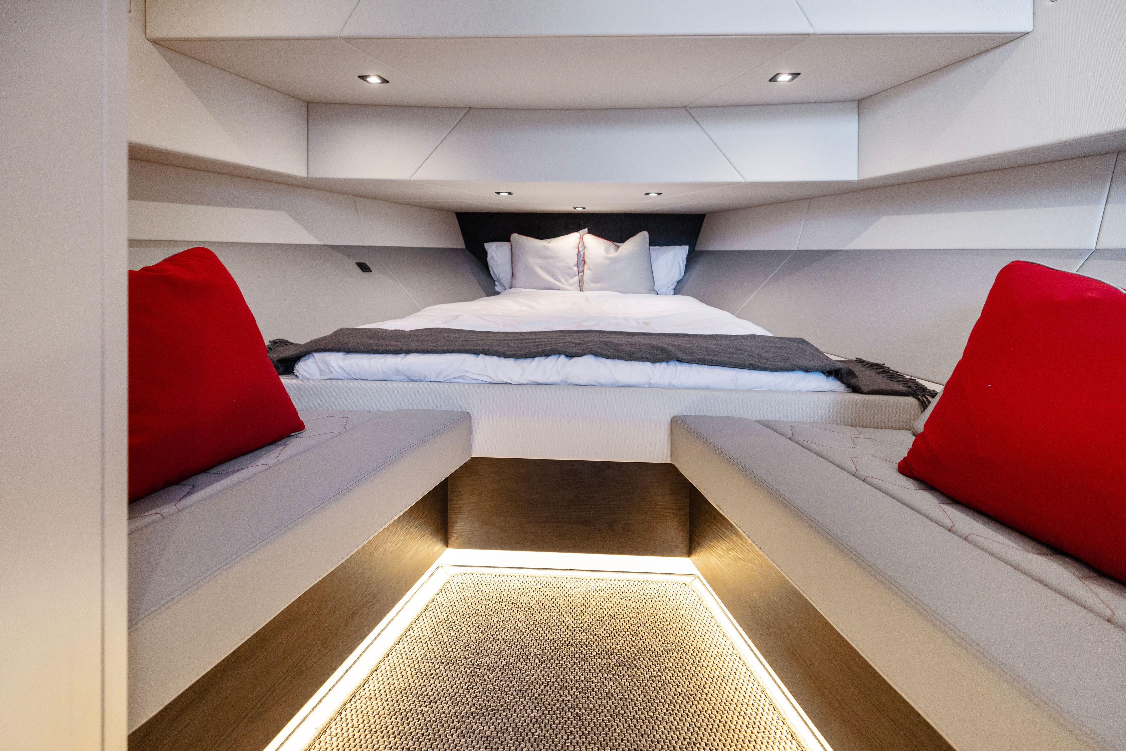 The boats straight bow and deeply immersed spray rails reduce pitching and rolling, ensuring a comfortable and stable experience, even in challenging seas.